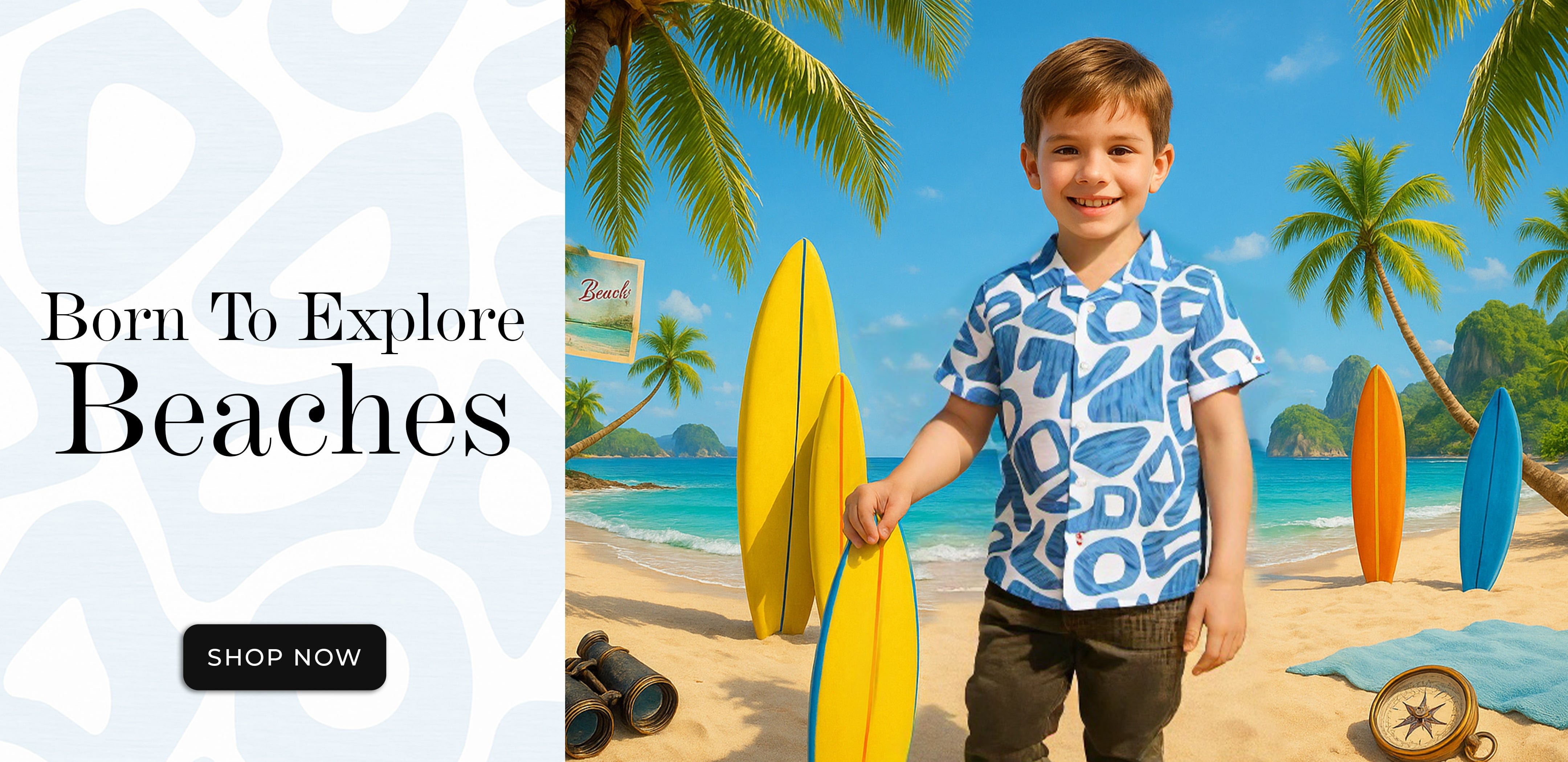Every piece reflects the thrill of discovery—whether it’s a tropical escape, a jungle expedition, or a day by the sea. Made with lightweight, breathable fabrics, our shirts keep up with every climb, chase, and splash, all while making a statement with bold, playful prints.