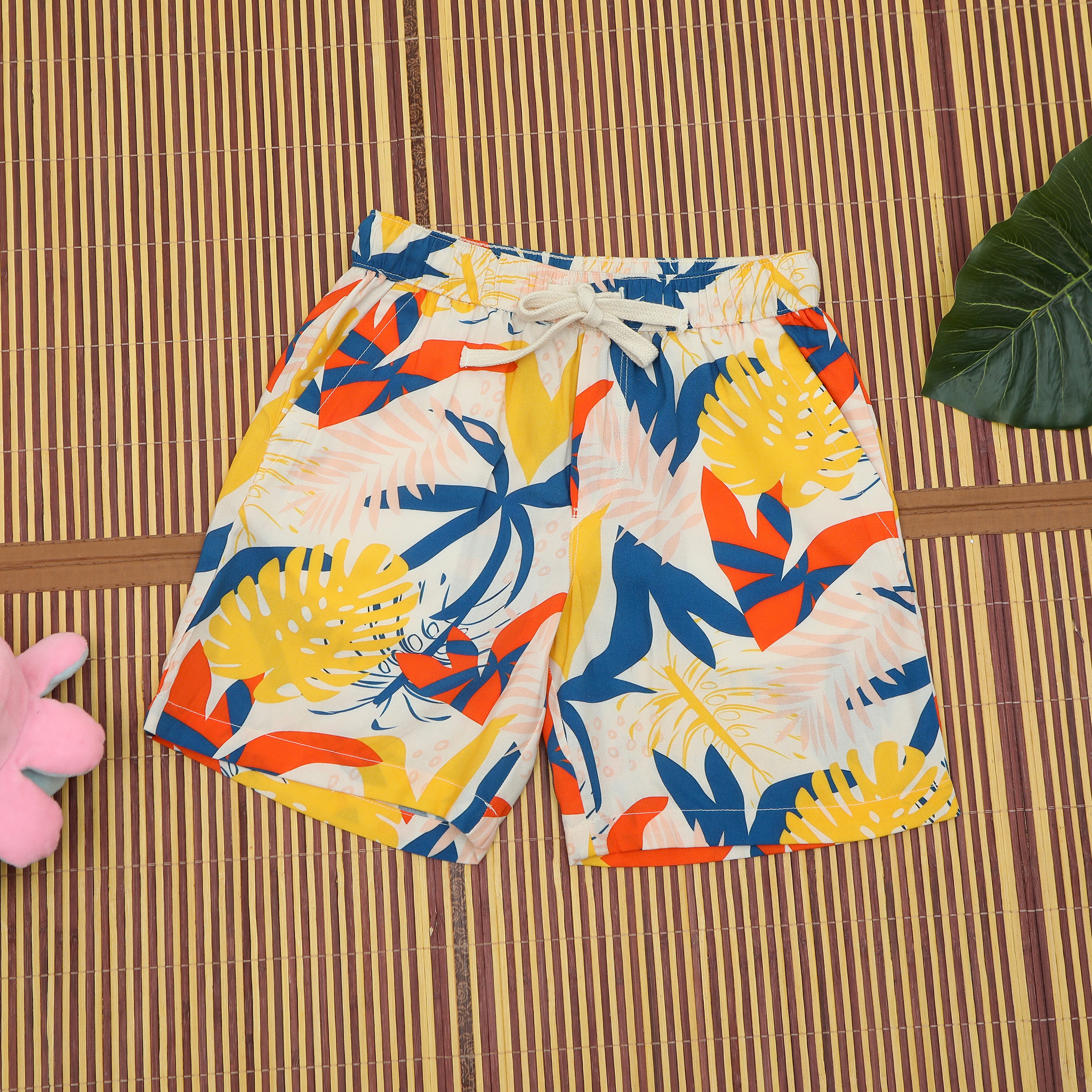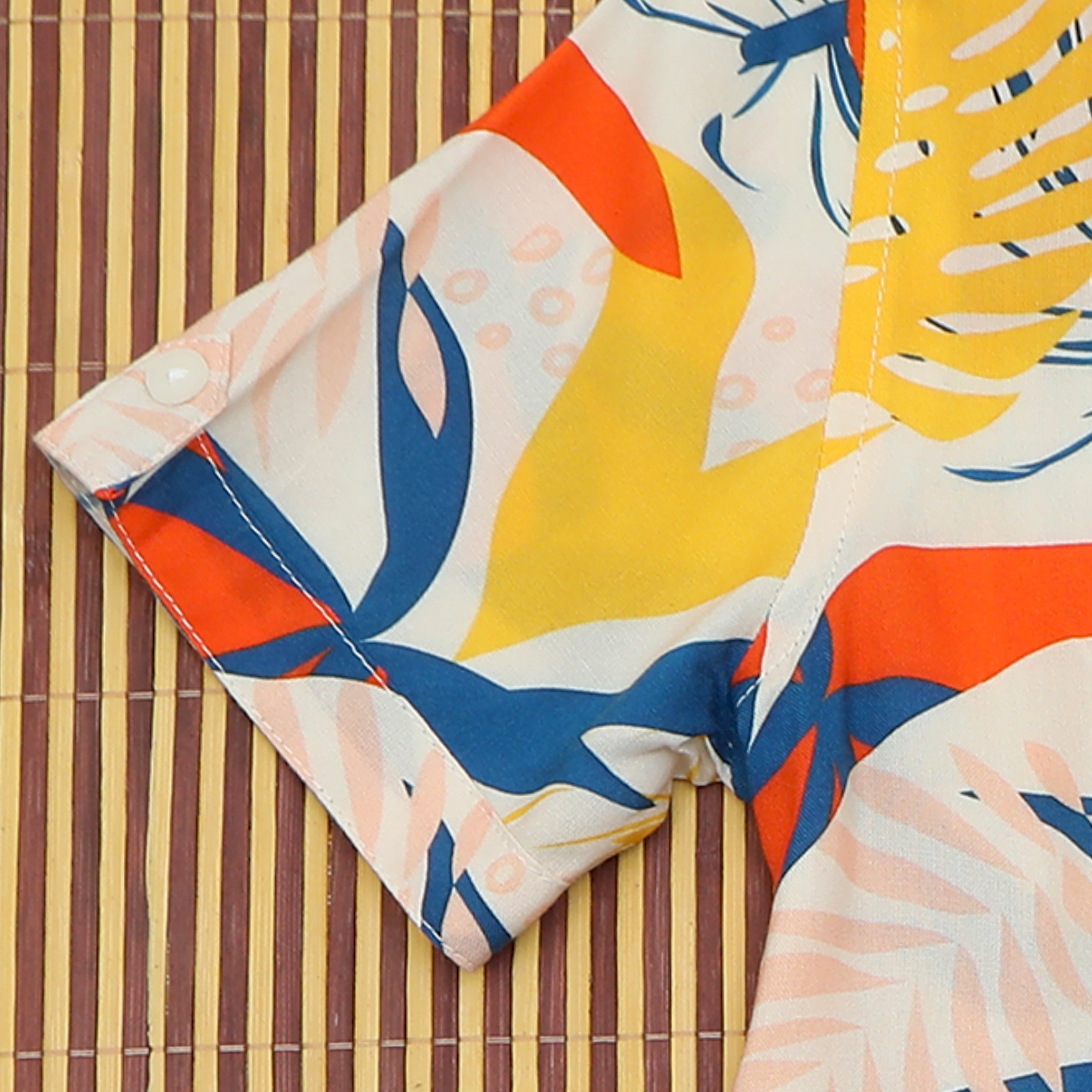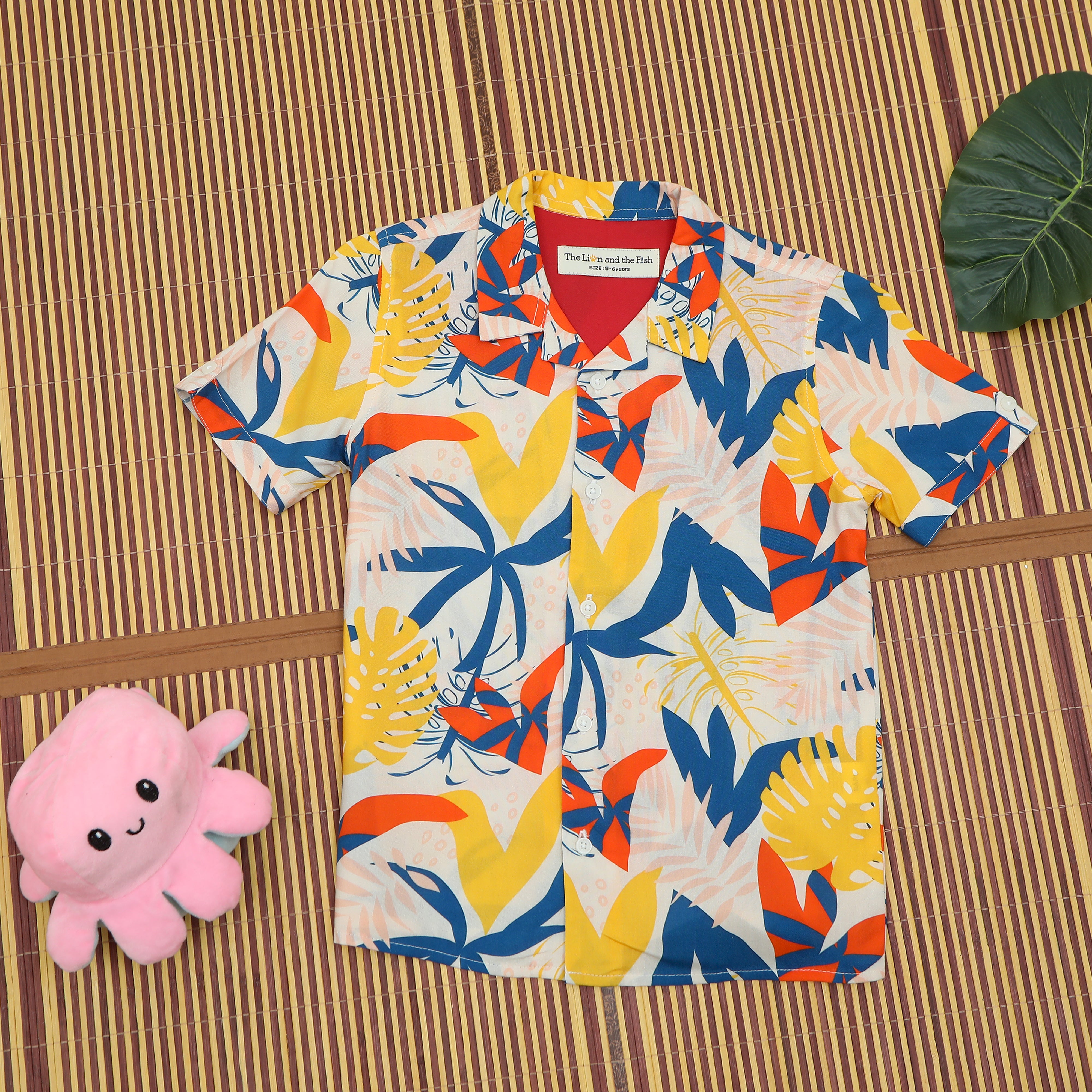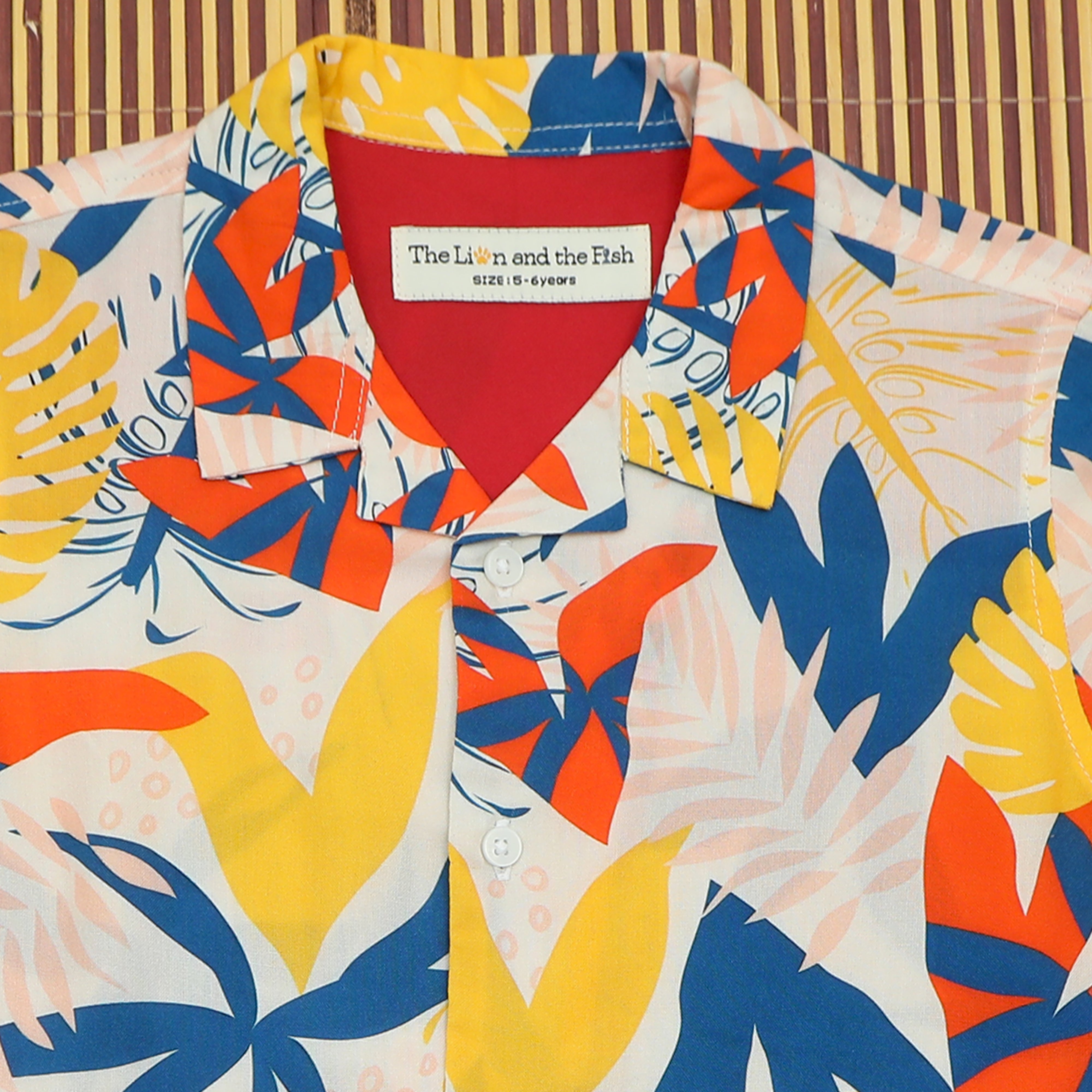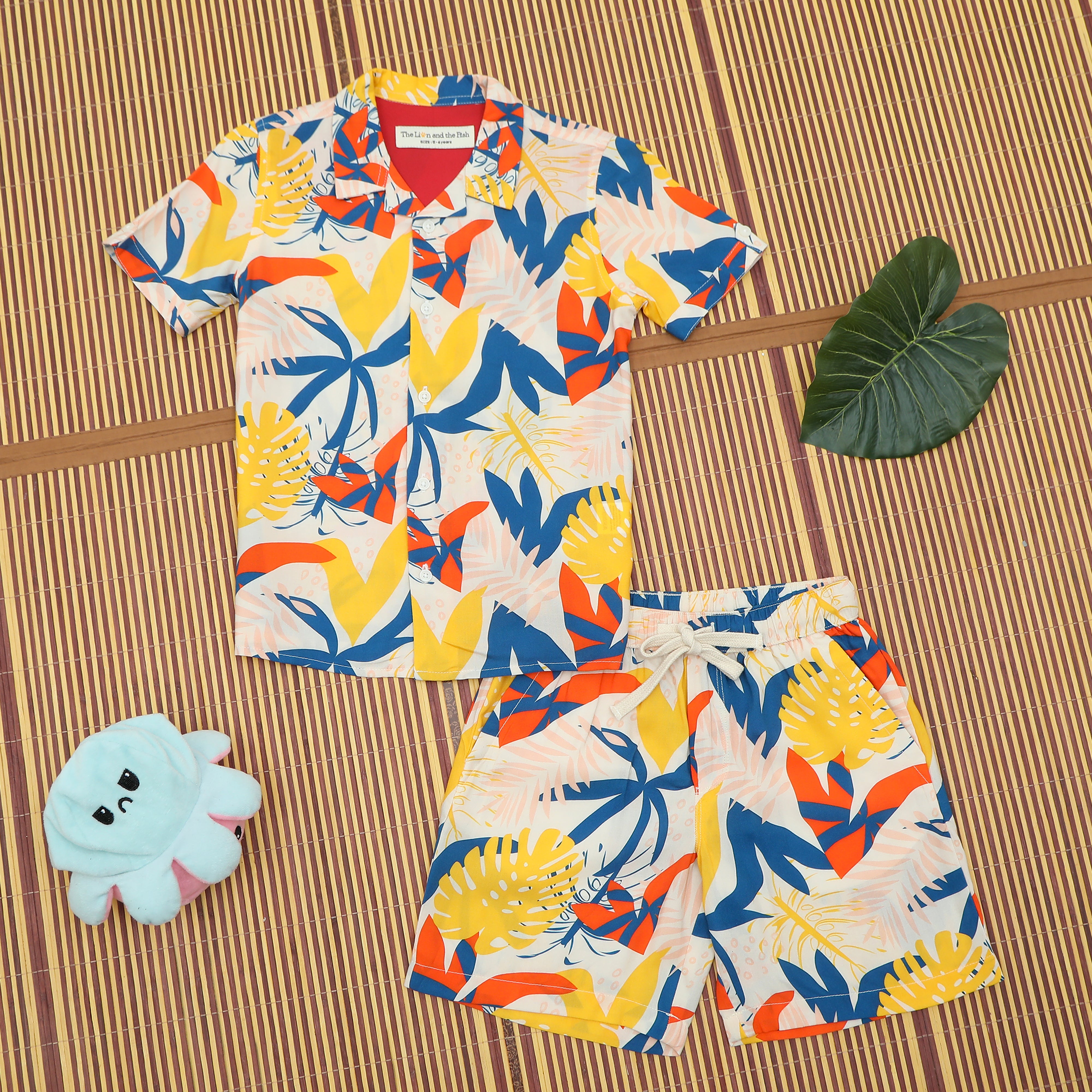 Boys Tree Print Shirt & Short Co-Ord Set Blue Yellow