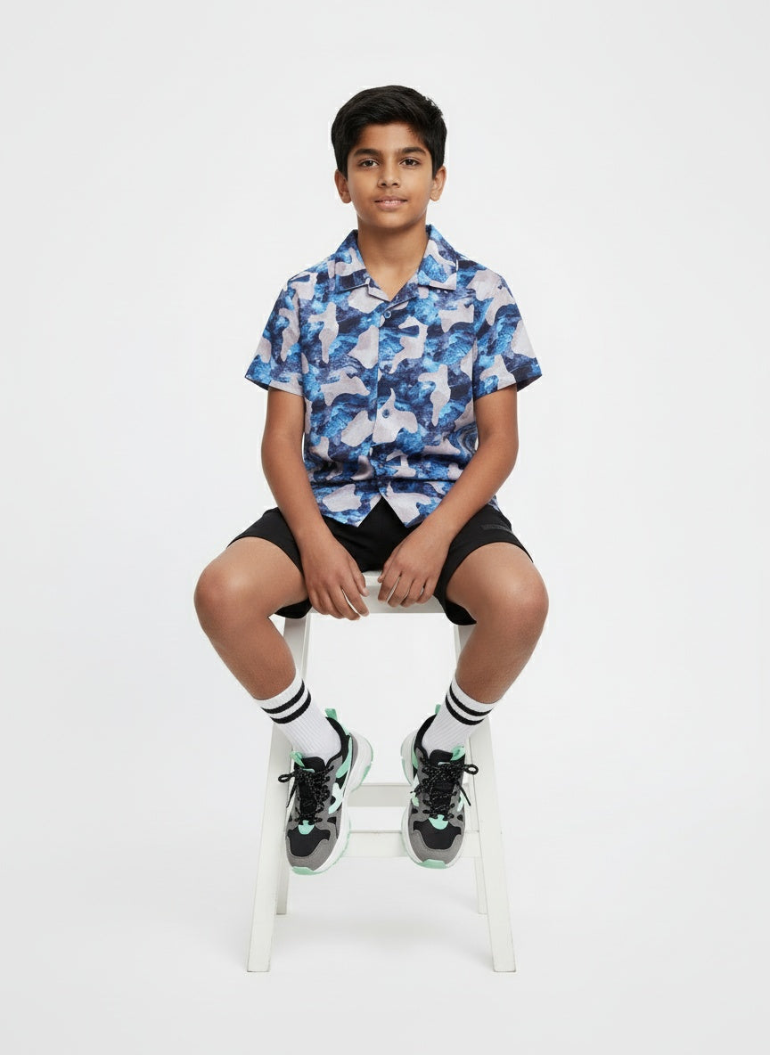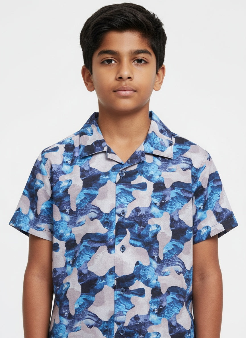 Boys Abstract Printed Shirt Electric Blue