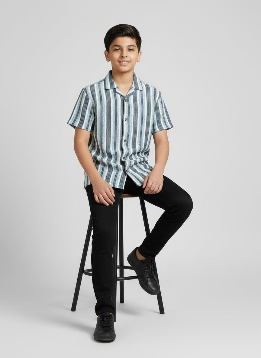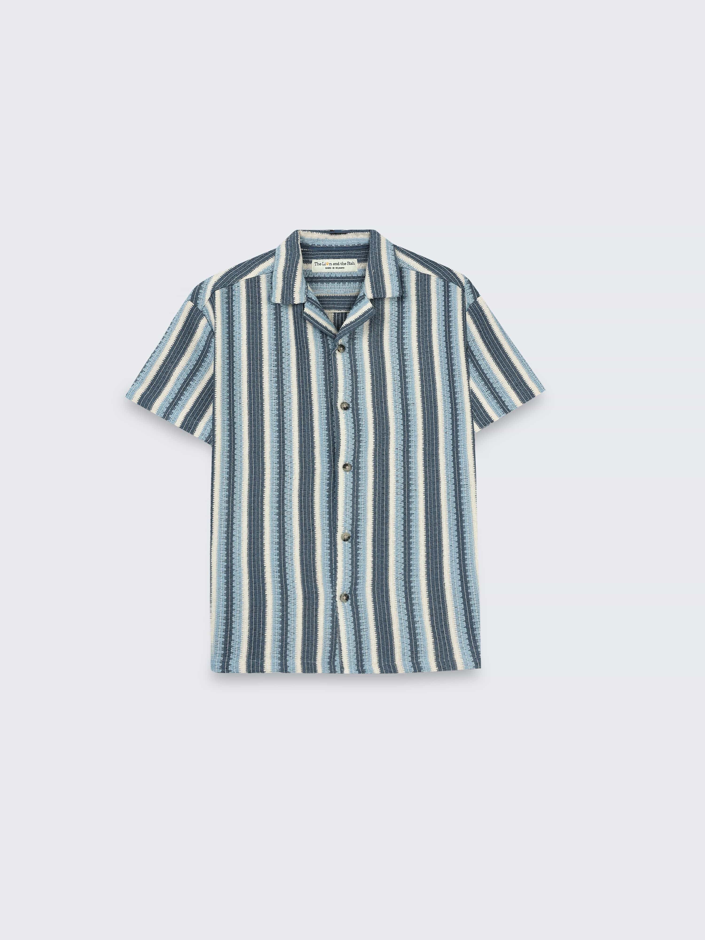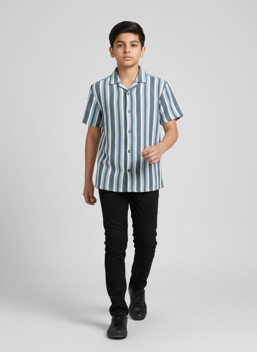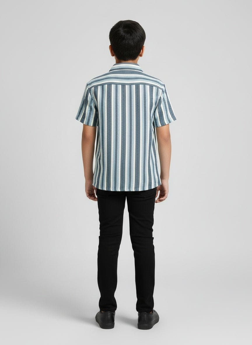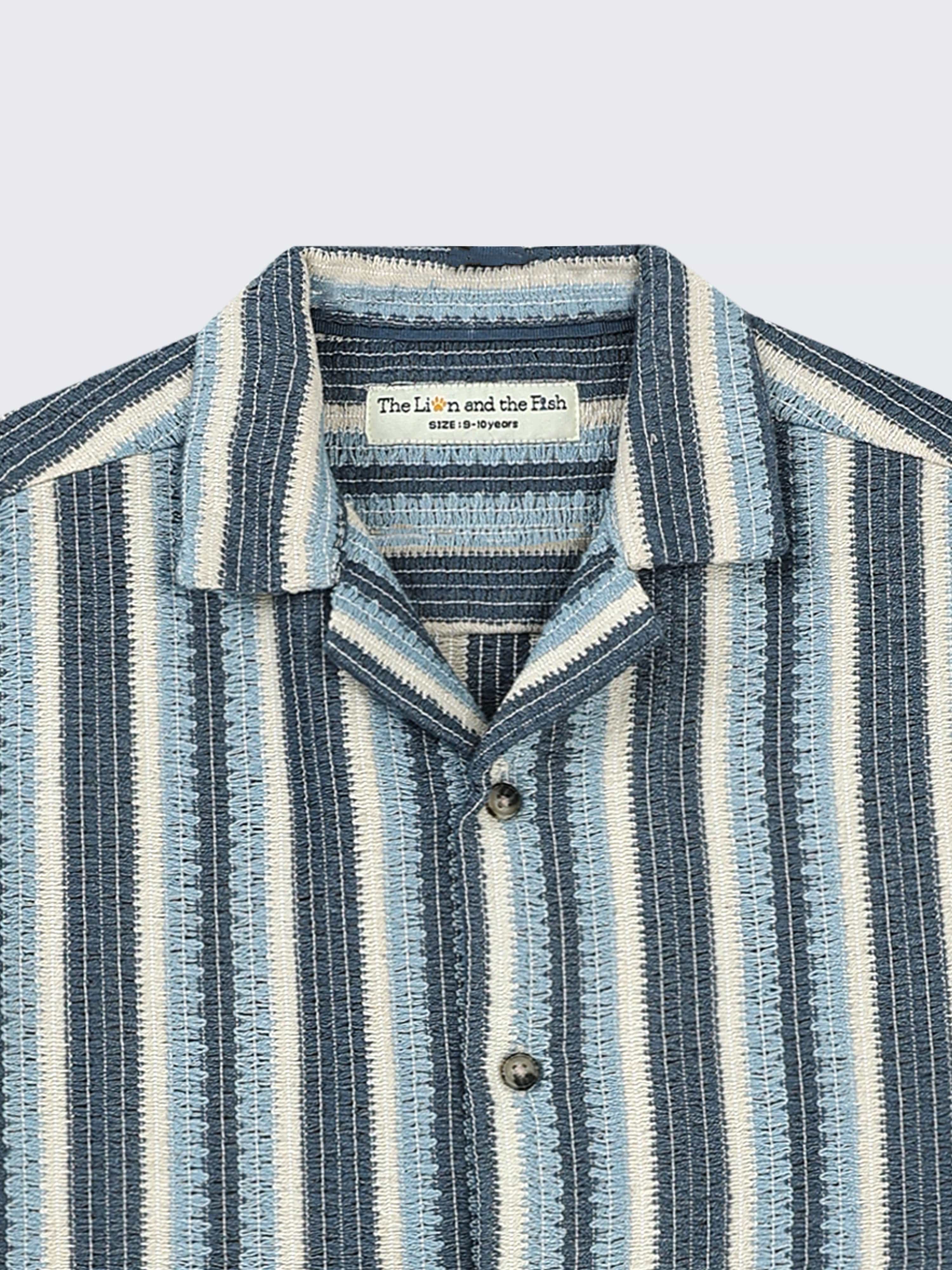 Boys Crochet Stripes Shirt Ivory Blue