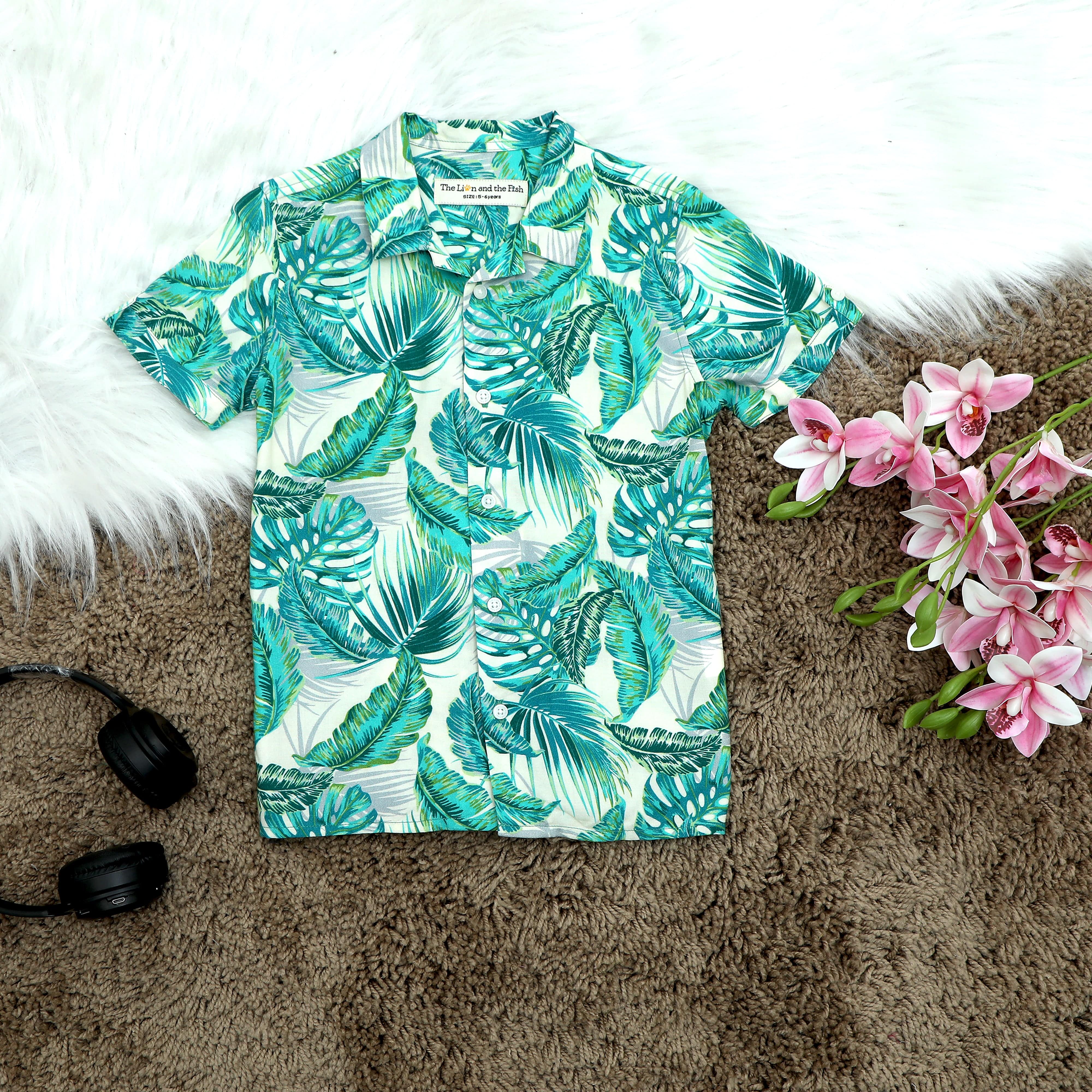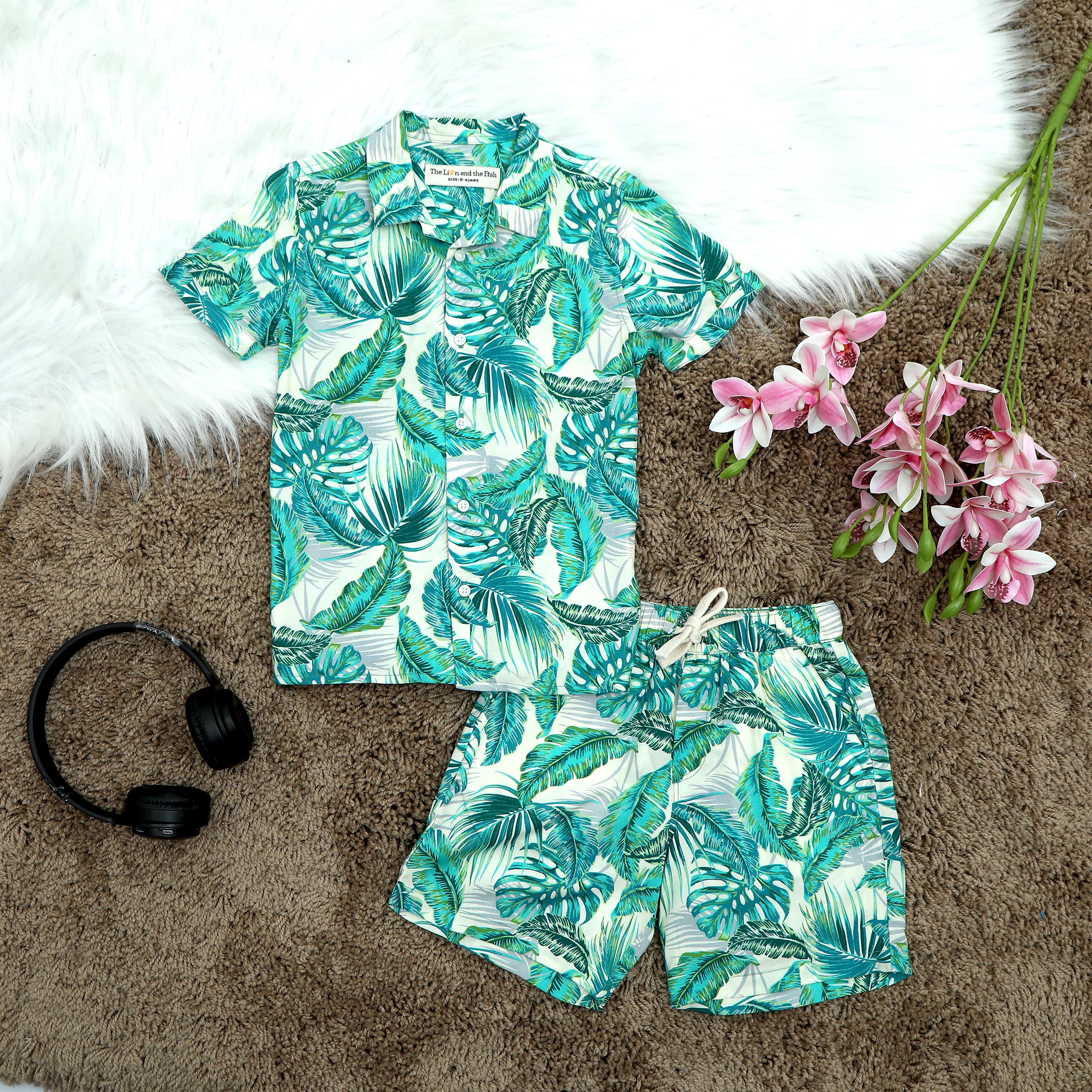 Boys Hawaiian Tropical Printed Shirt & Short Co-Ord Set Ivory