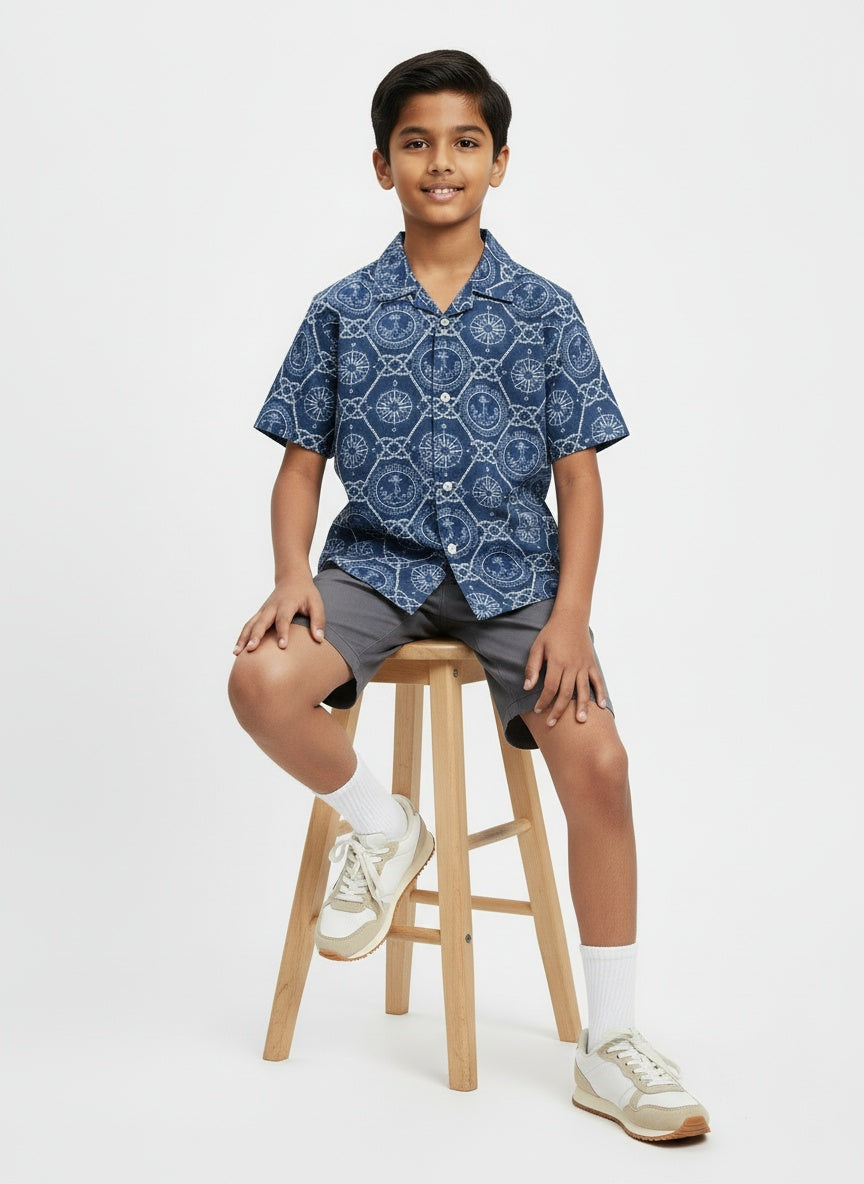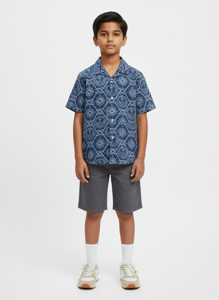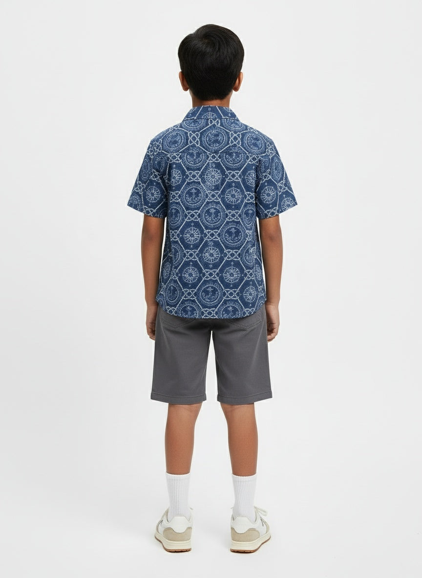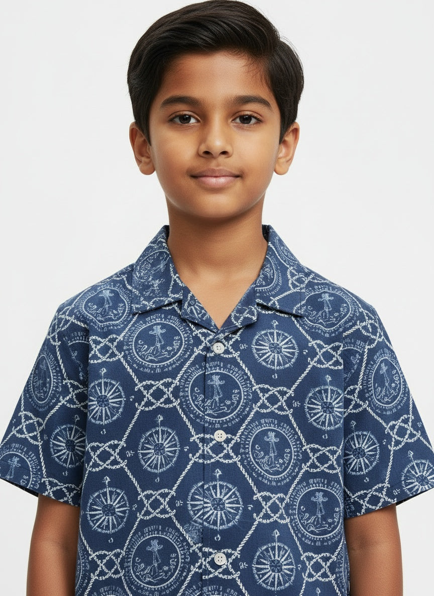 Boys Maritime Nautical Printed Shirt Aegean Blue