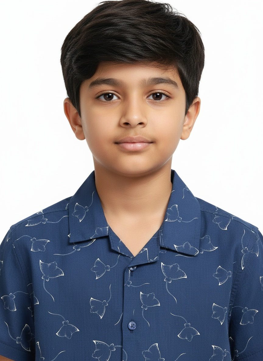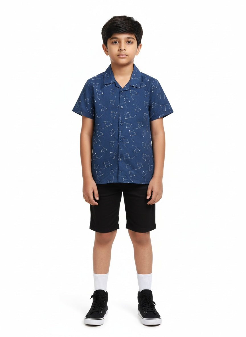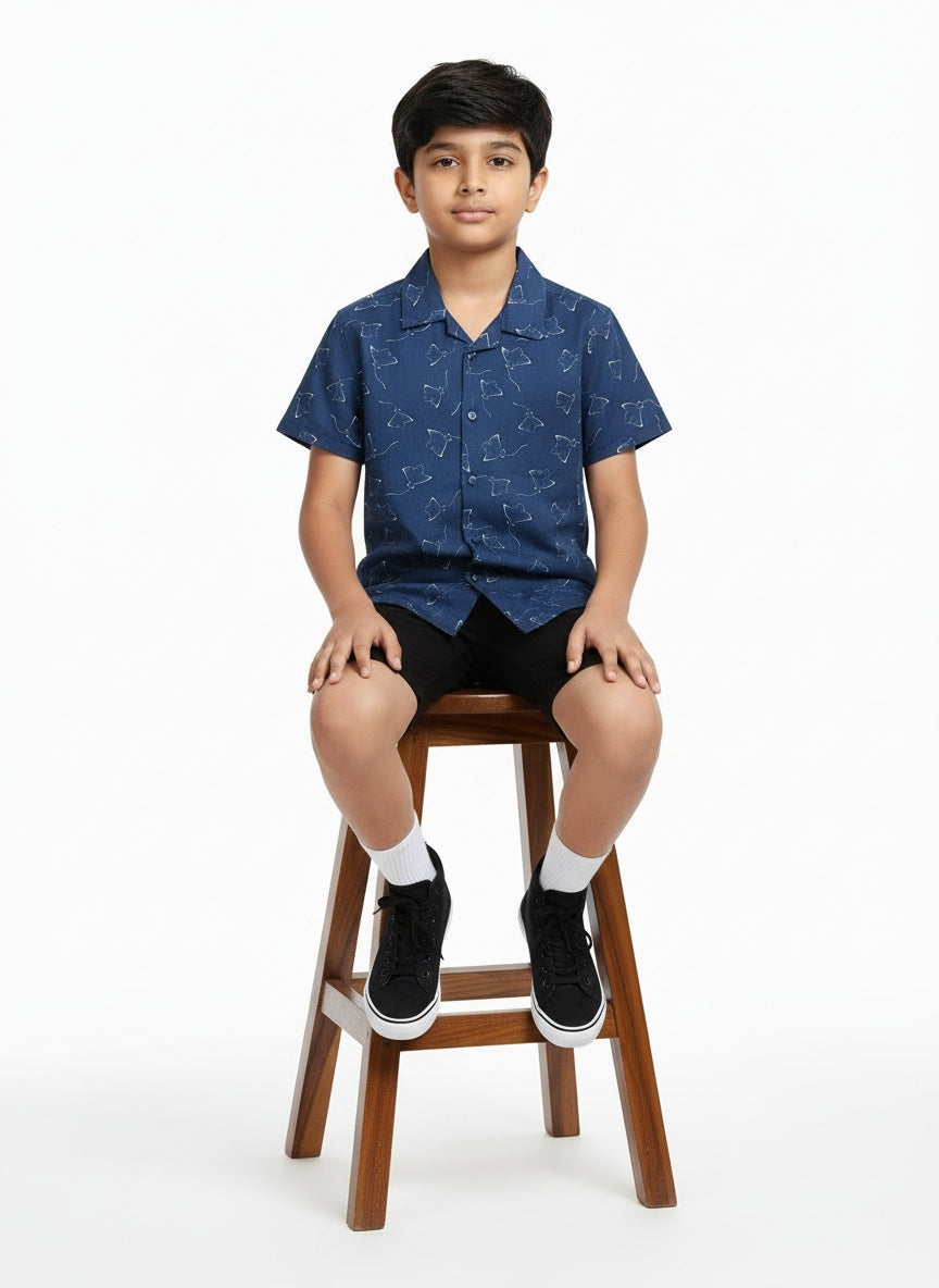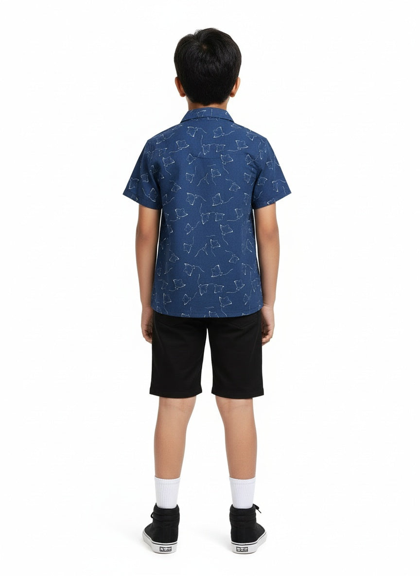 Boys Stingray Printed Shirt Ocean Blue