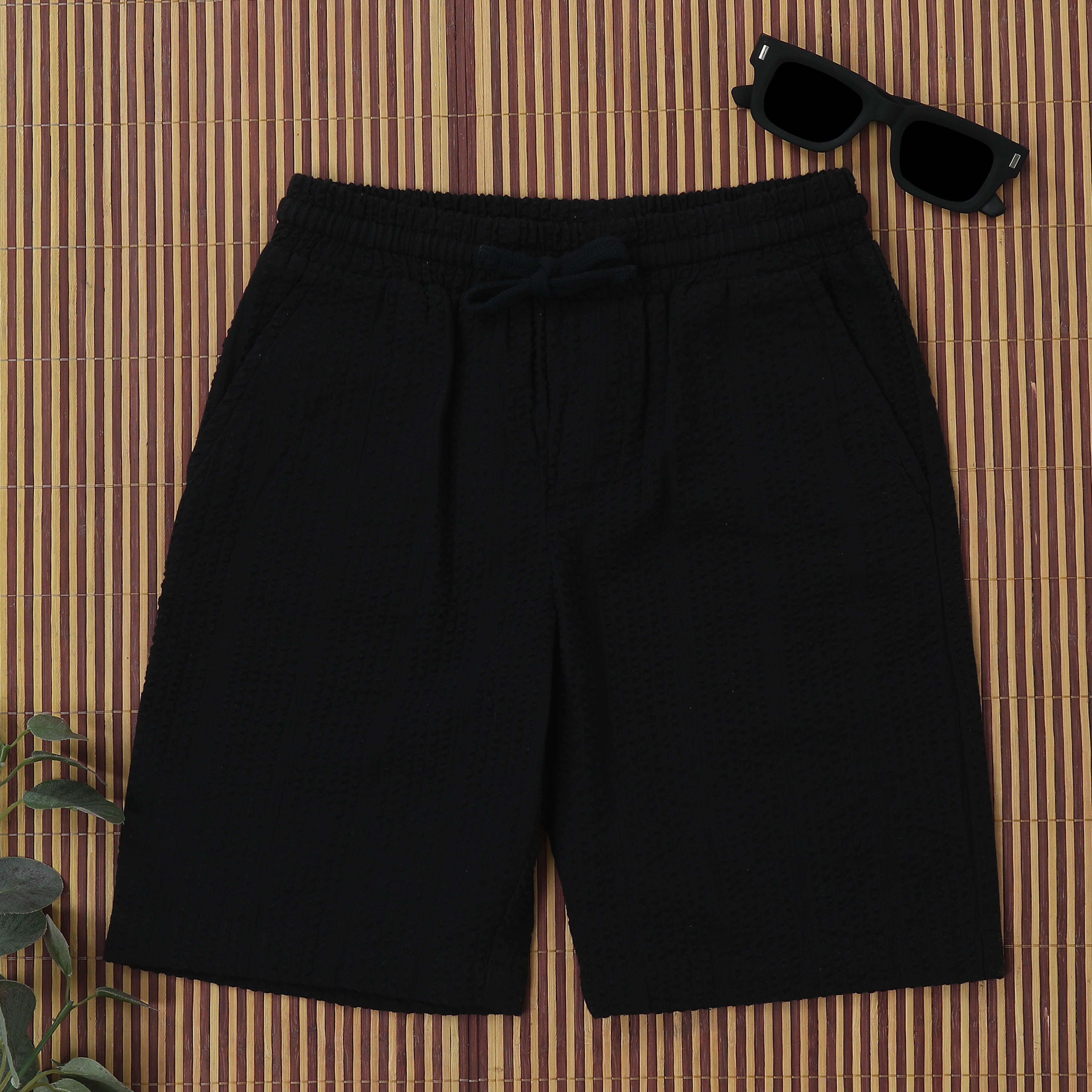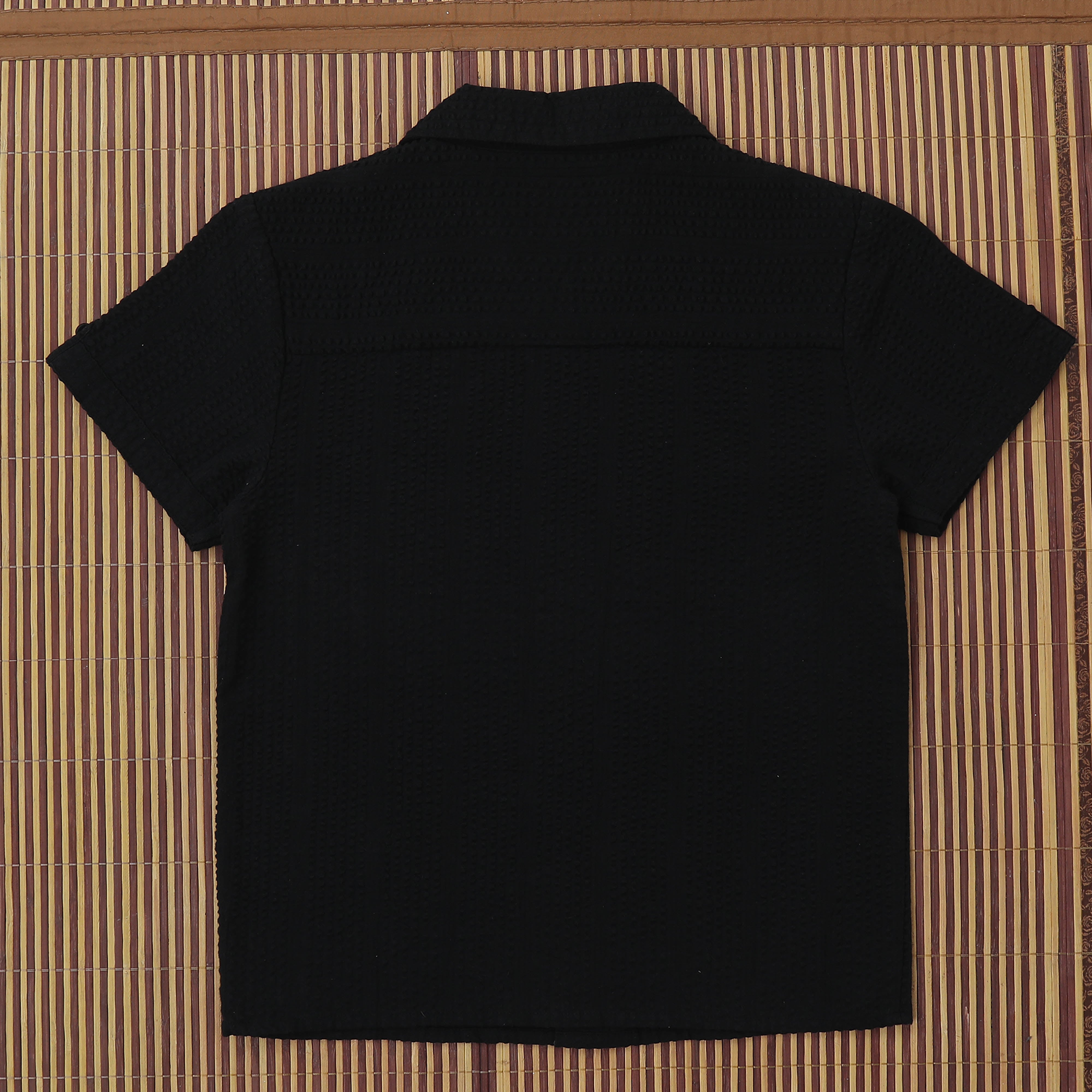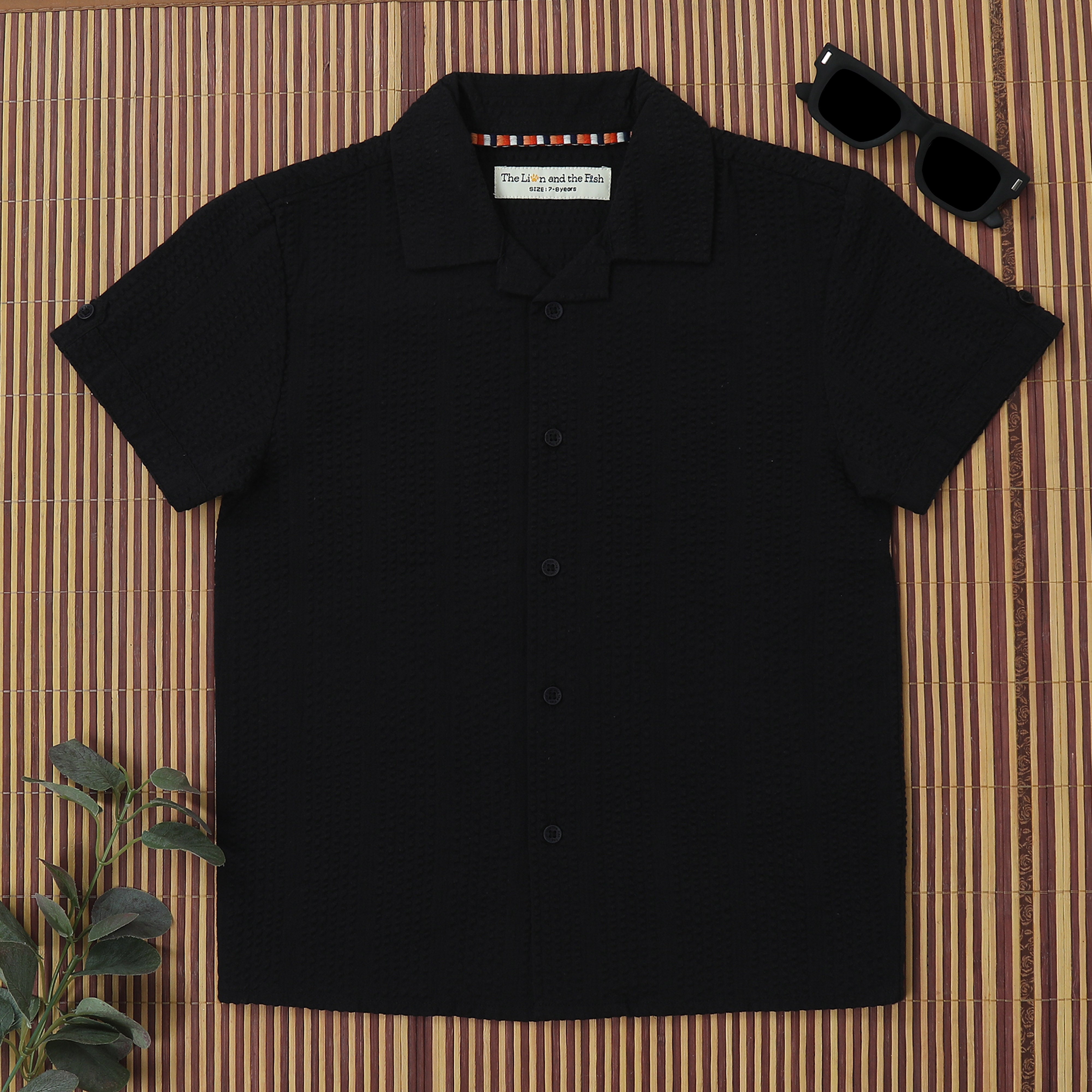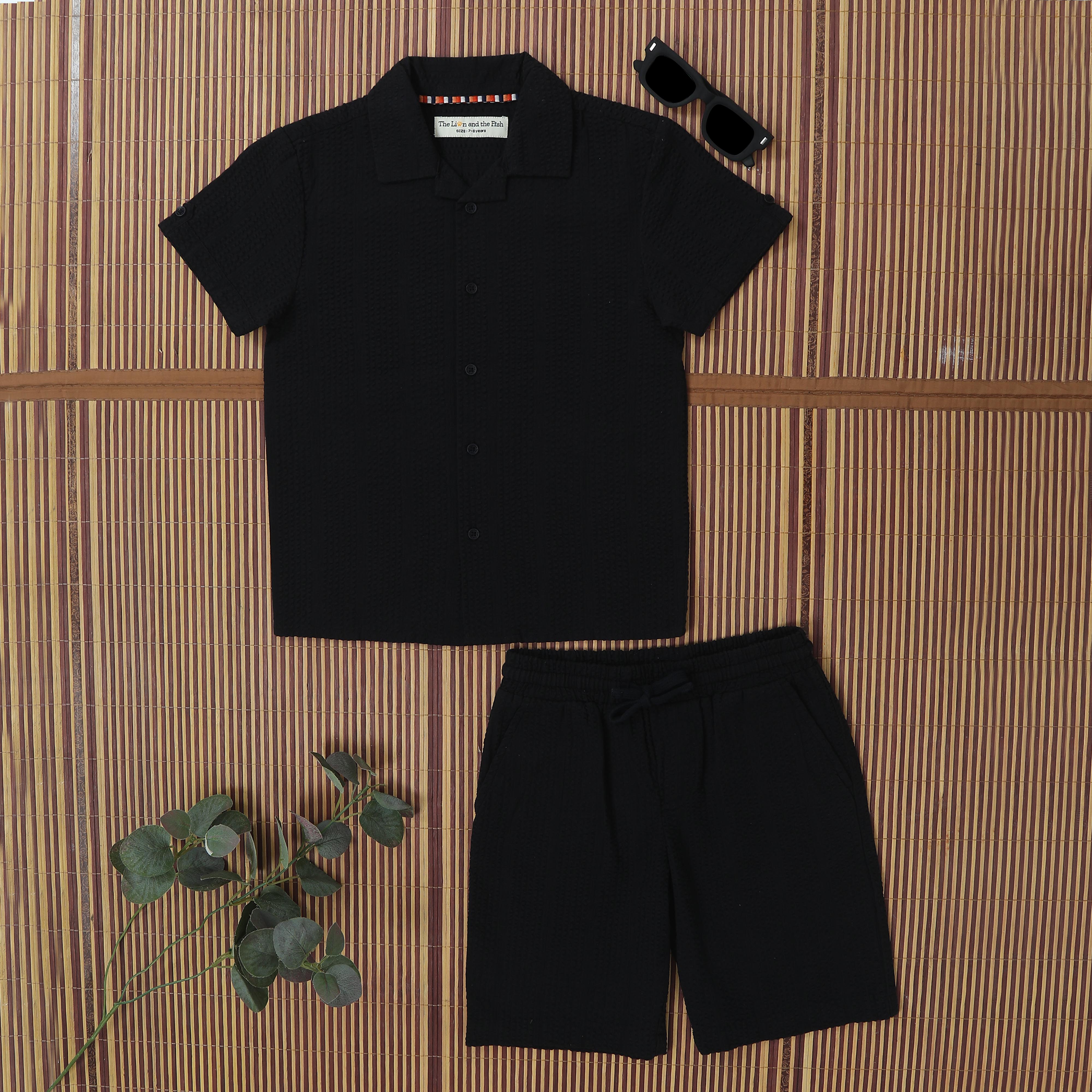 Boys Textured Seersucker Resort Shirt & Short Co-Ord Set Coal Black