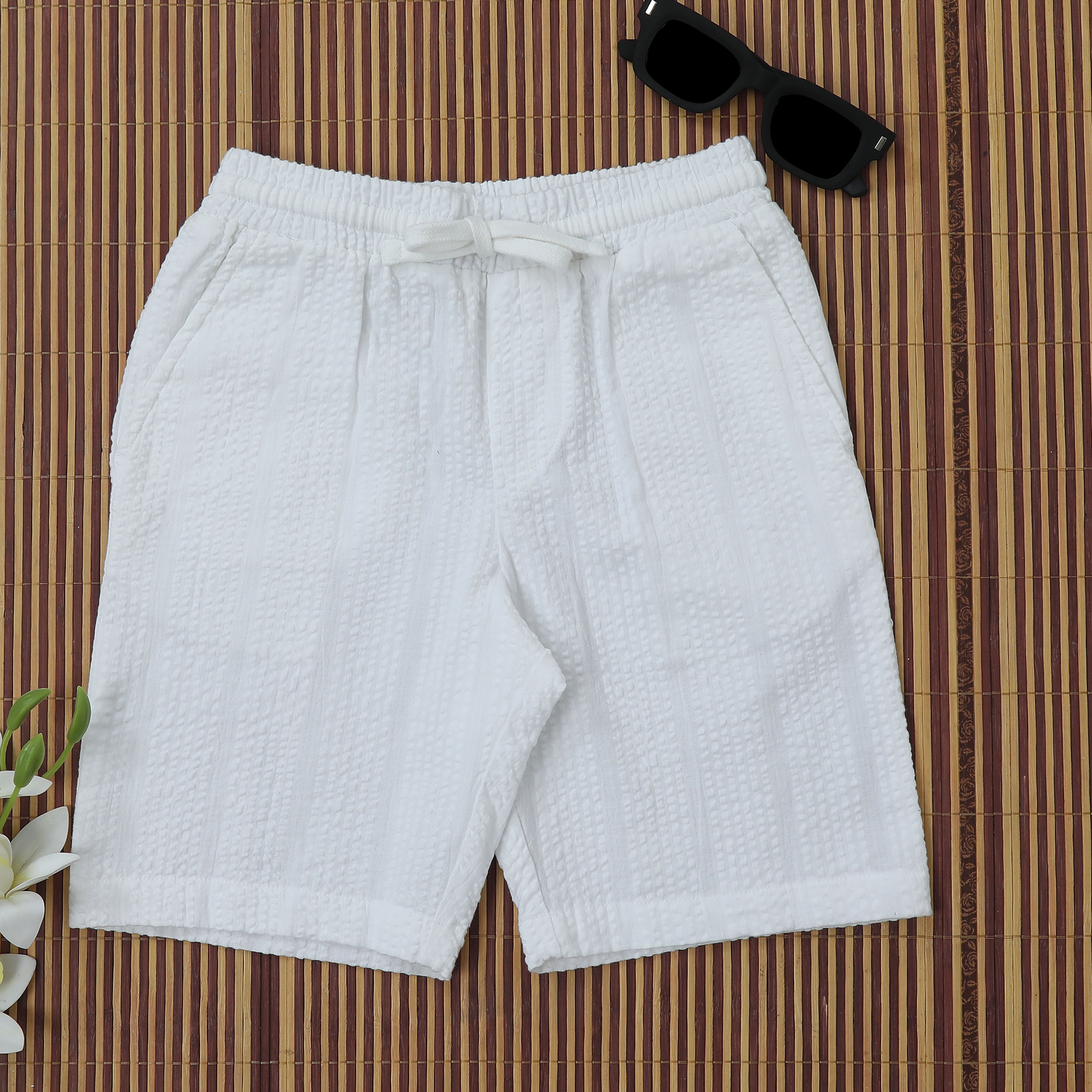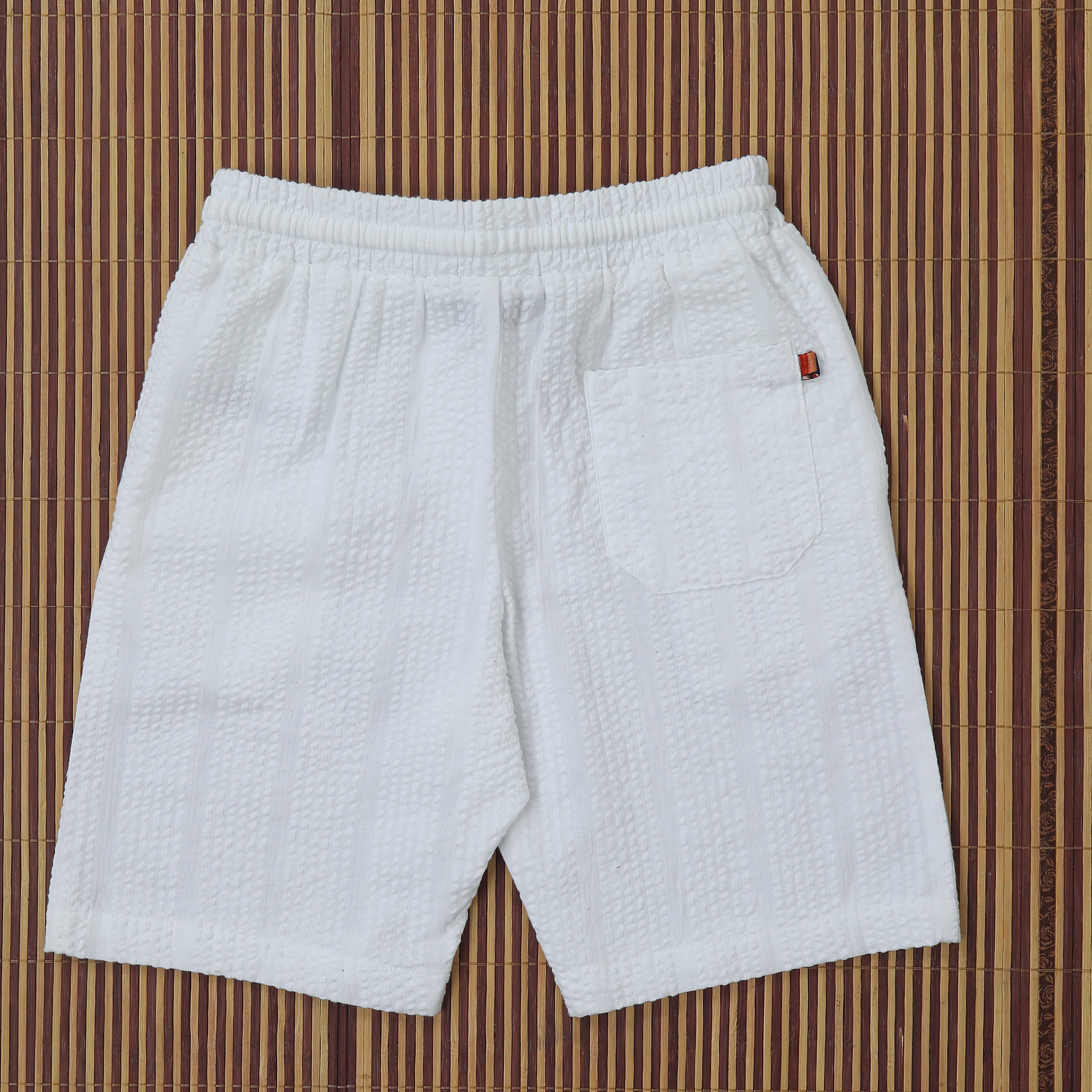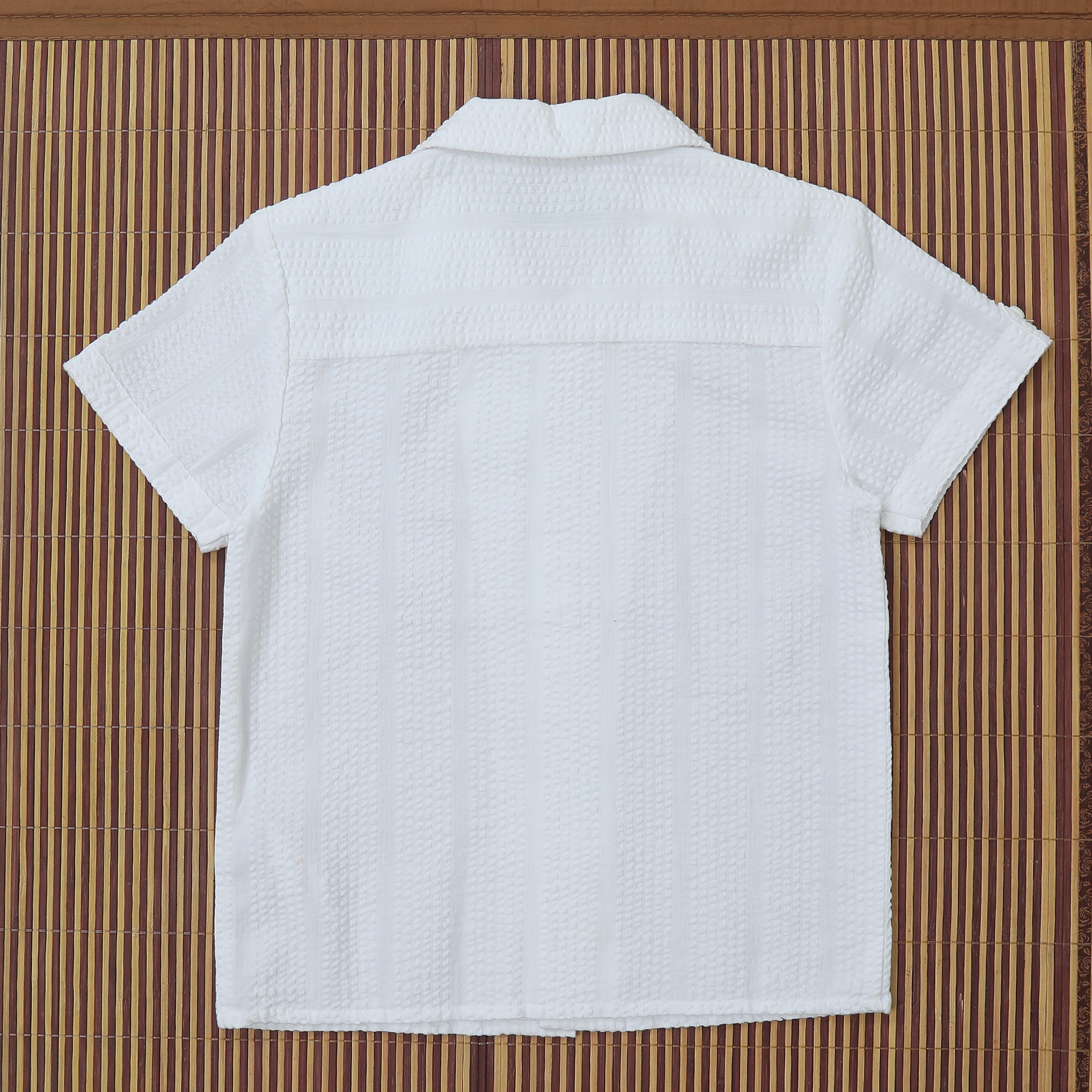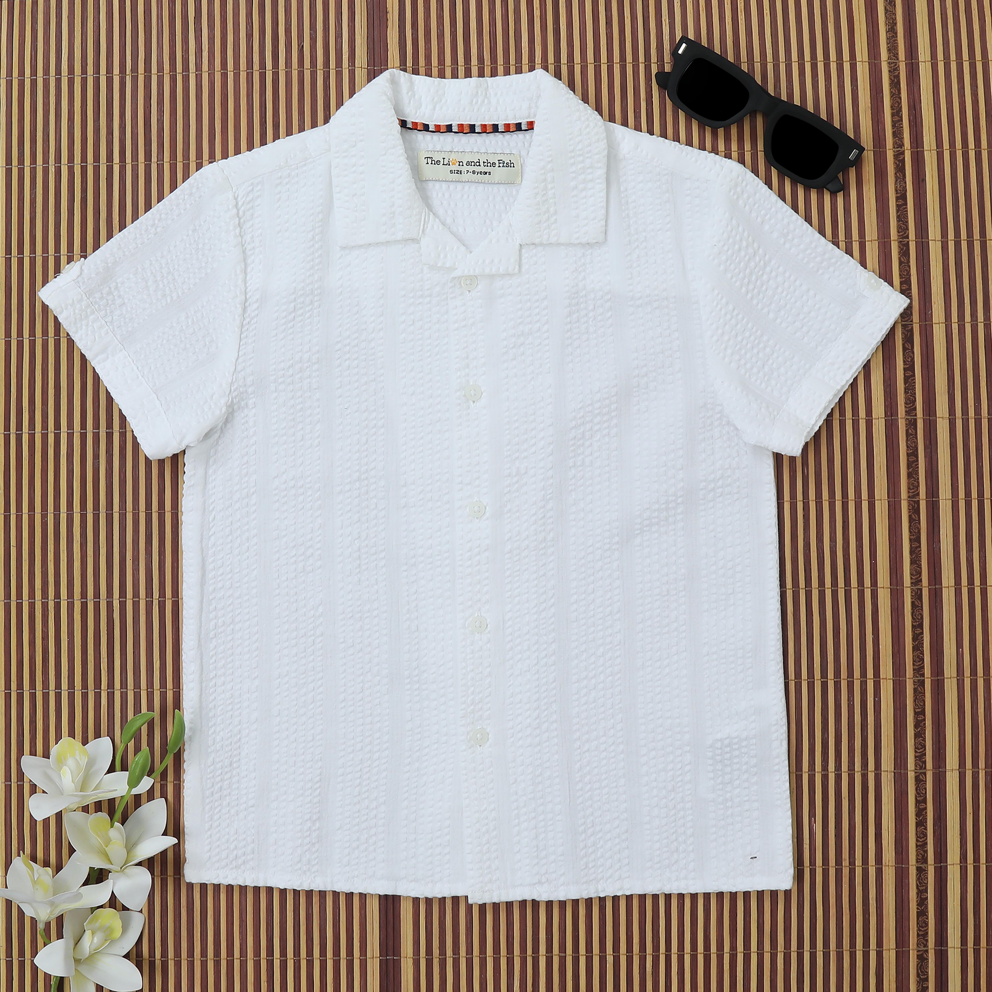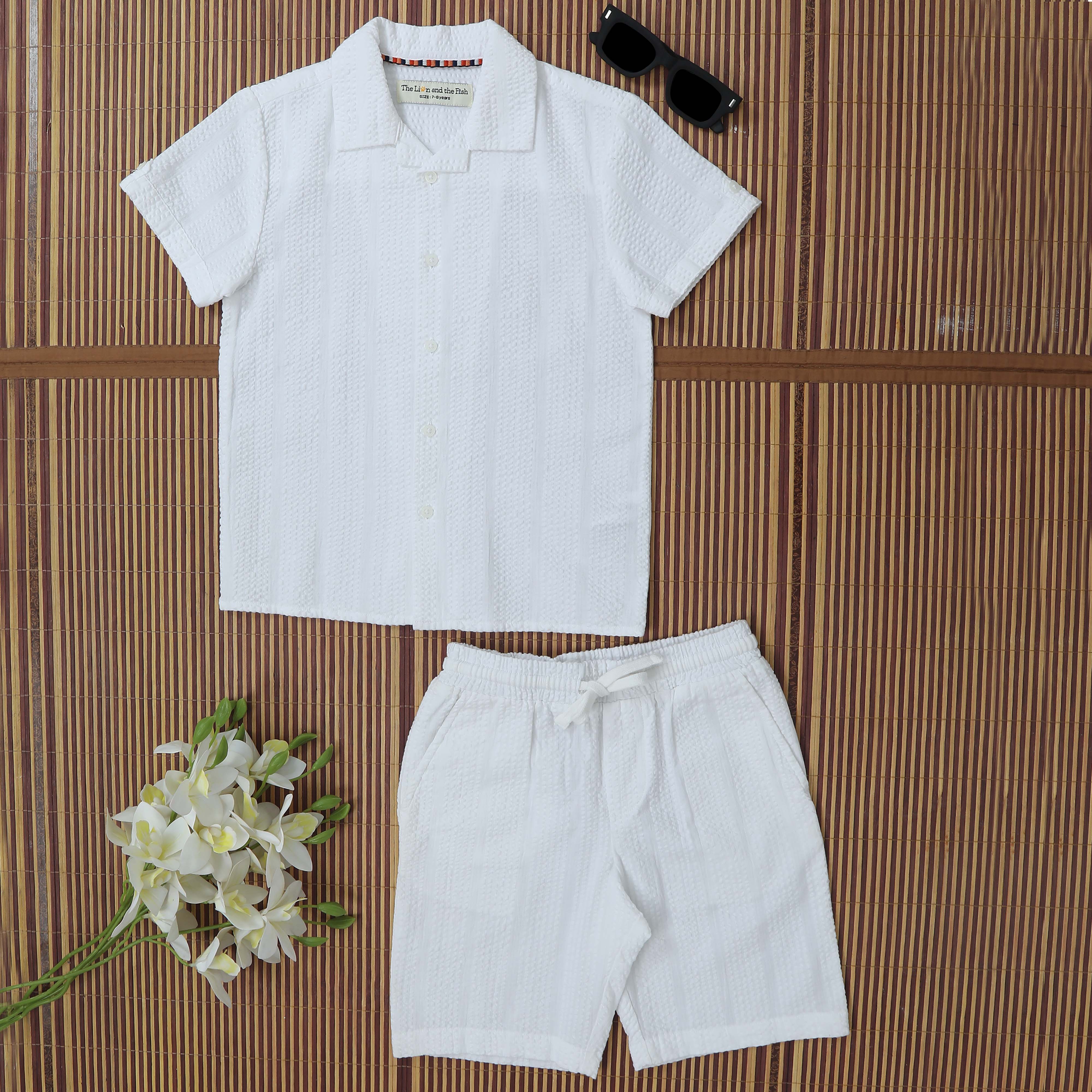 Boys Textured Seersucker Resort Shirt & Short Co-Ord Set Porcelain White