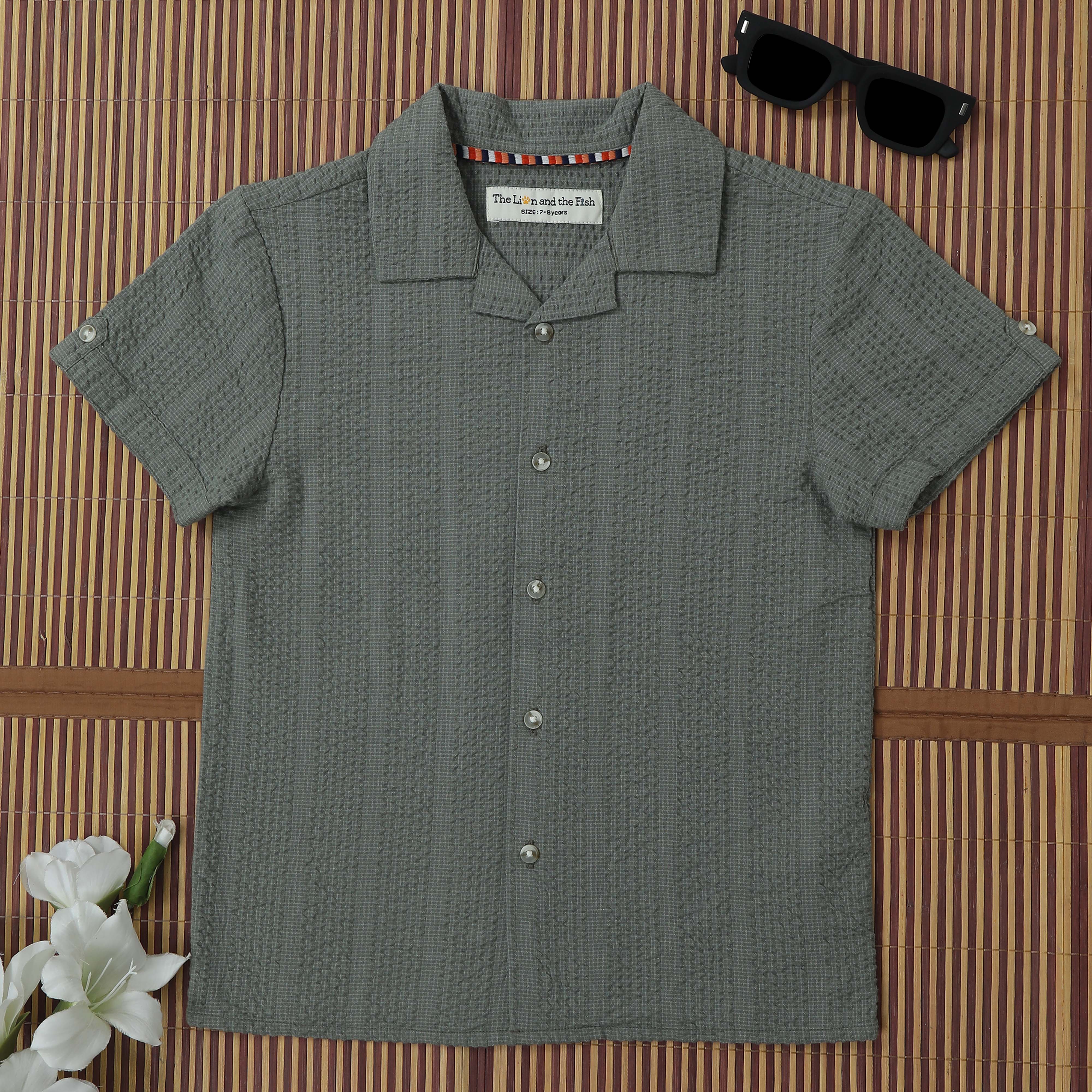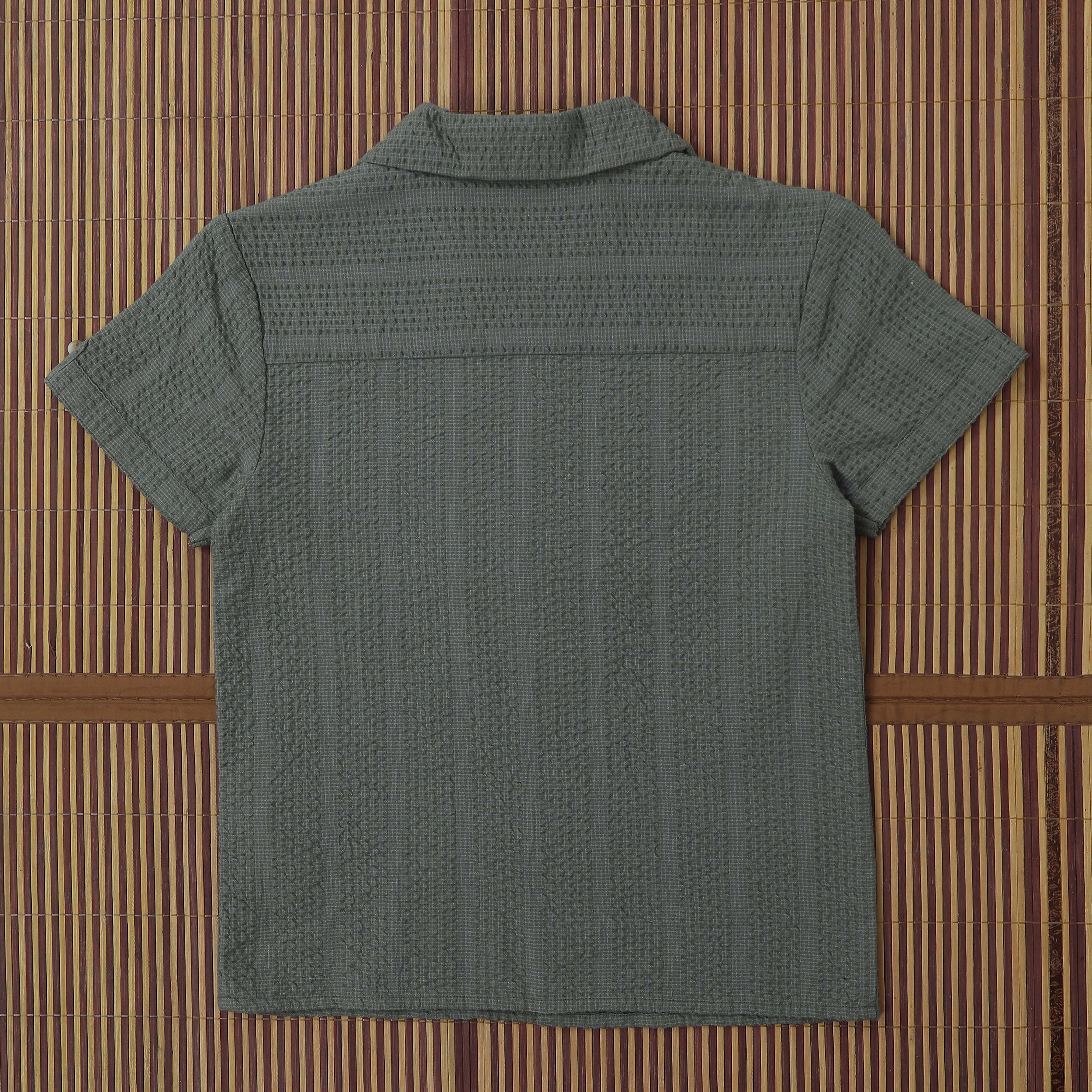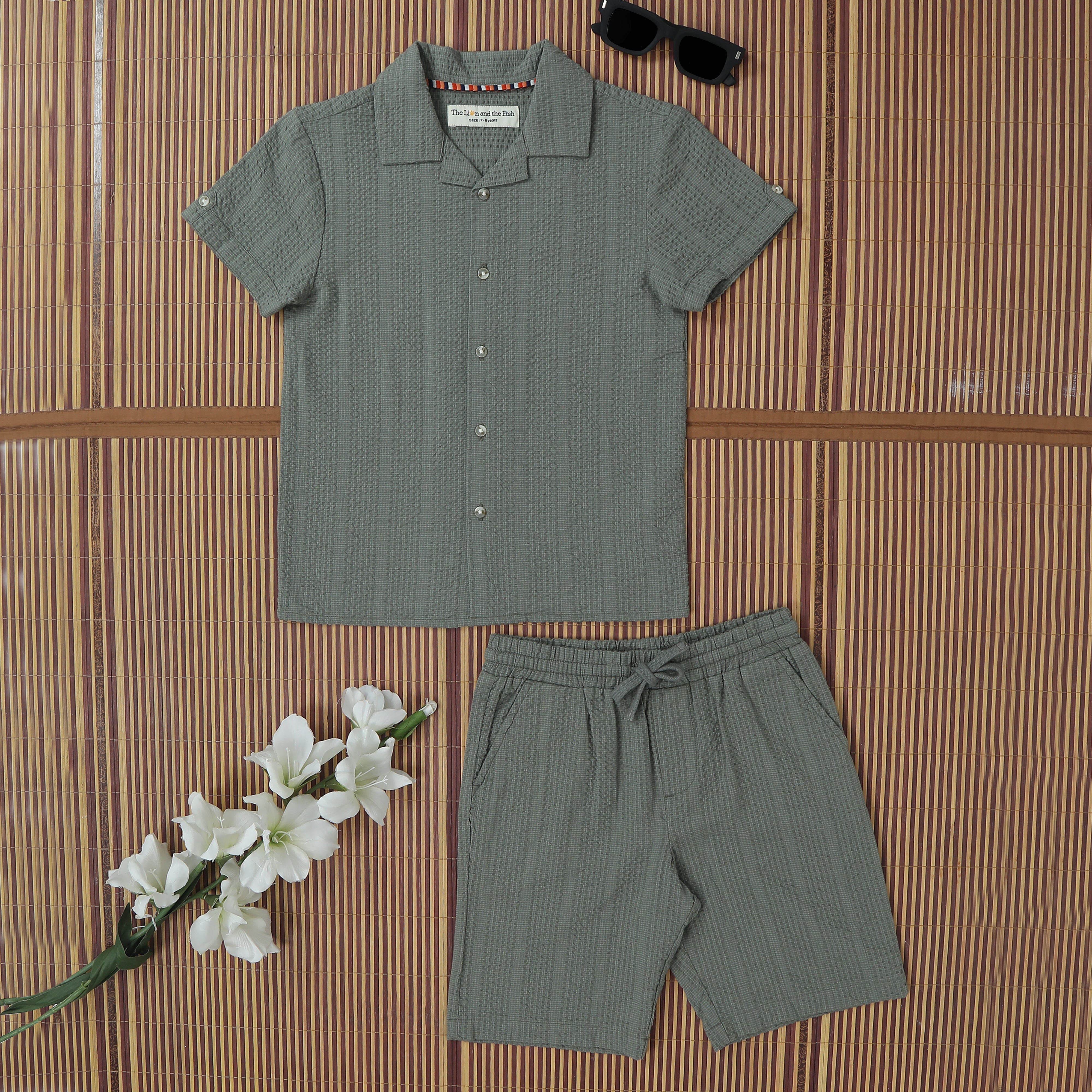 Boys Textured Seersucker Resort Shirt & Short Co-Ord Set Sage Green