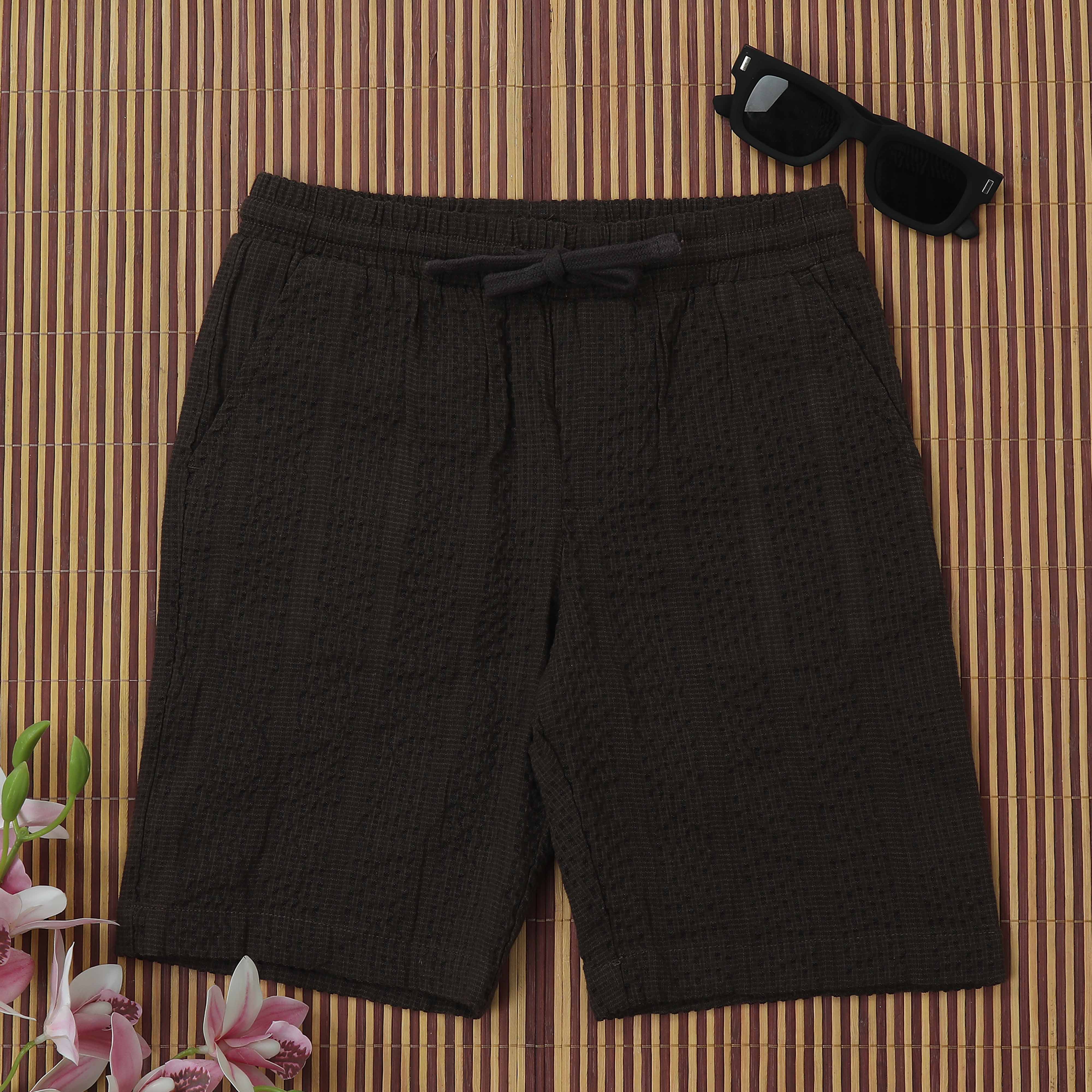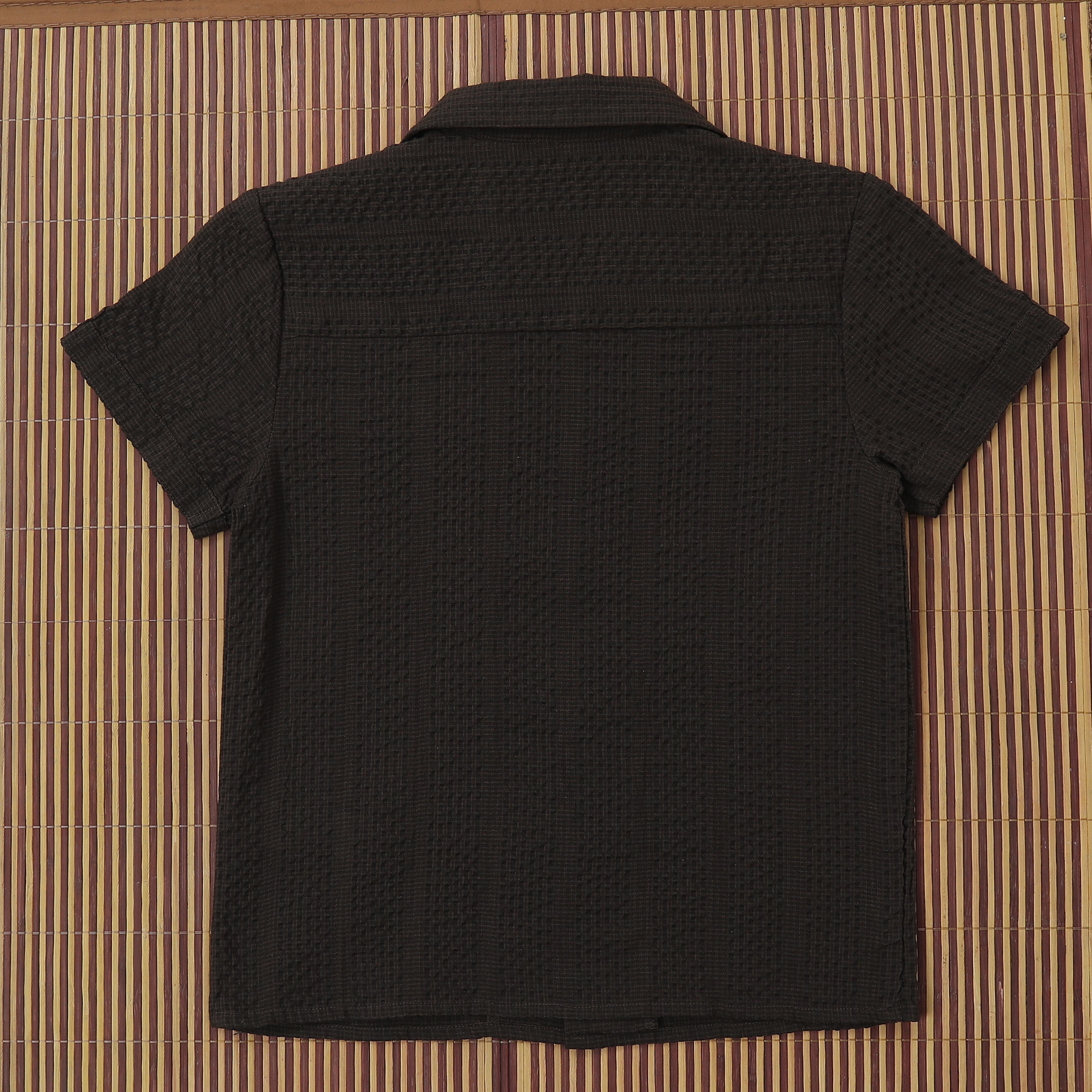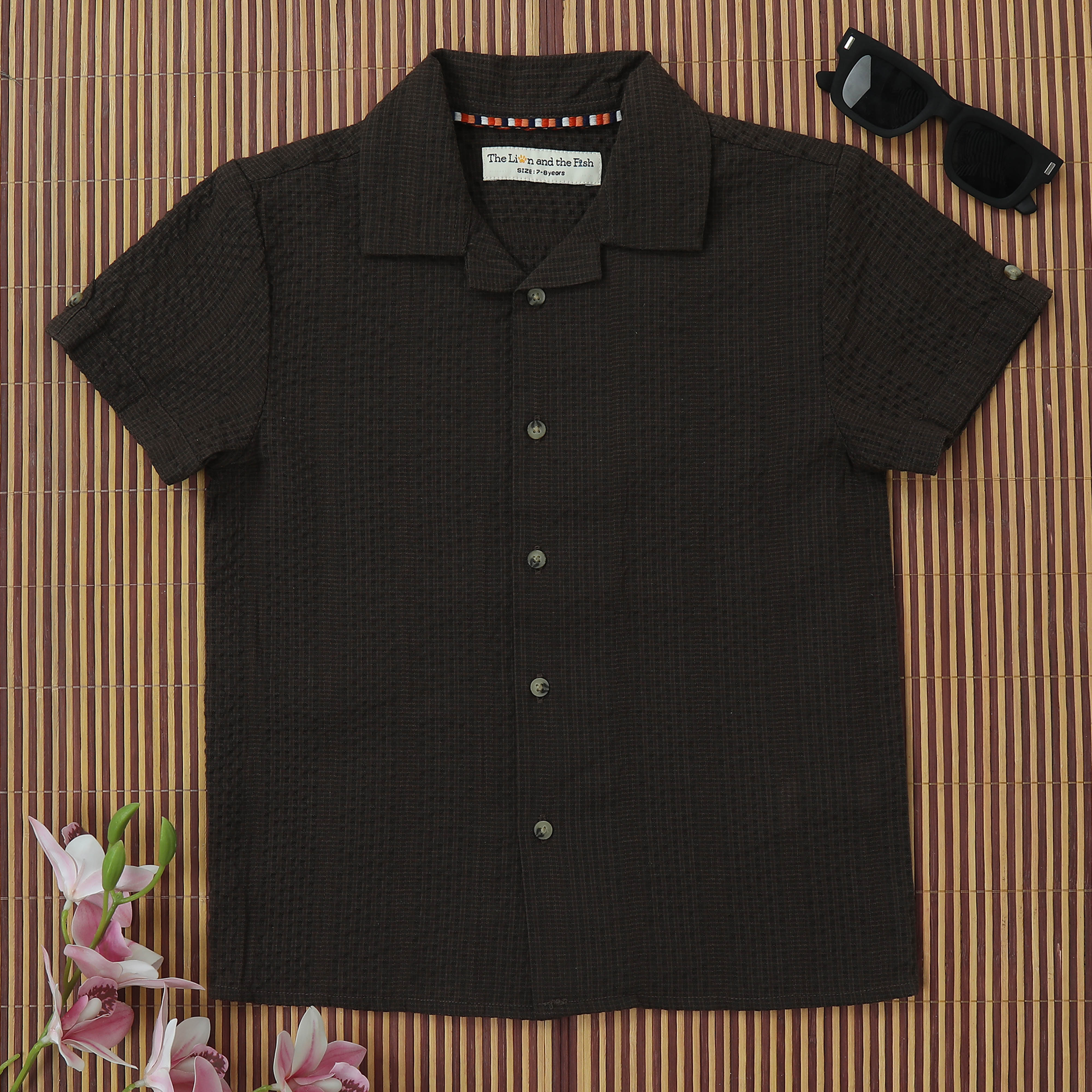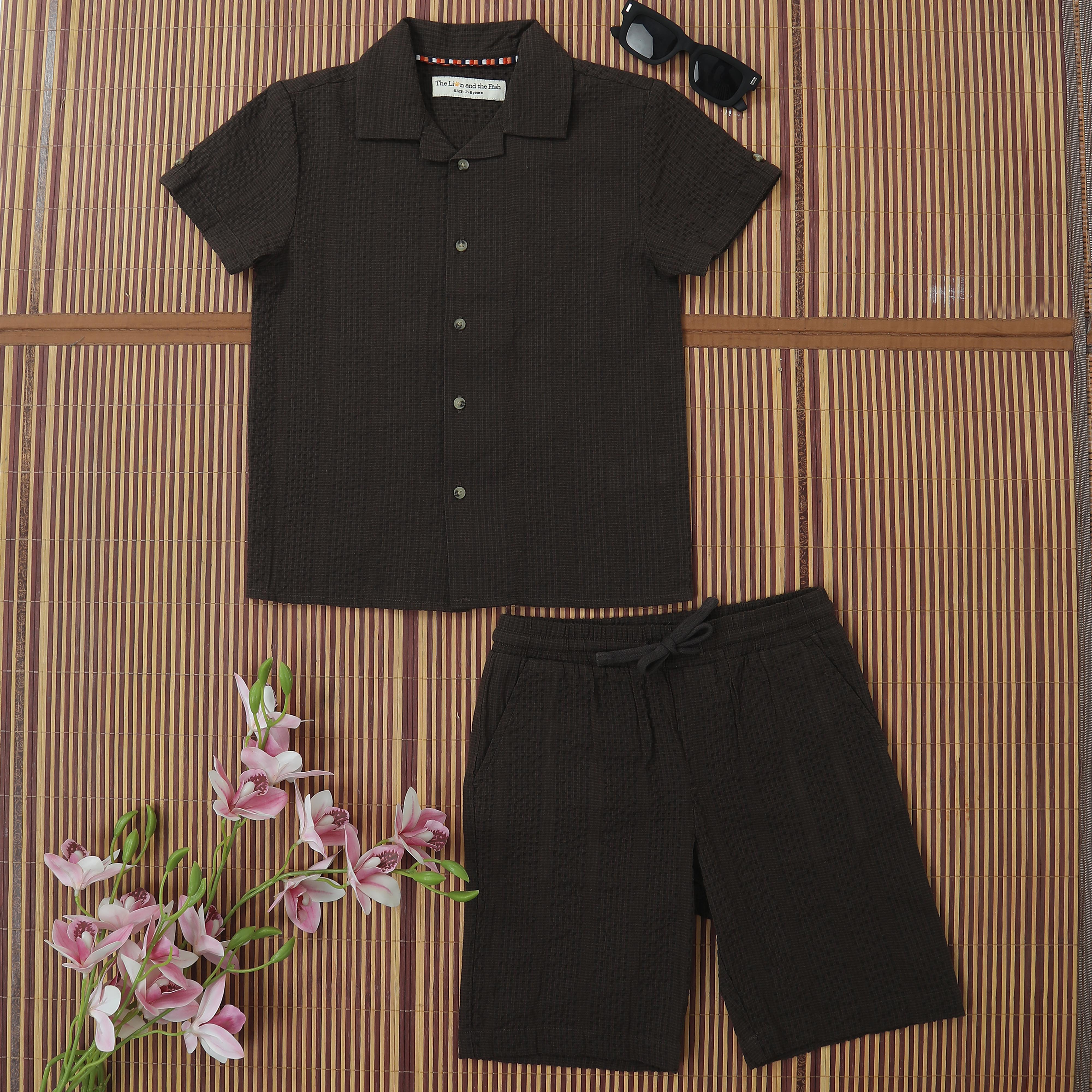 Boys Textured Seersucker Resort Shirt & Short Co-Ord Set Taupe Brown