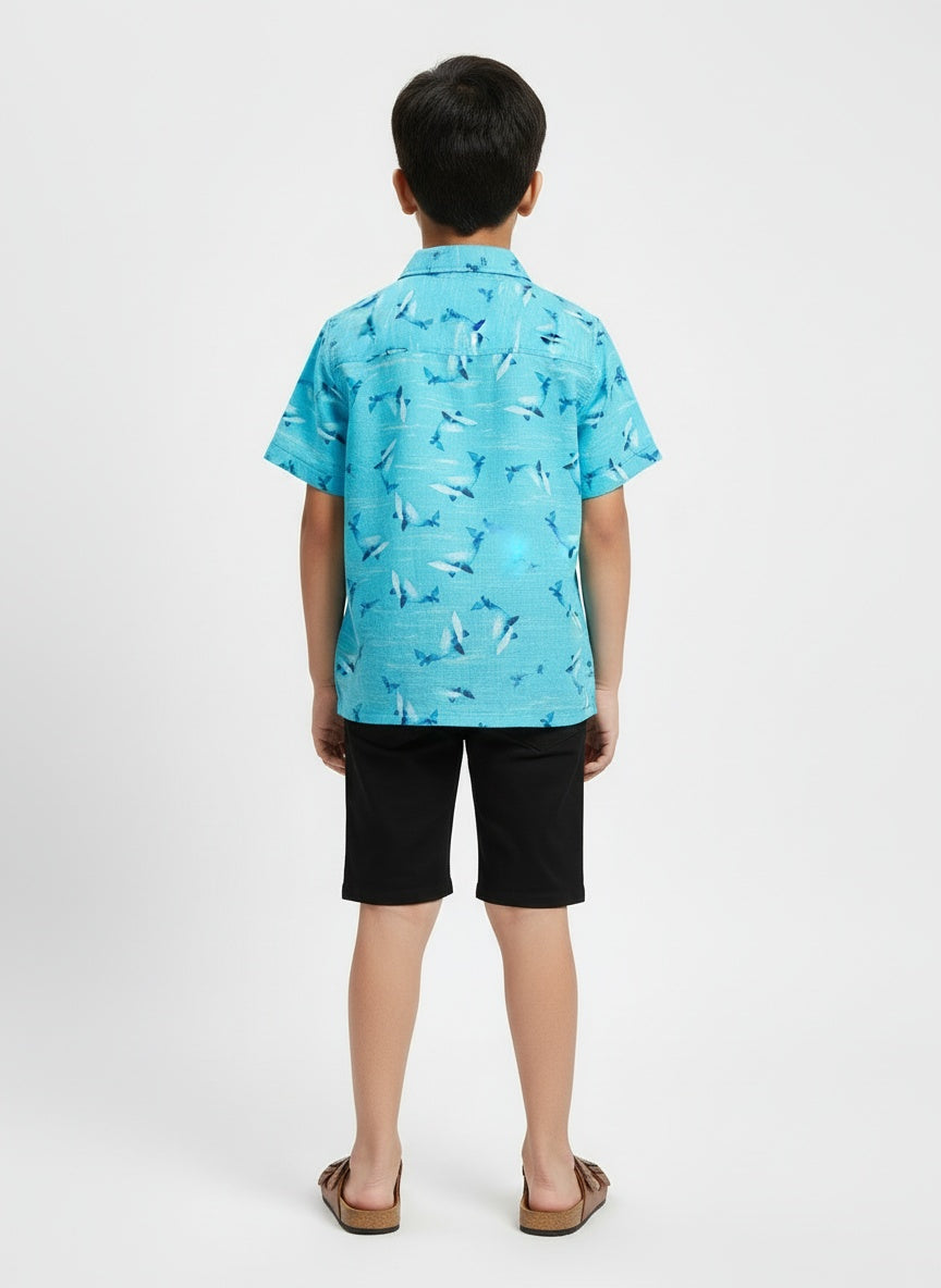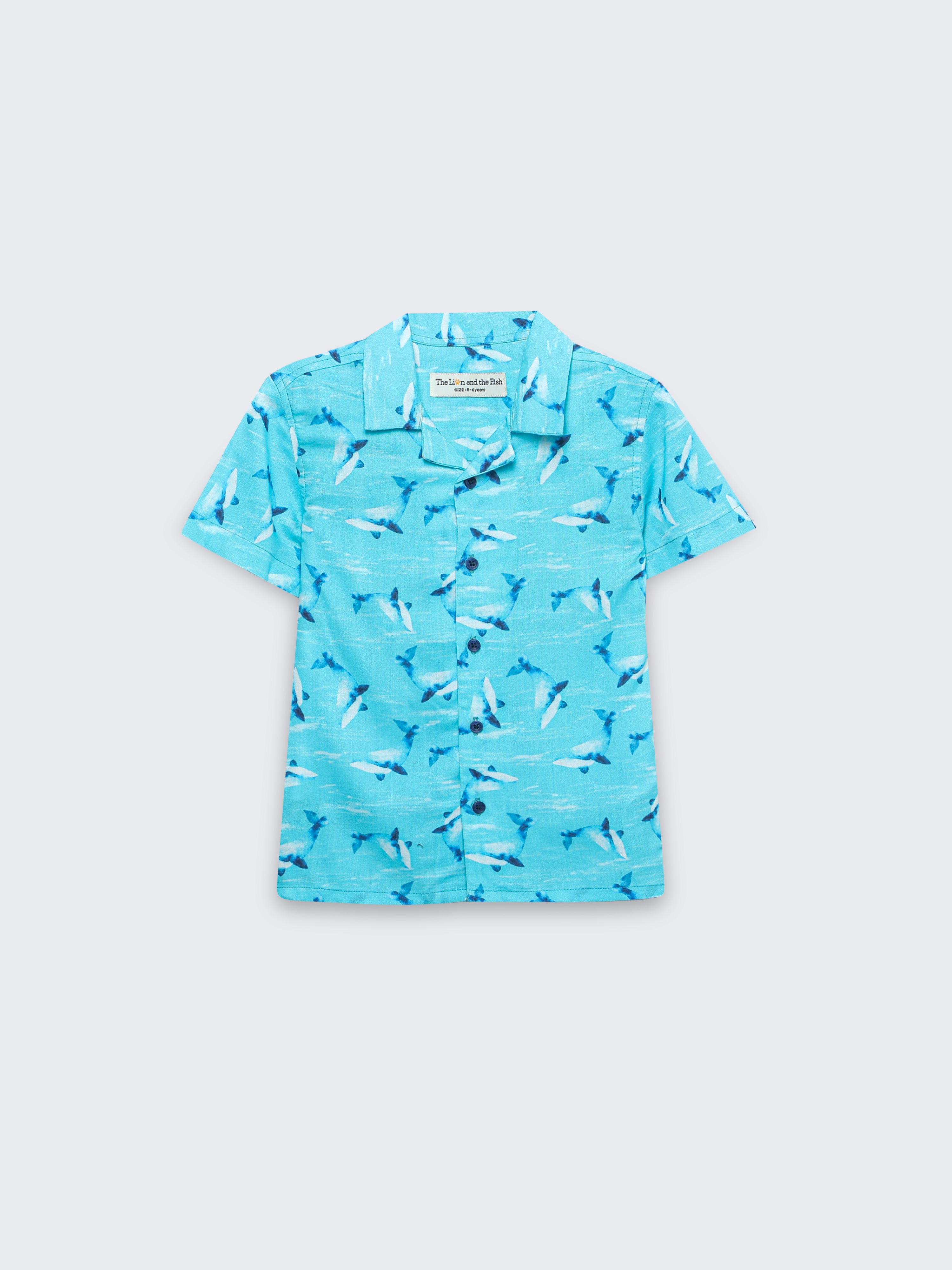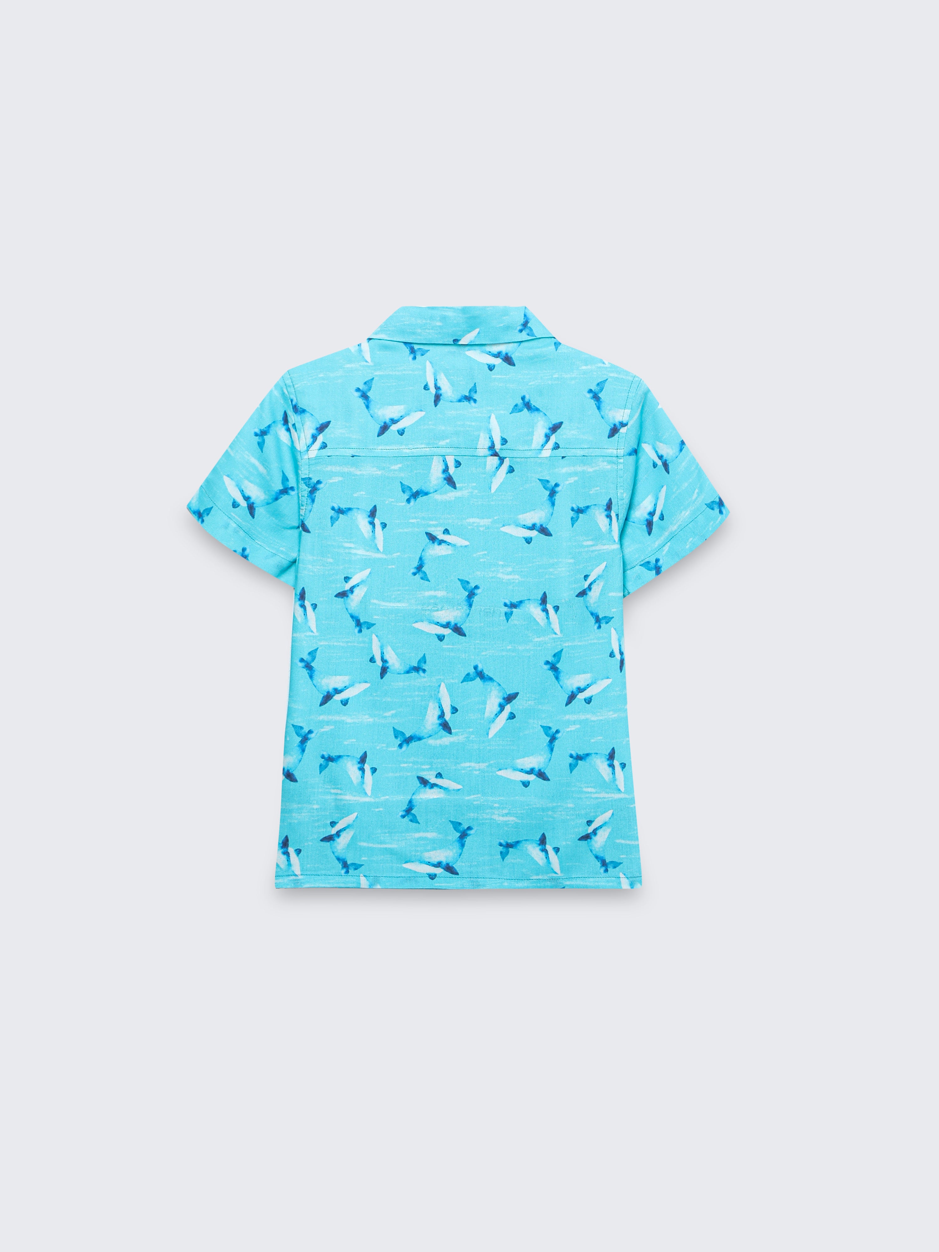 Boys Watercolour Effect Printed Shirt Aqua Blue