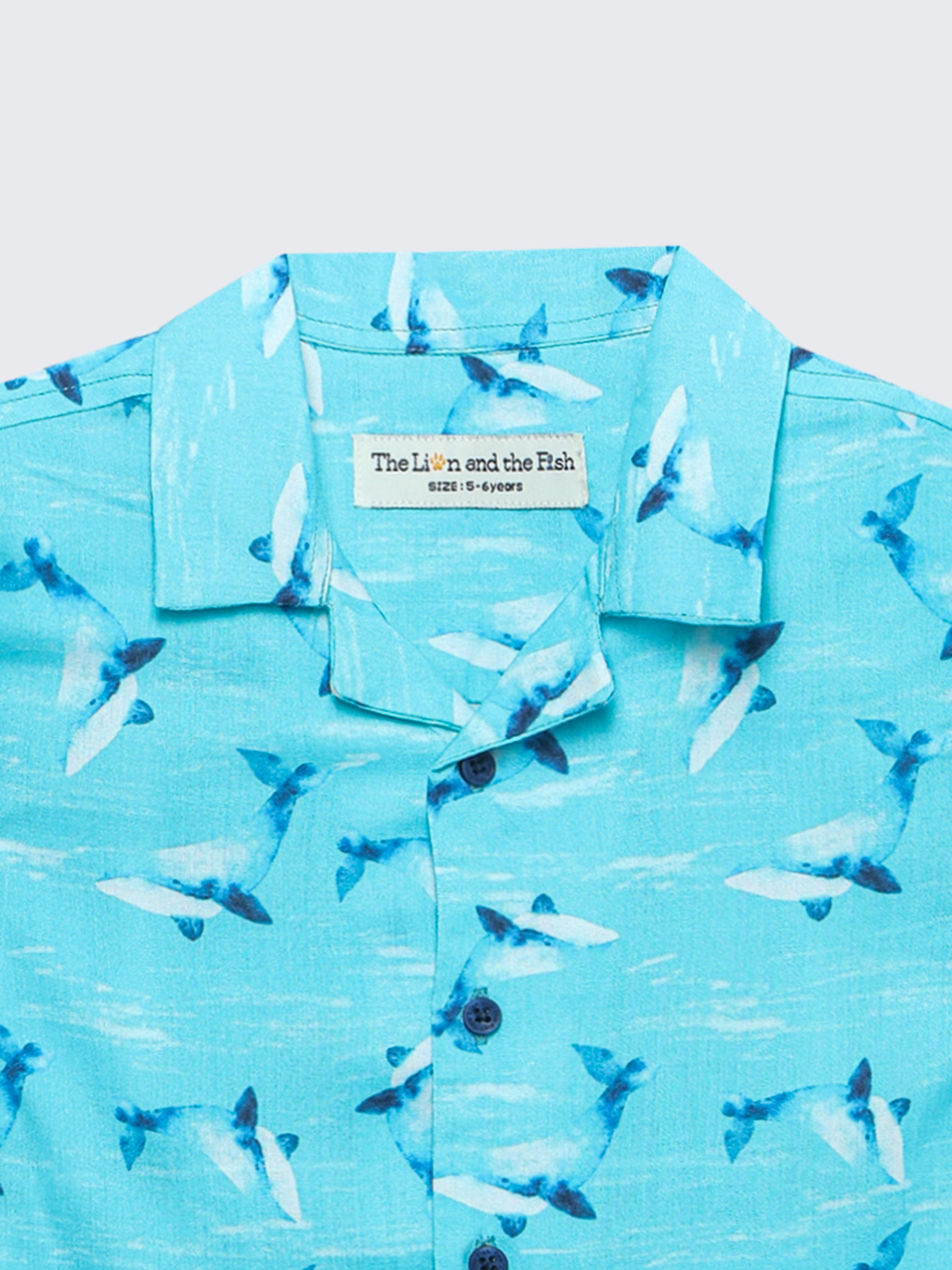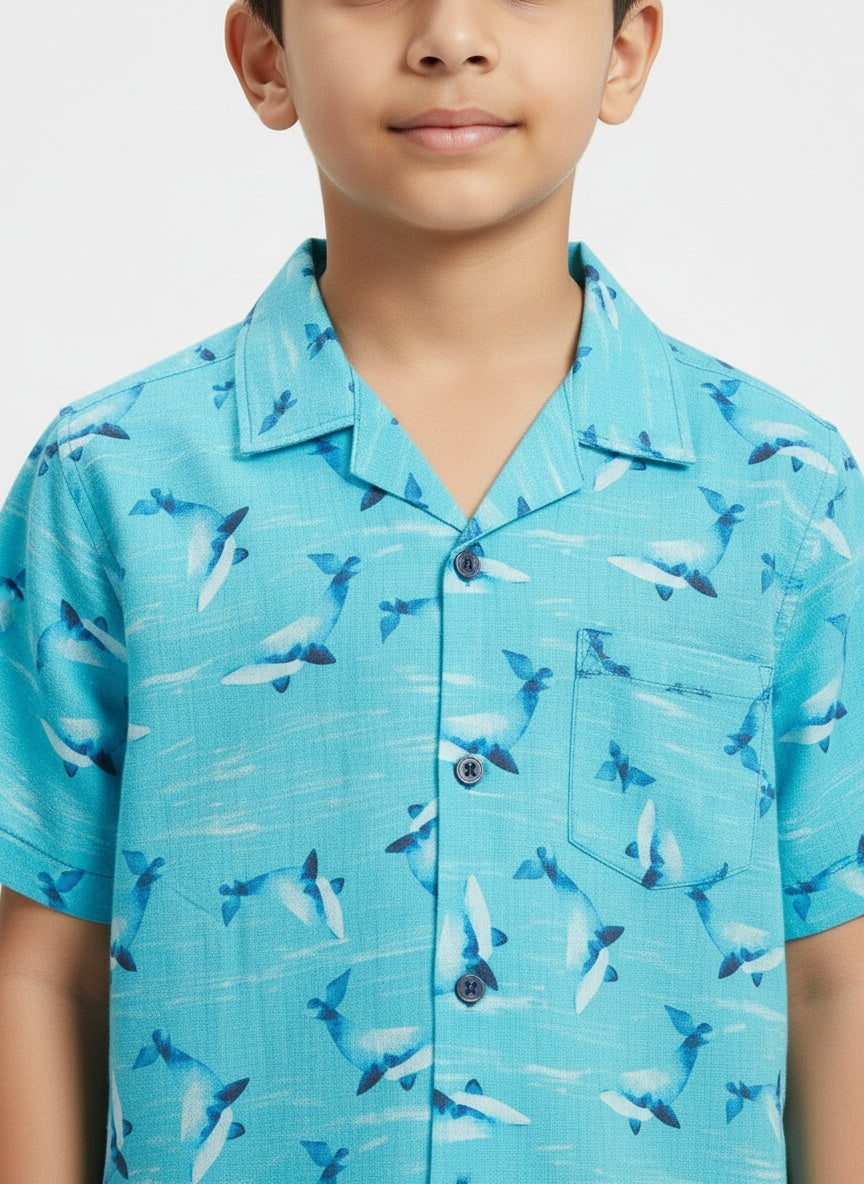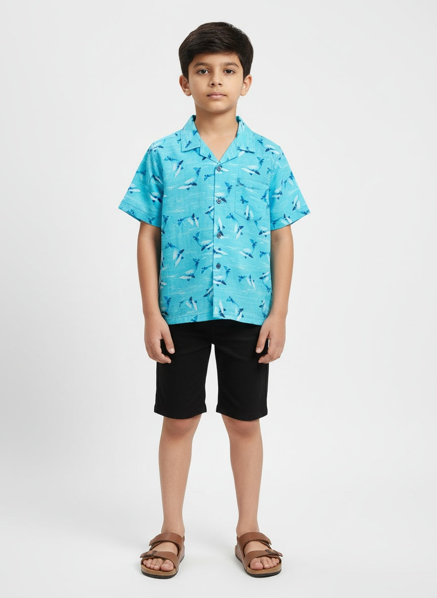 Boys Watercolour Effect Printed Shirt Aqua Blue
