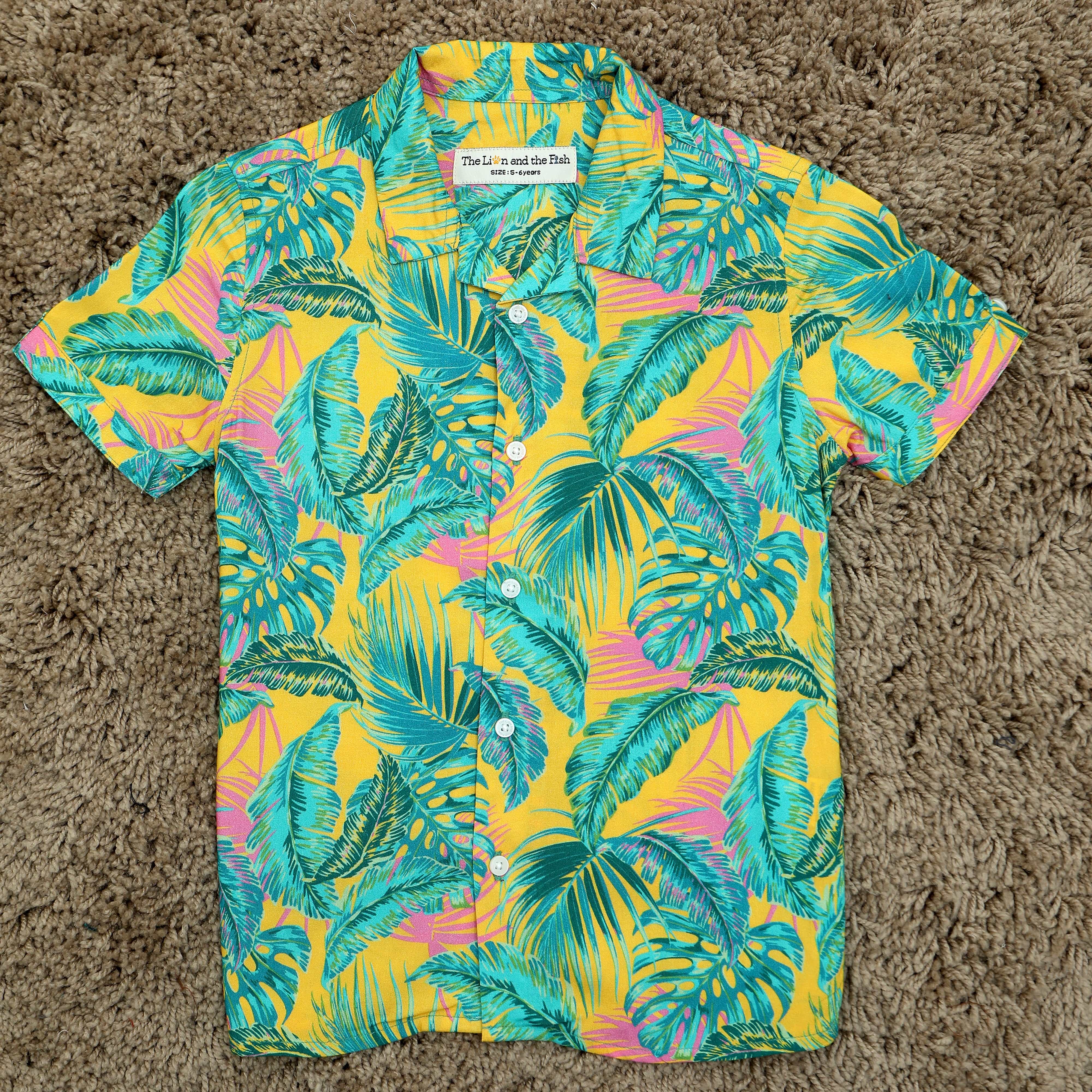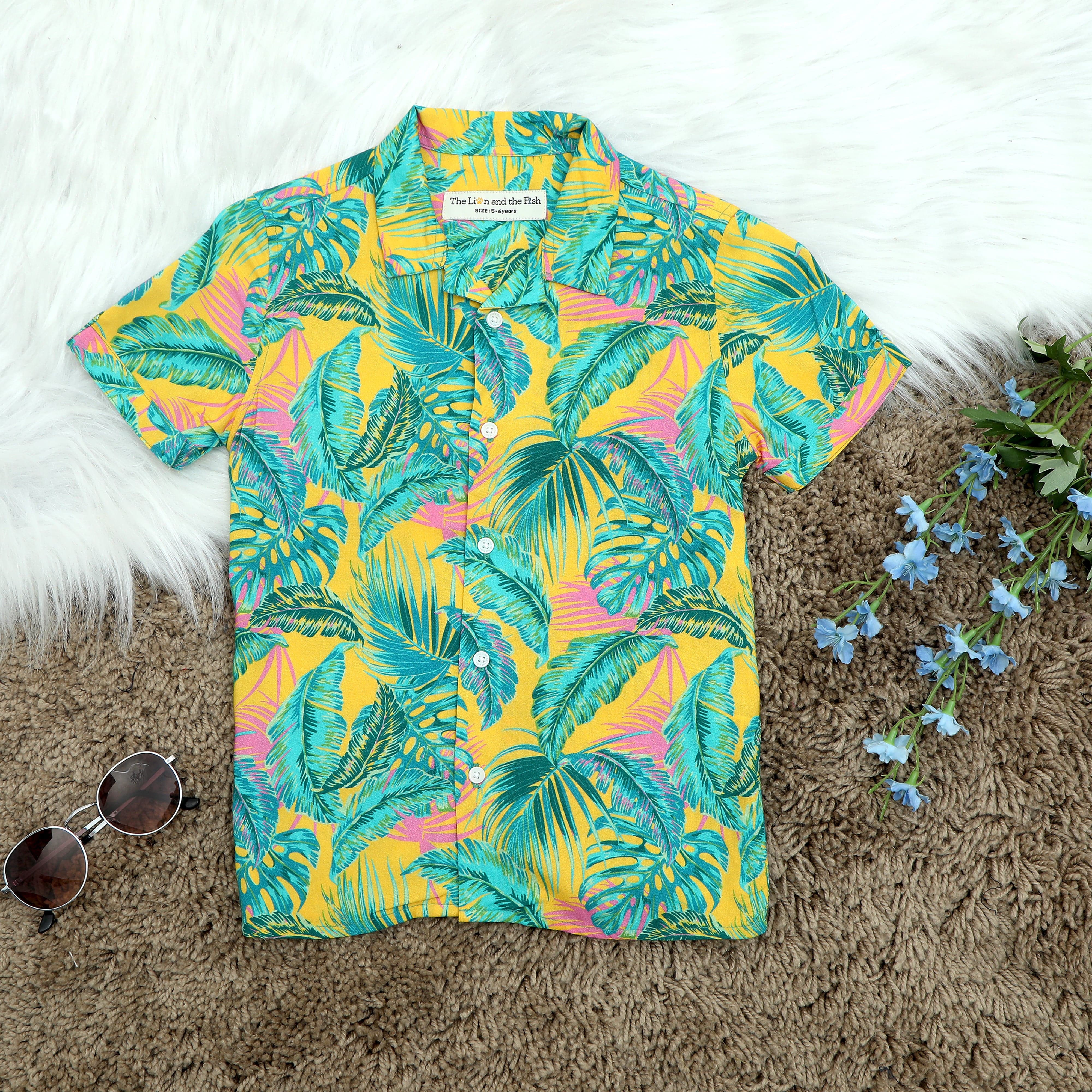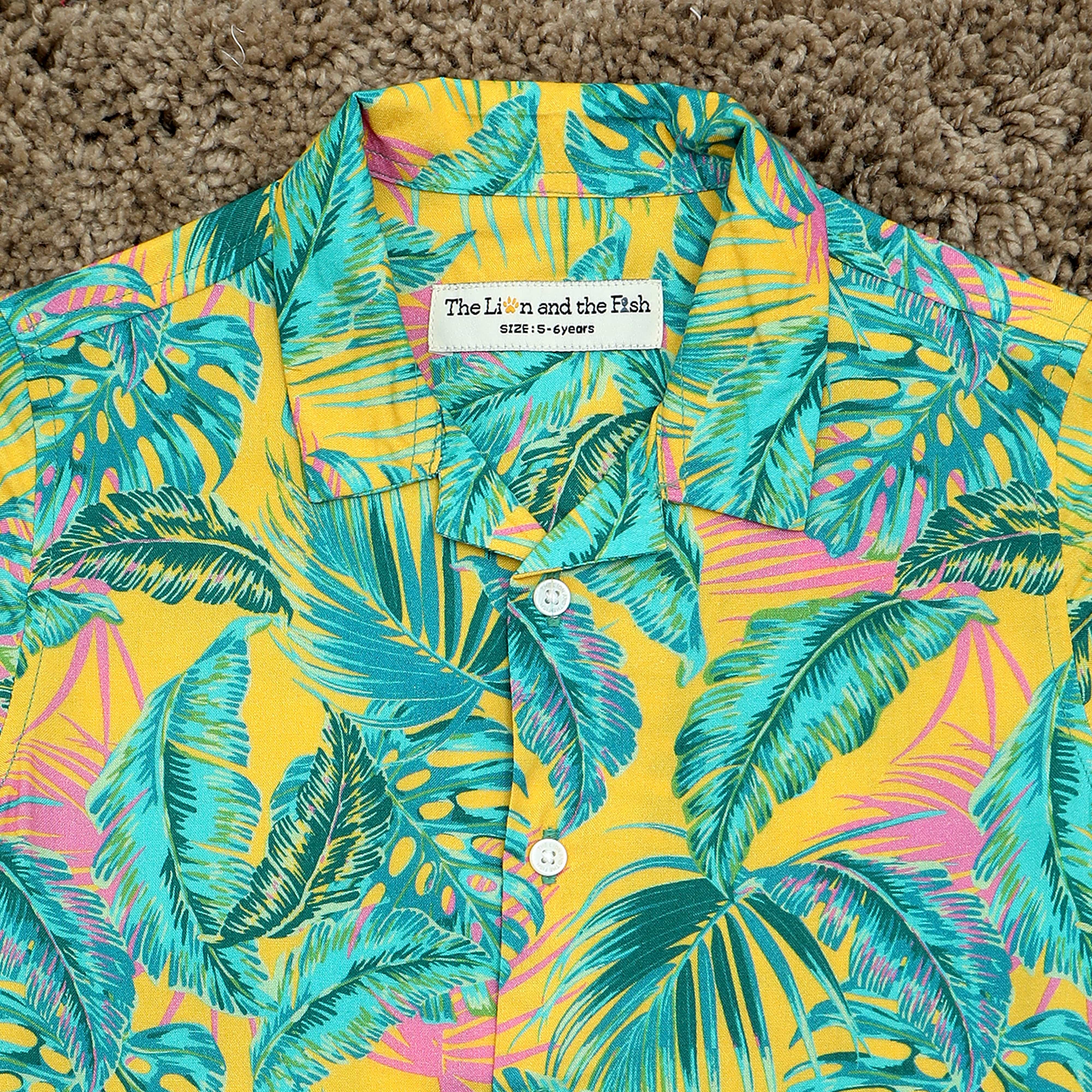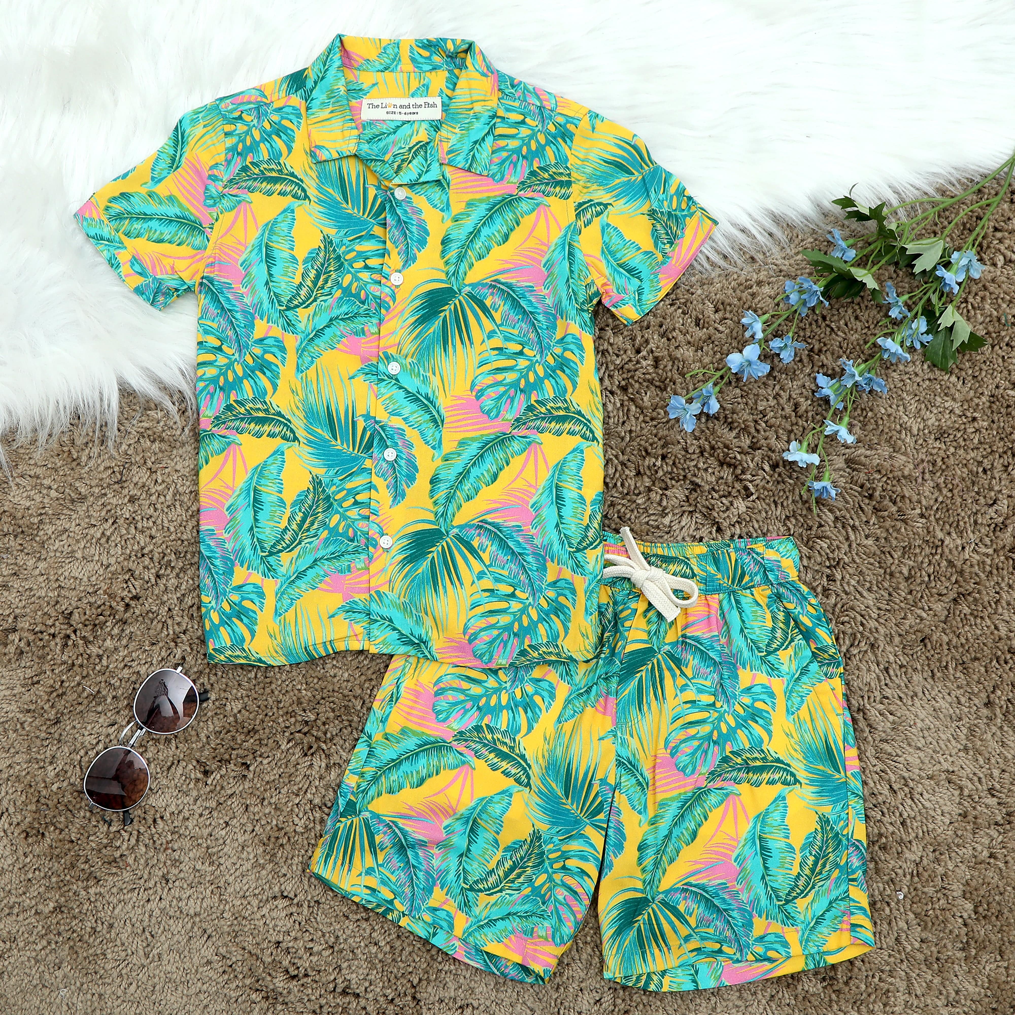 Boys Hawaiian Tropical printed Shirt & Short Co-Ord Set Yellow
