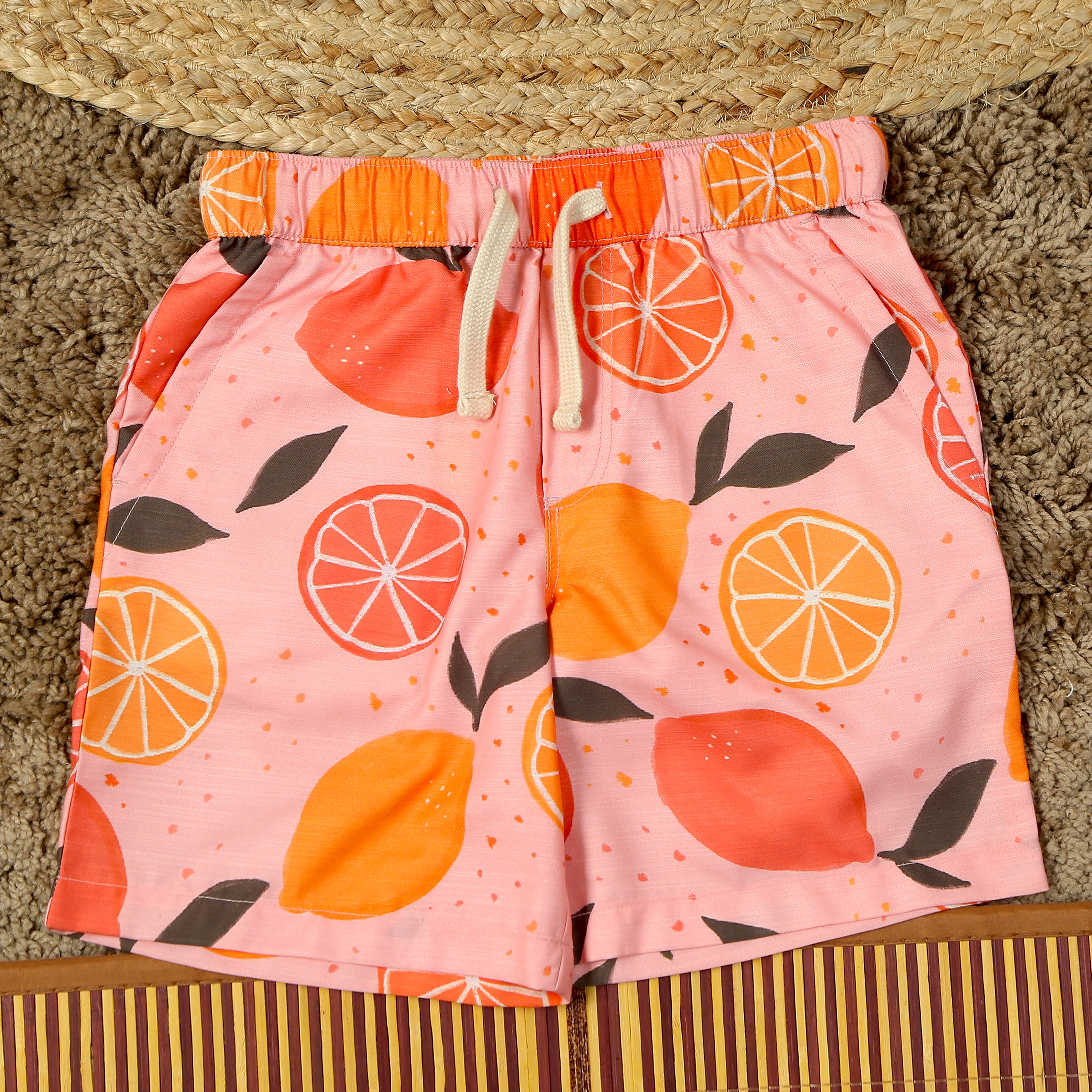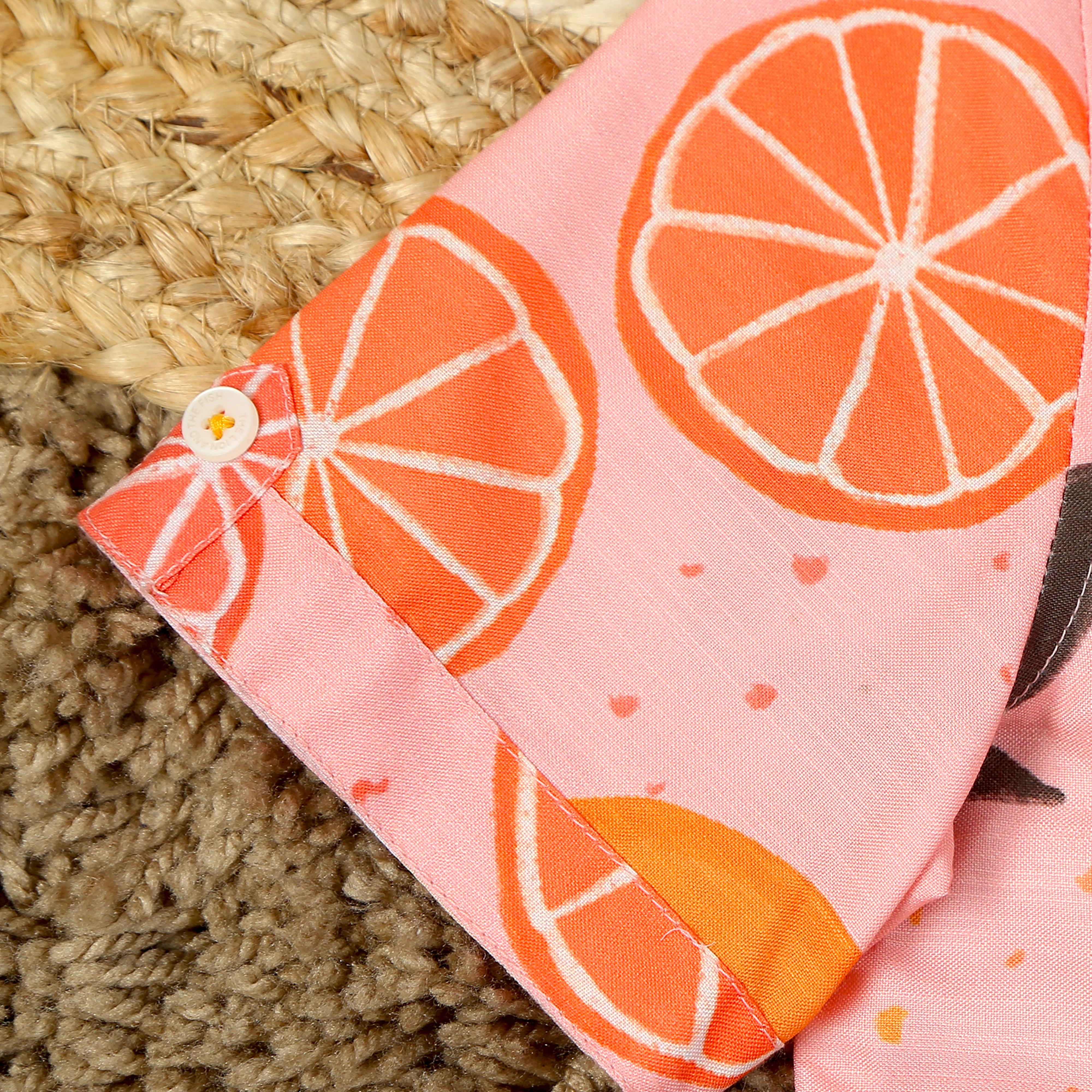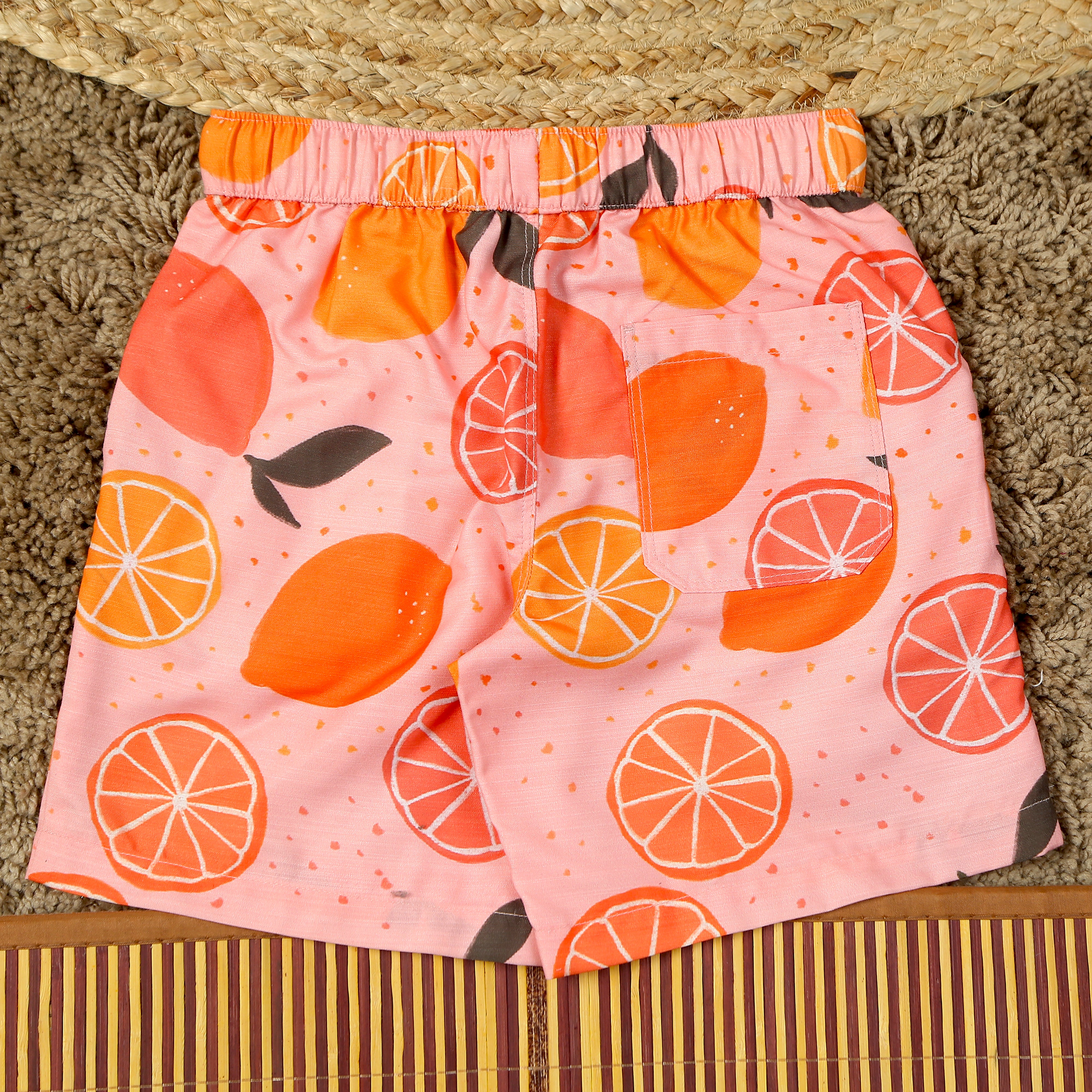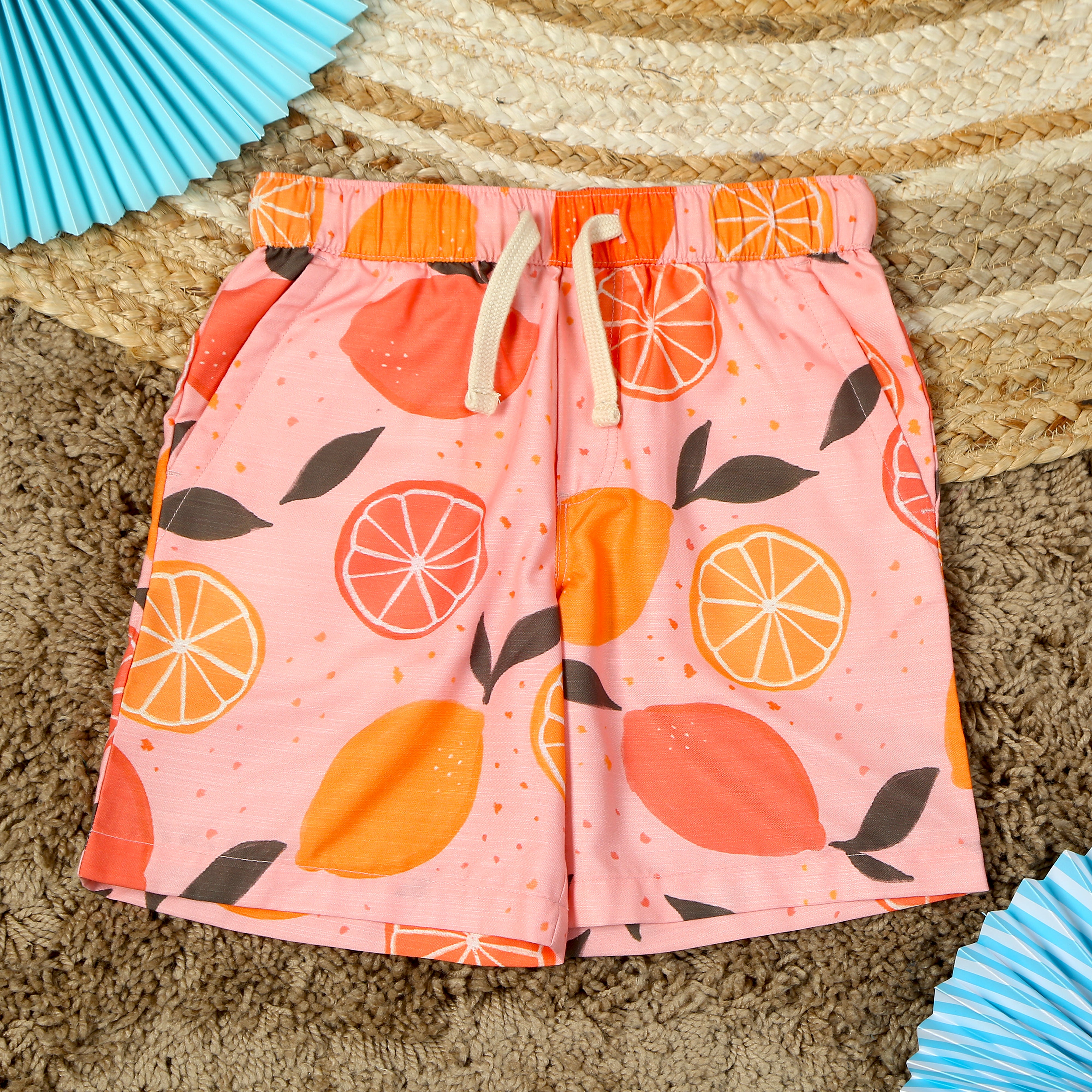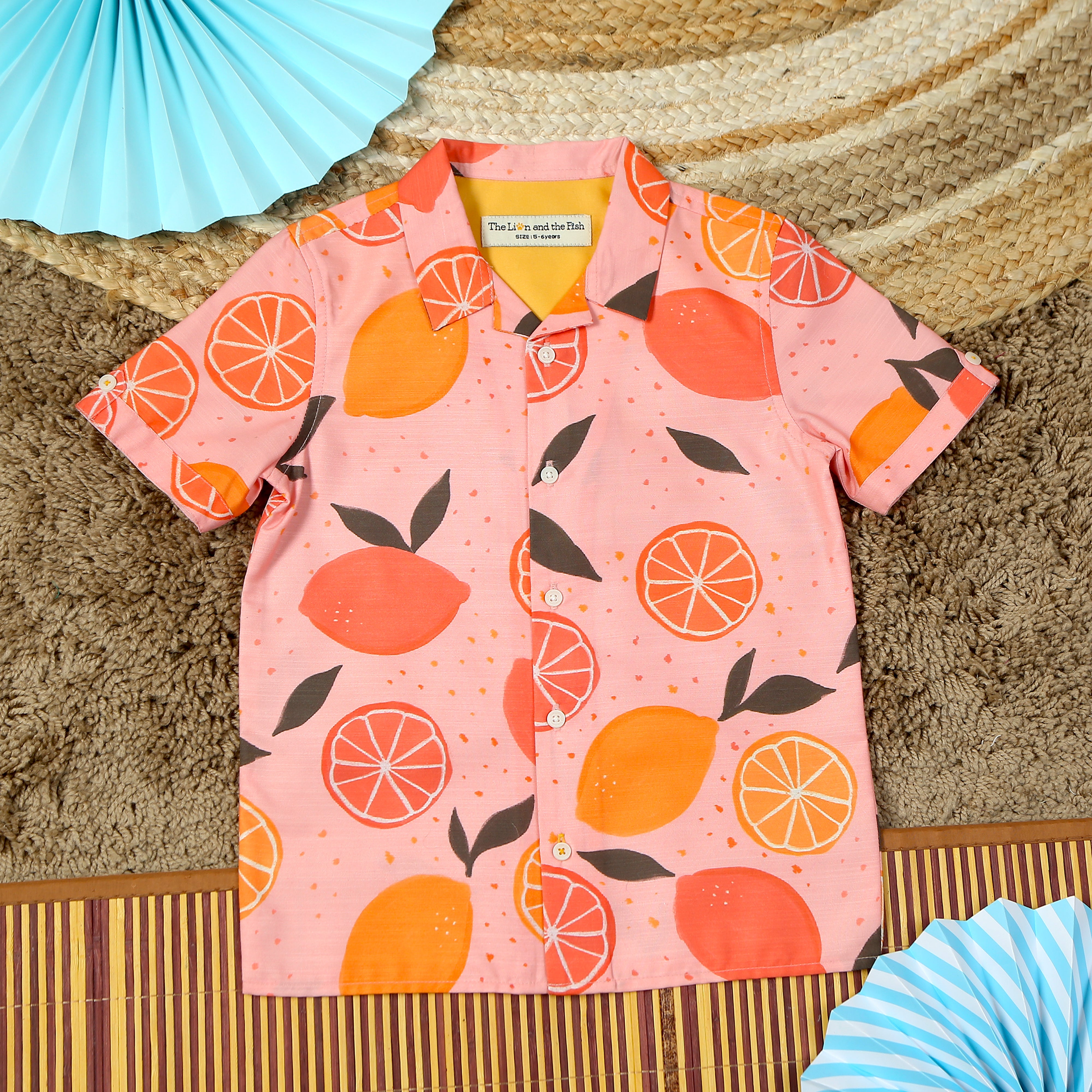 Boys & Girls Unisex Lemon Printed Shirt & Short Co-Ord Set Peach Mustard