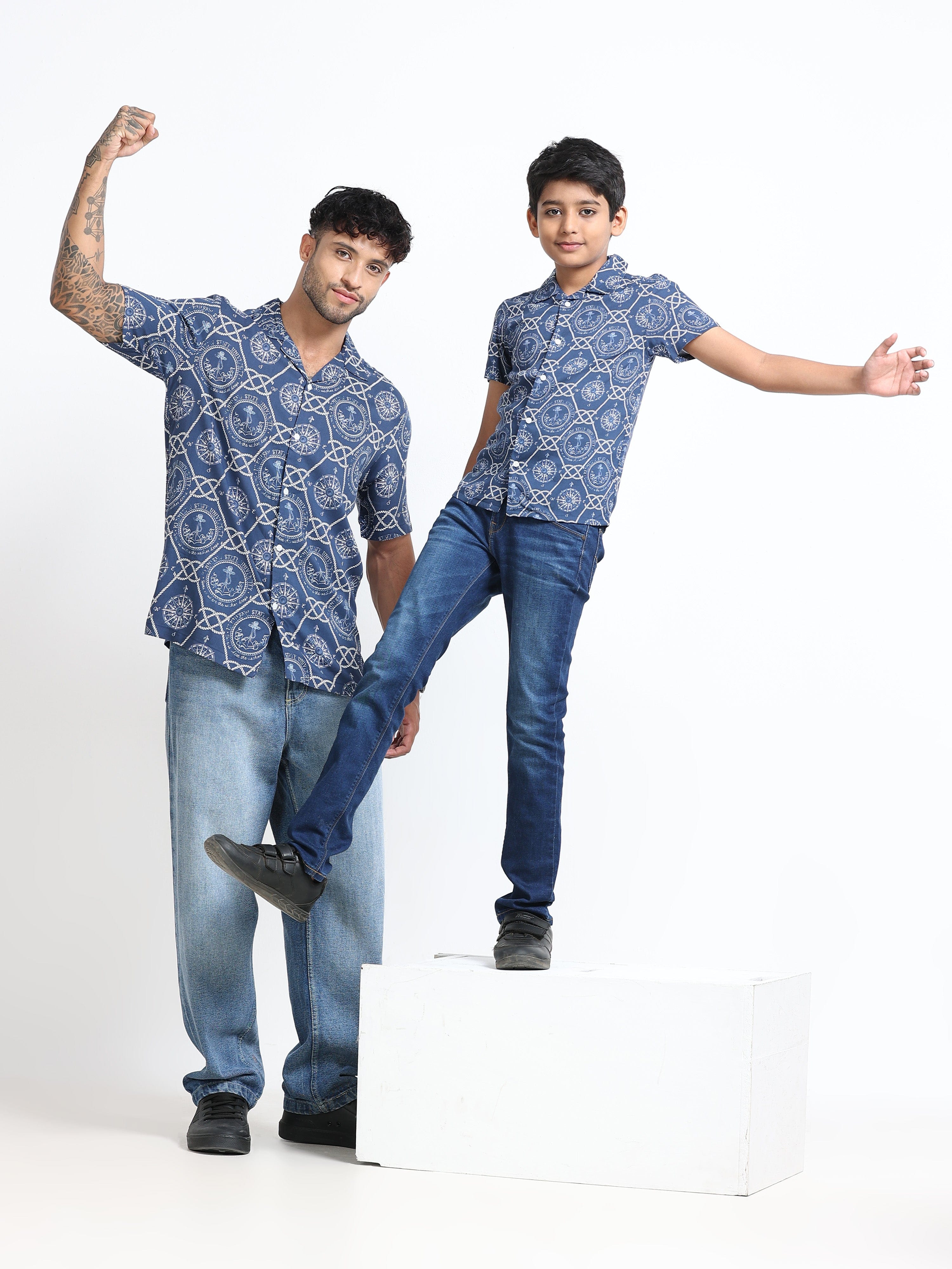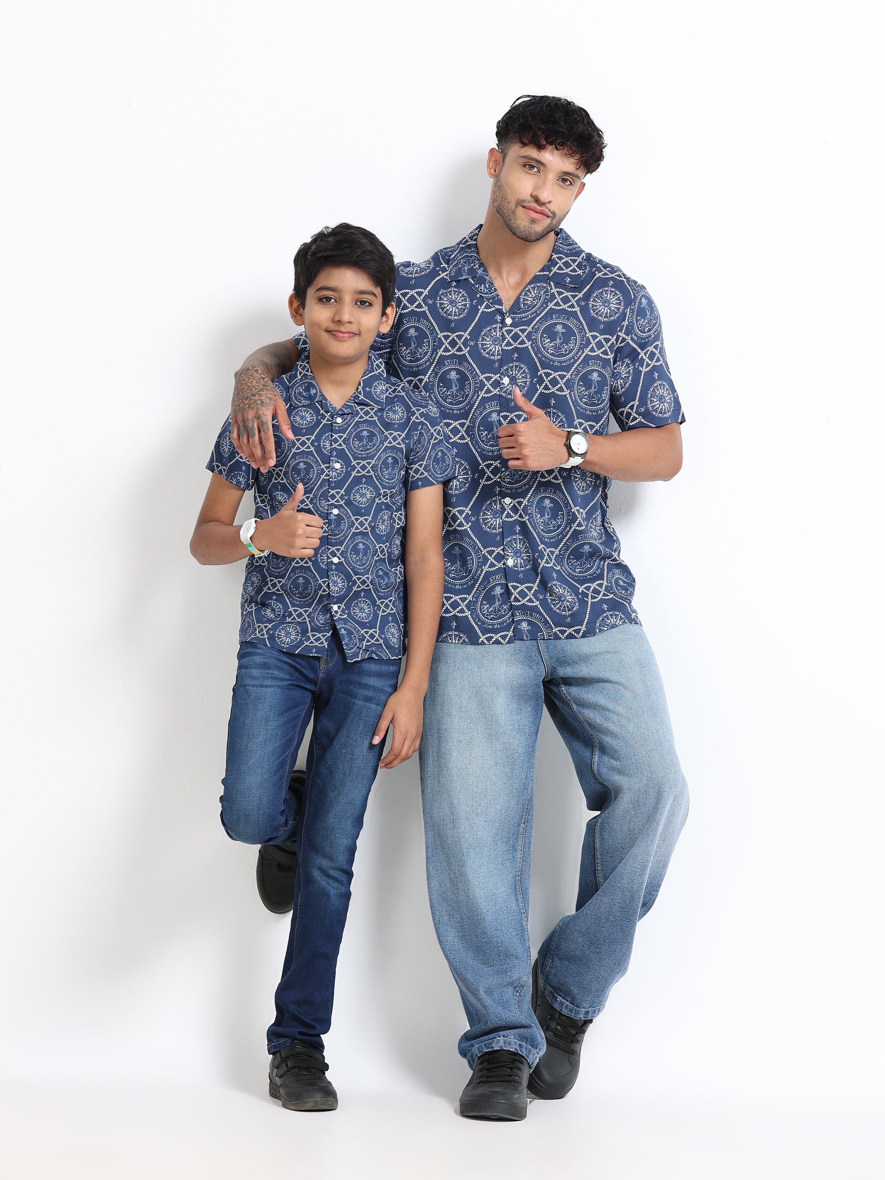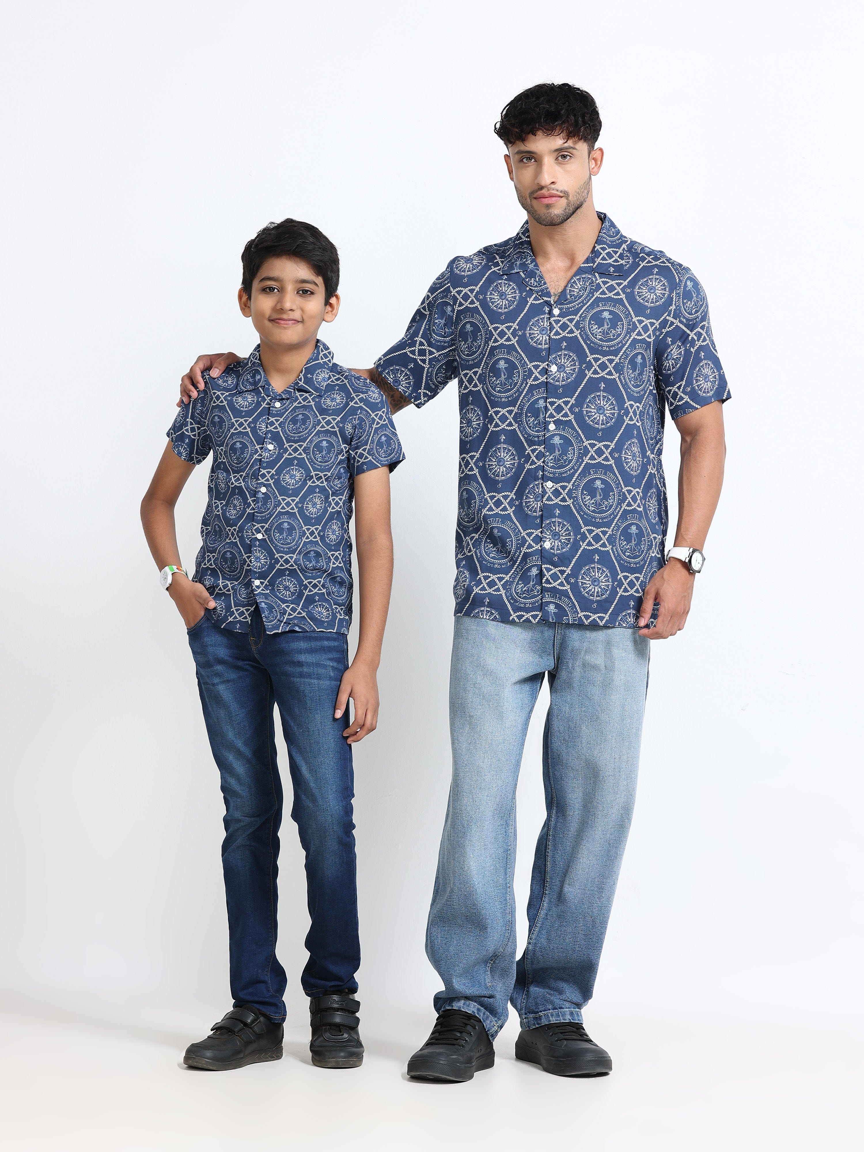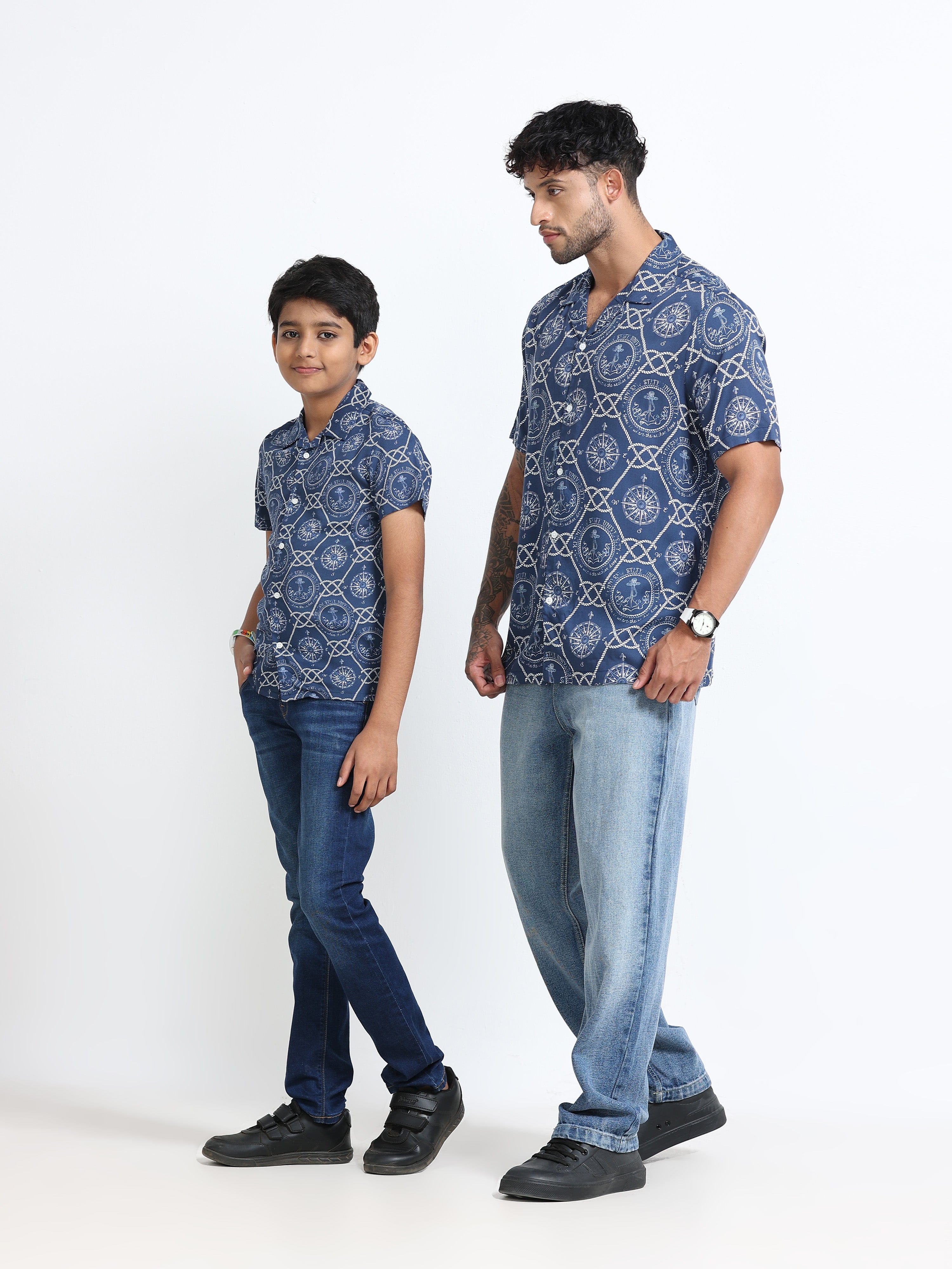 Dad & Son Maritime Nautical Printed Twinning Shirt Aegean Blue
