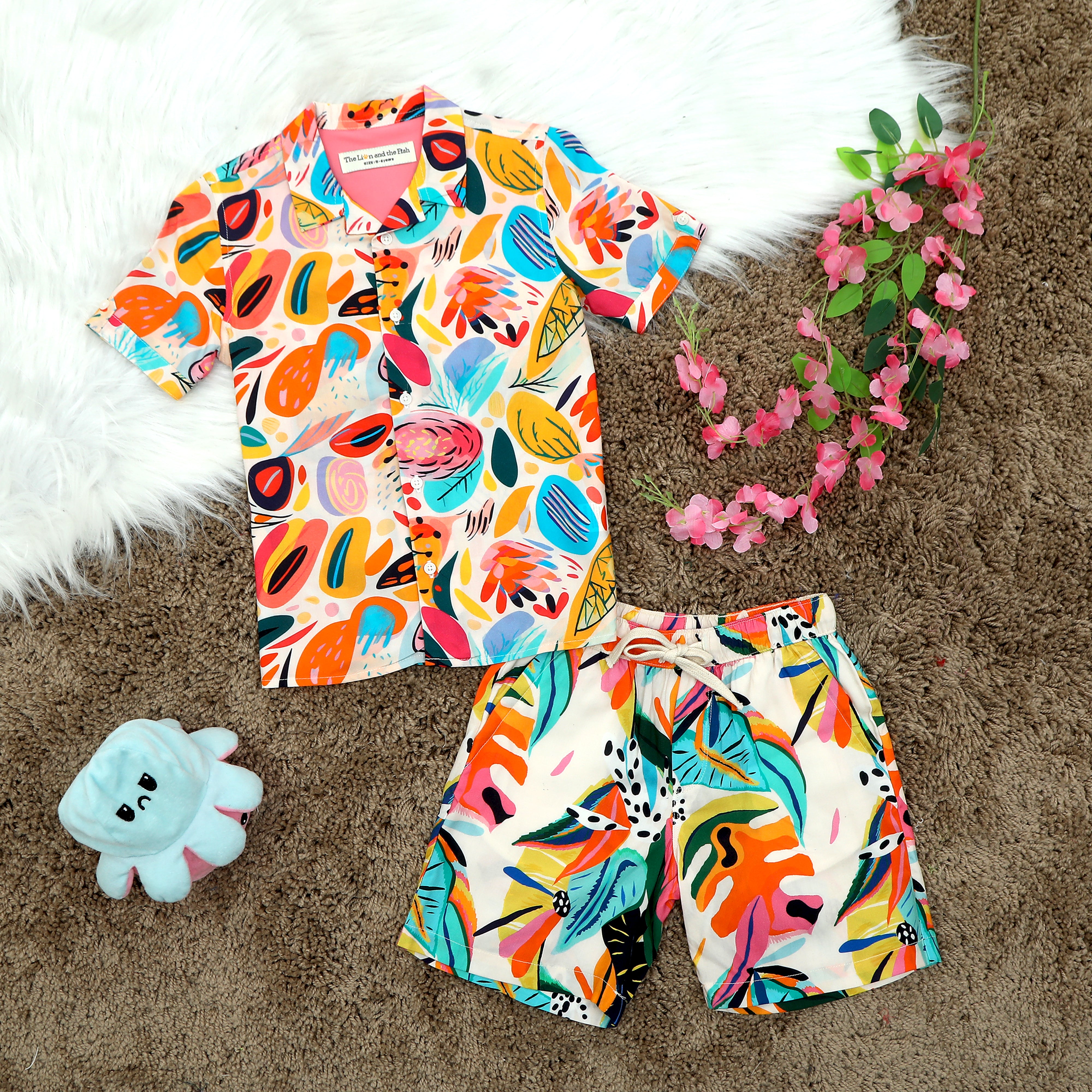 Boys Fruit Print Shirt & Short Co-Ord Set Multi colour