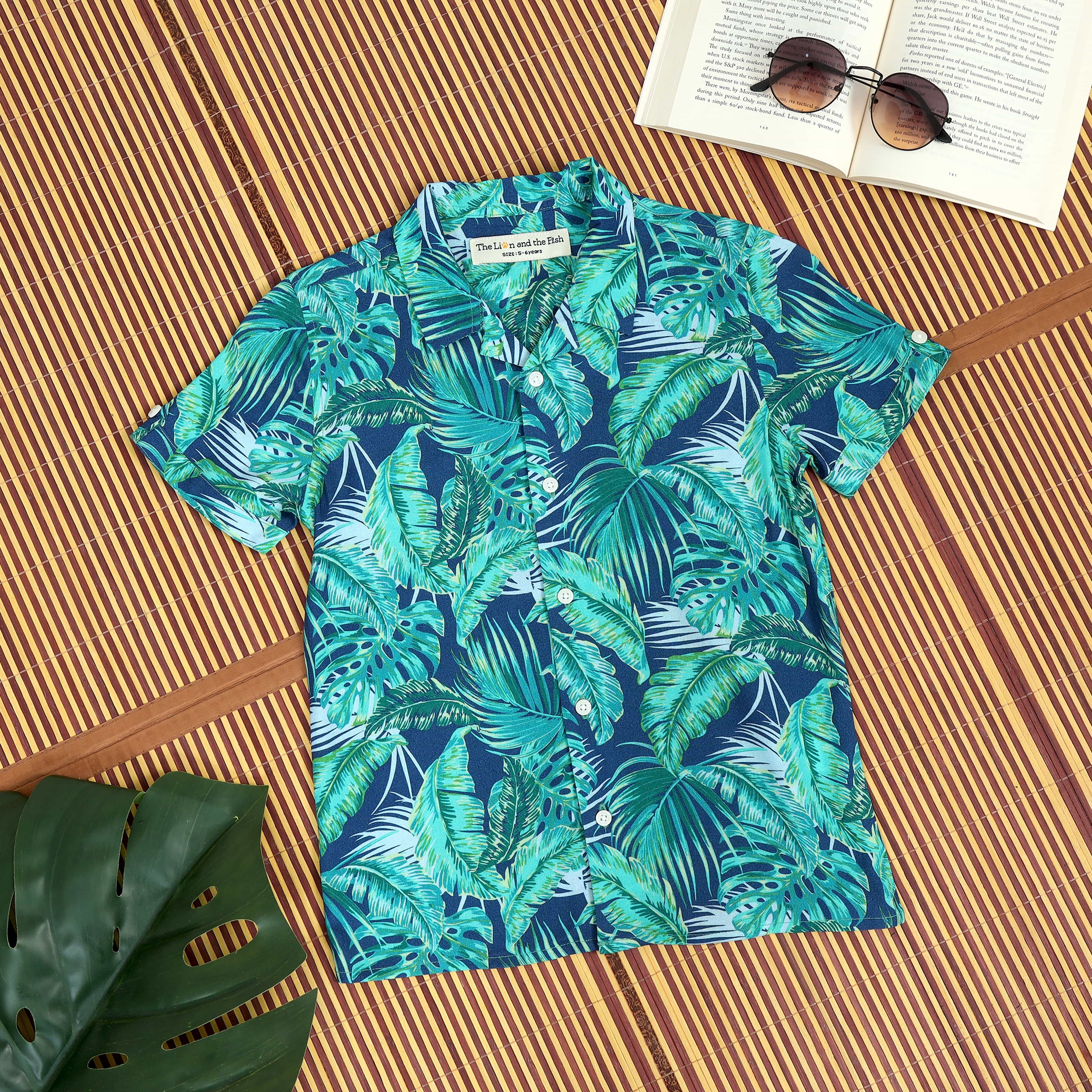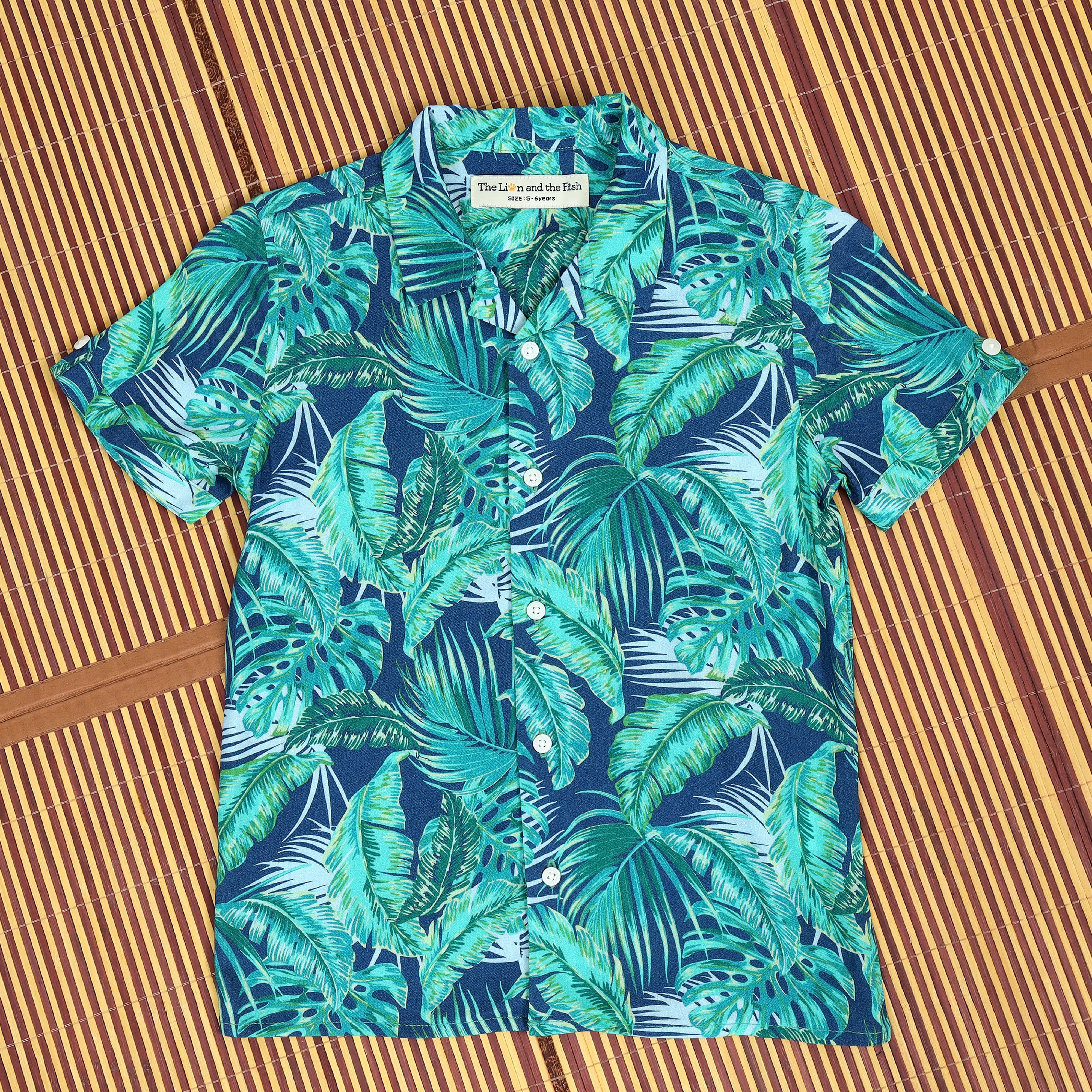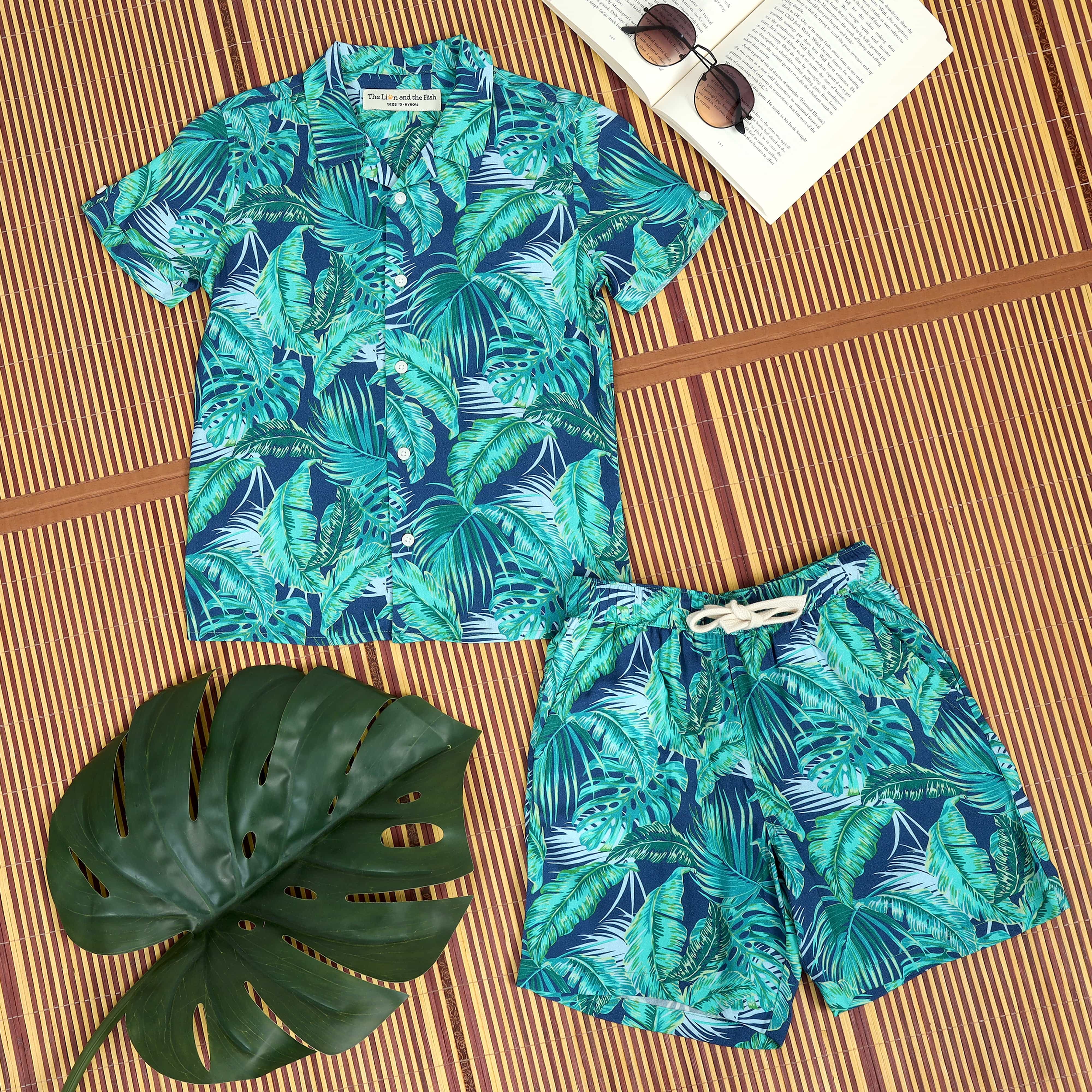 Boys Hawaiian Tropical Printed Shirt & Short Co-Ord Set Blue