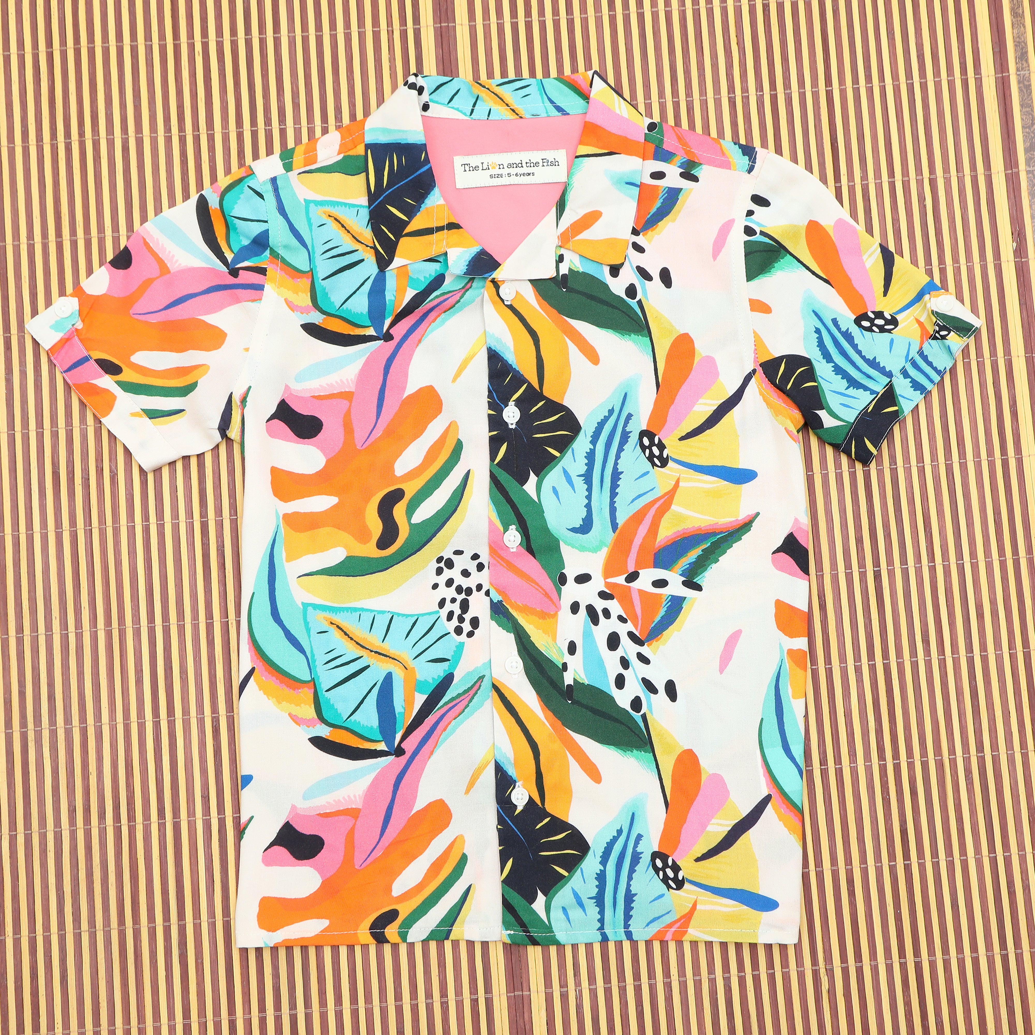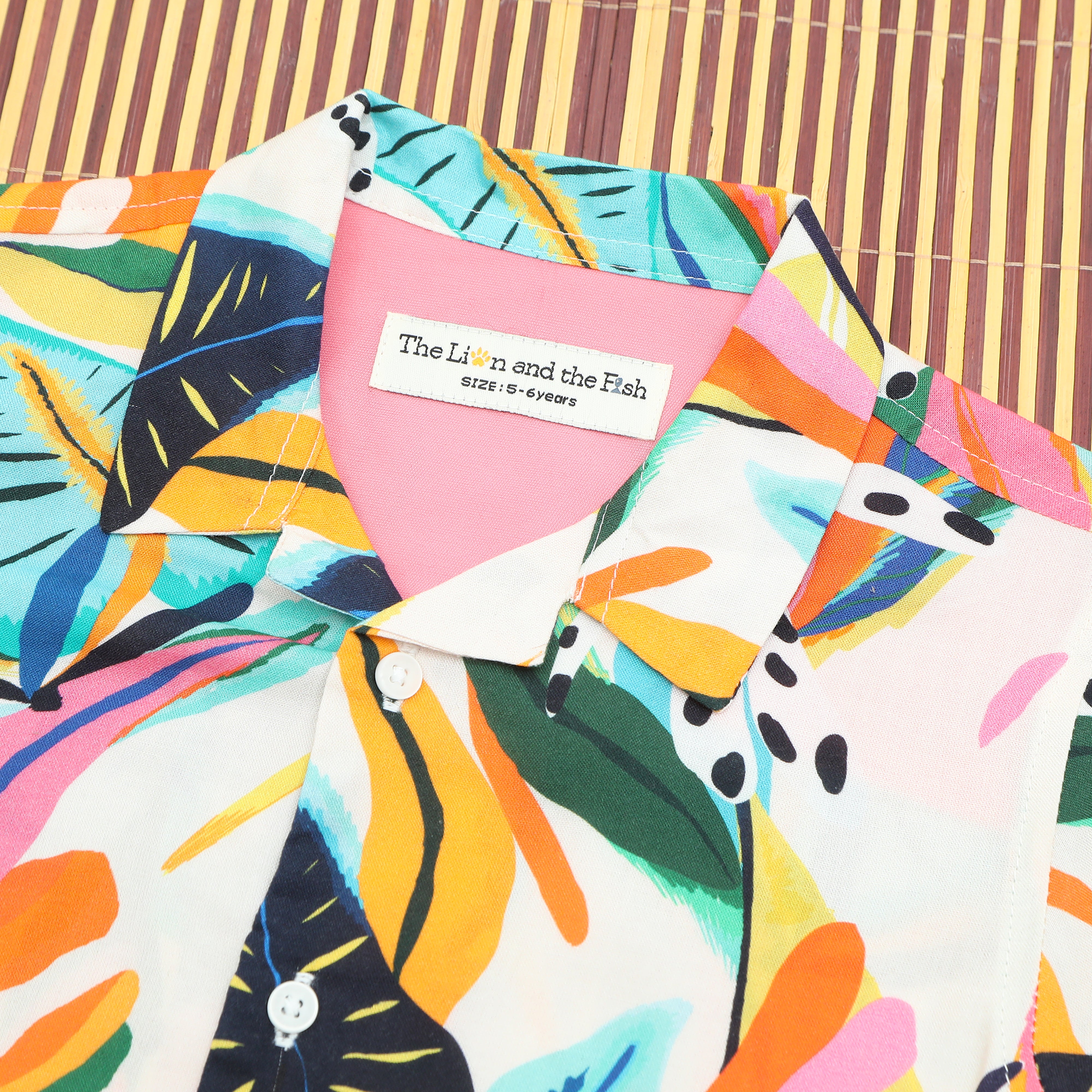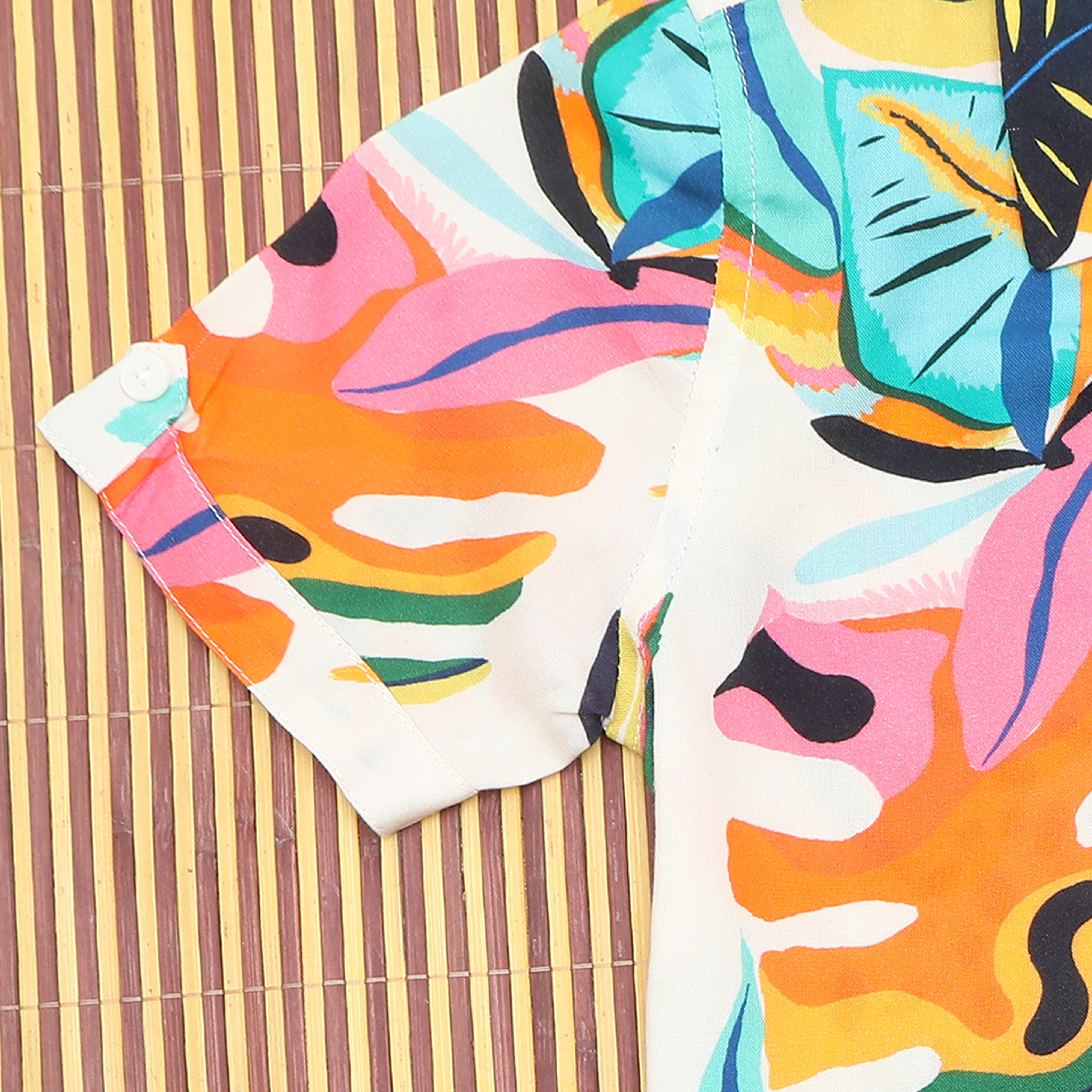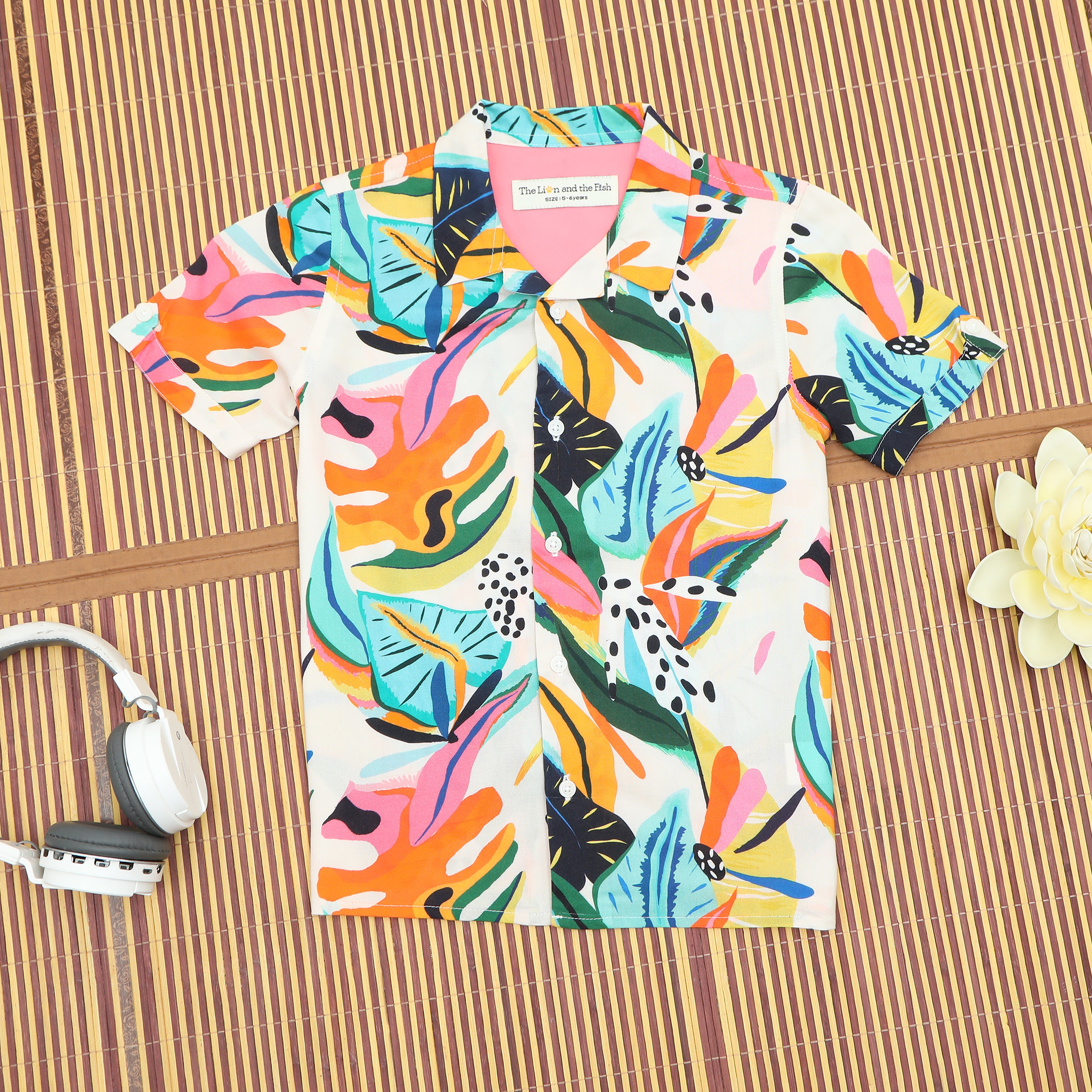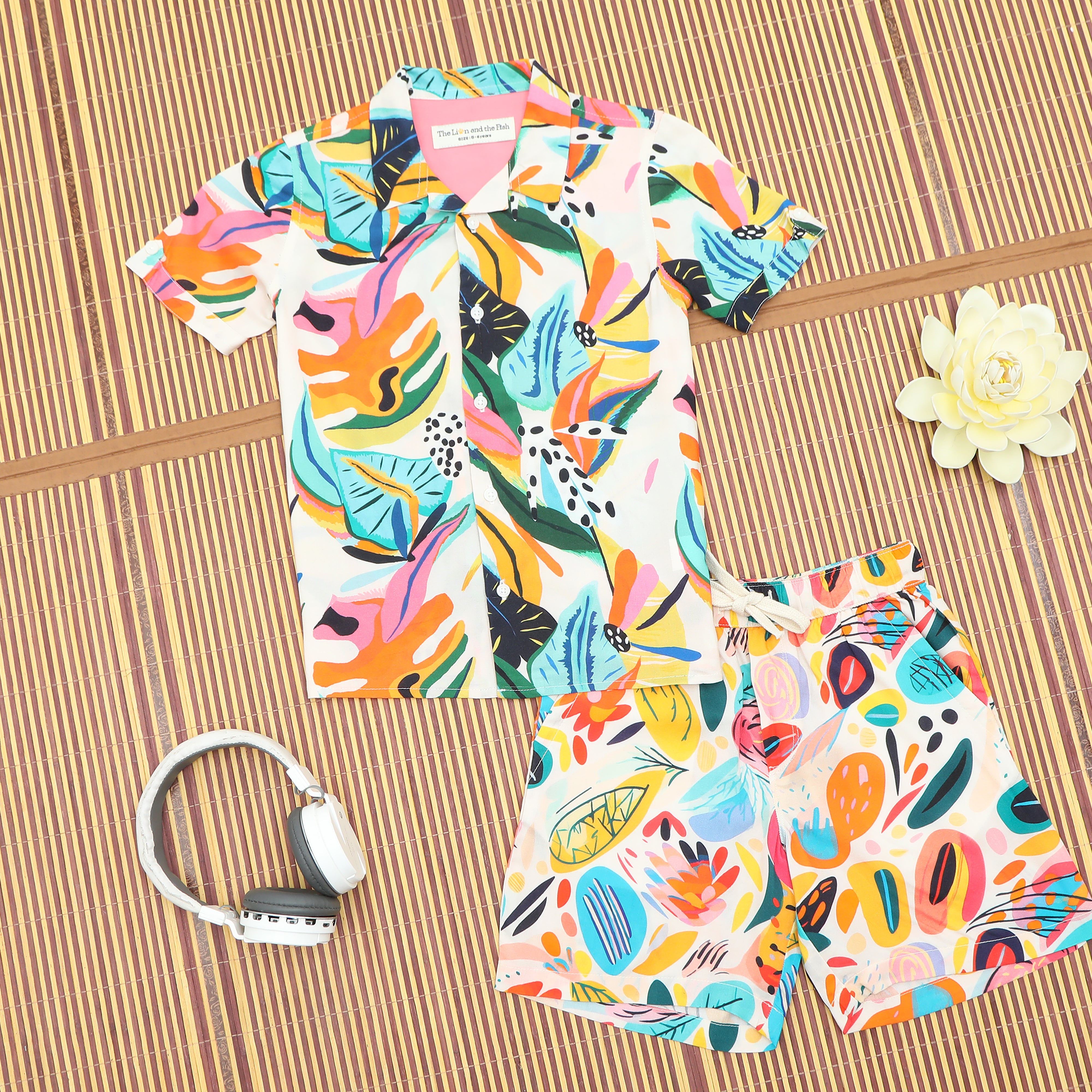 Boys Modern Leaf Print Shirt & Short Co-Ord Set Multi Colour