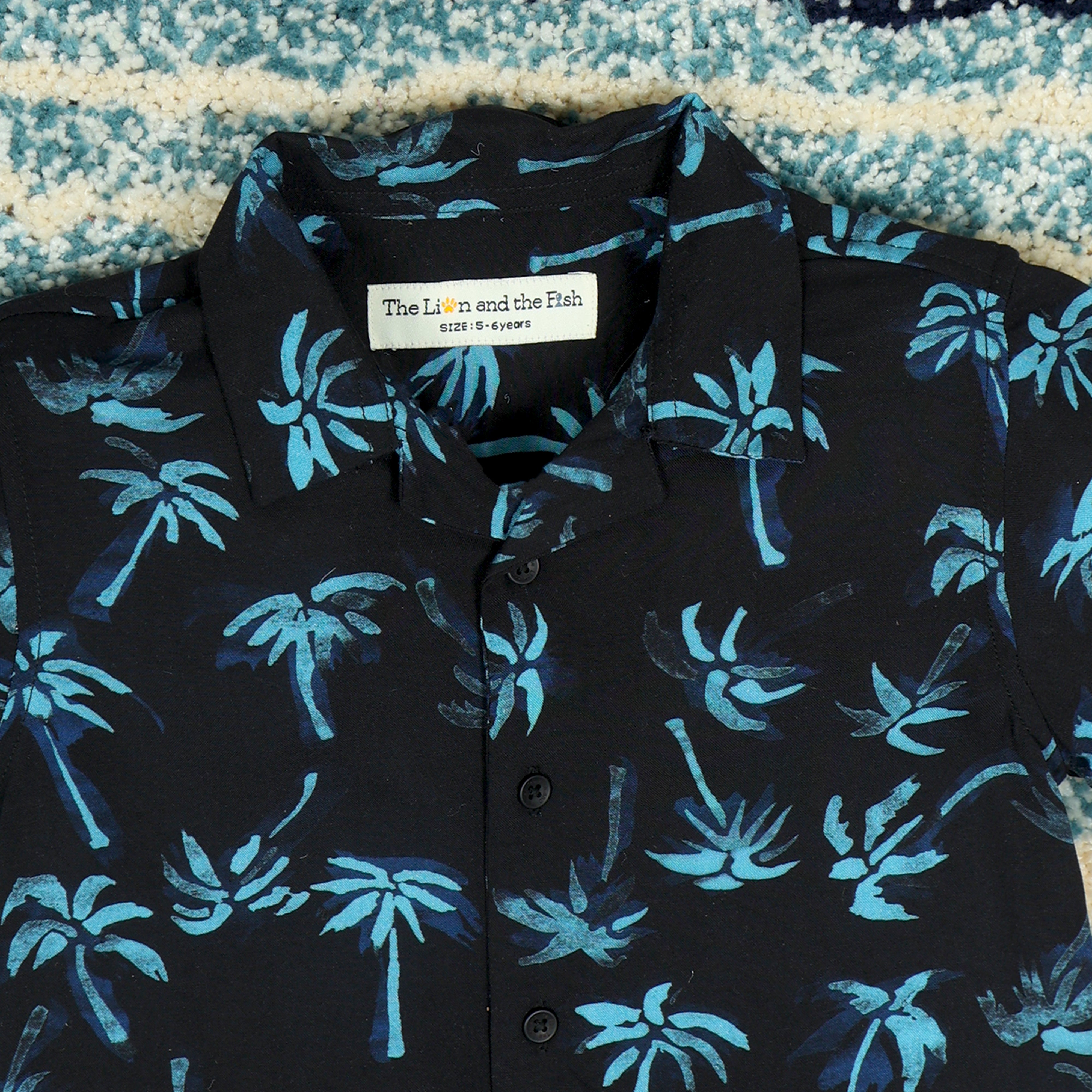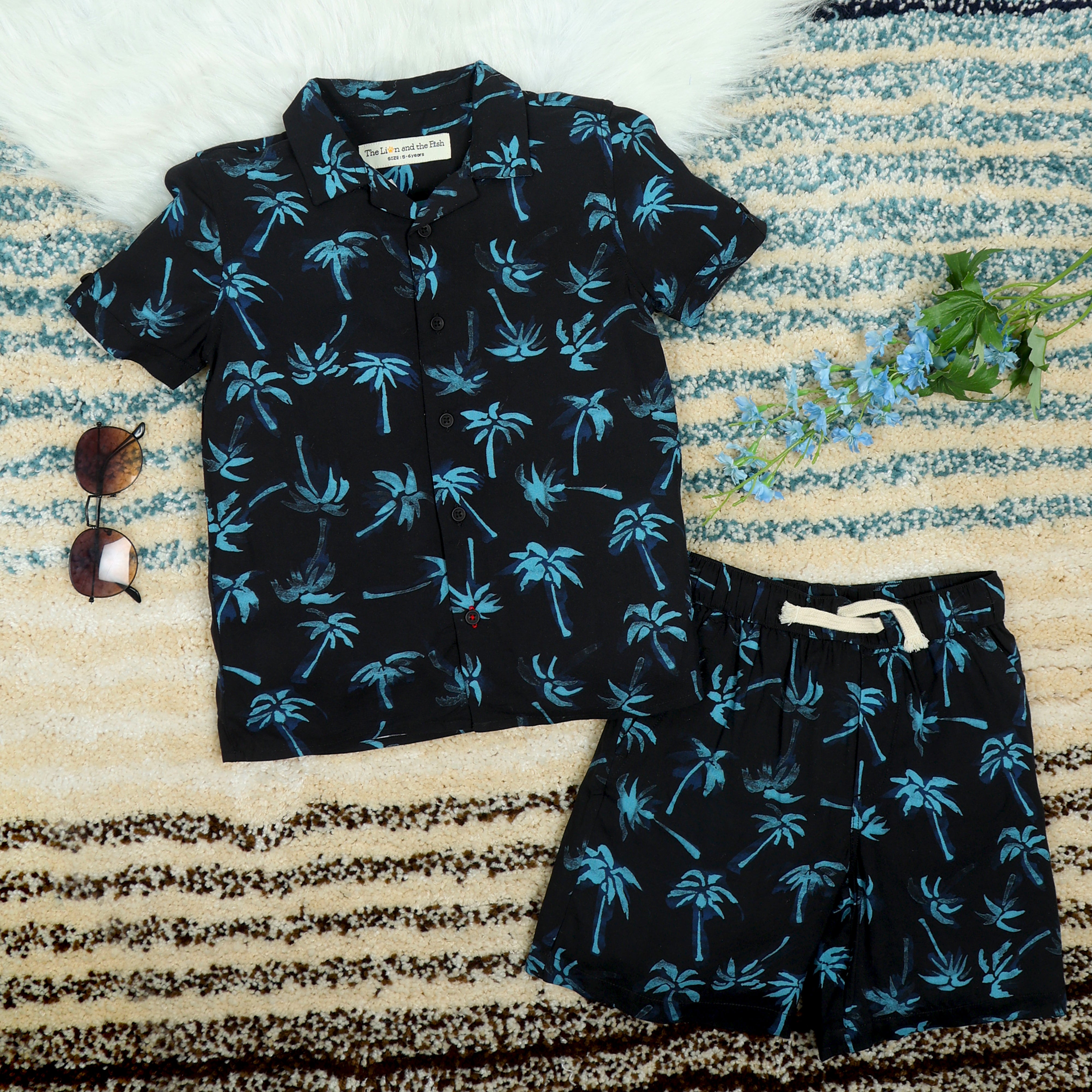 Boys Electric Palm Tree Printed Shirt & Short Co-Ord Set Midnight Blue
