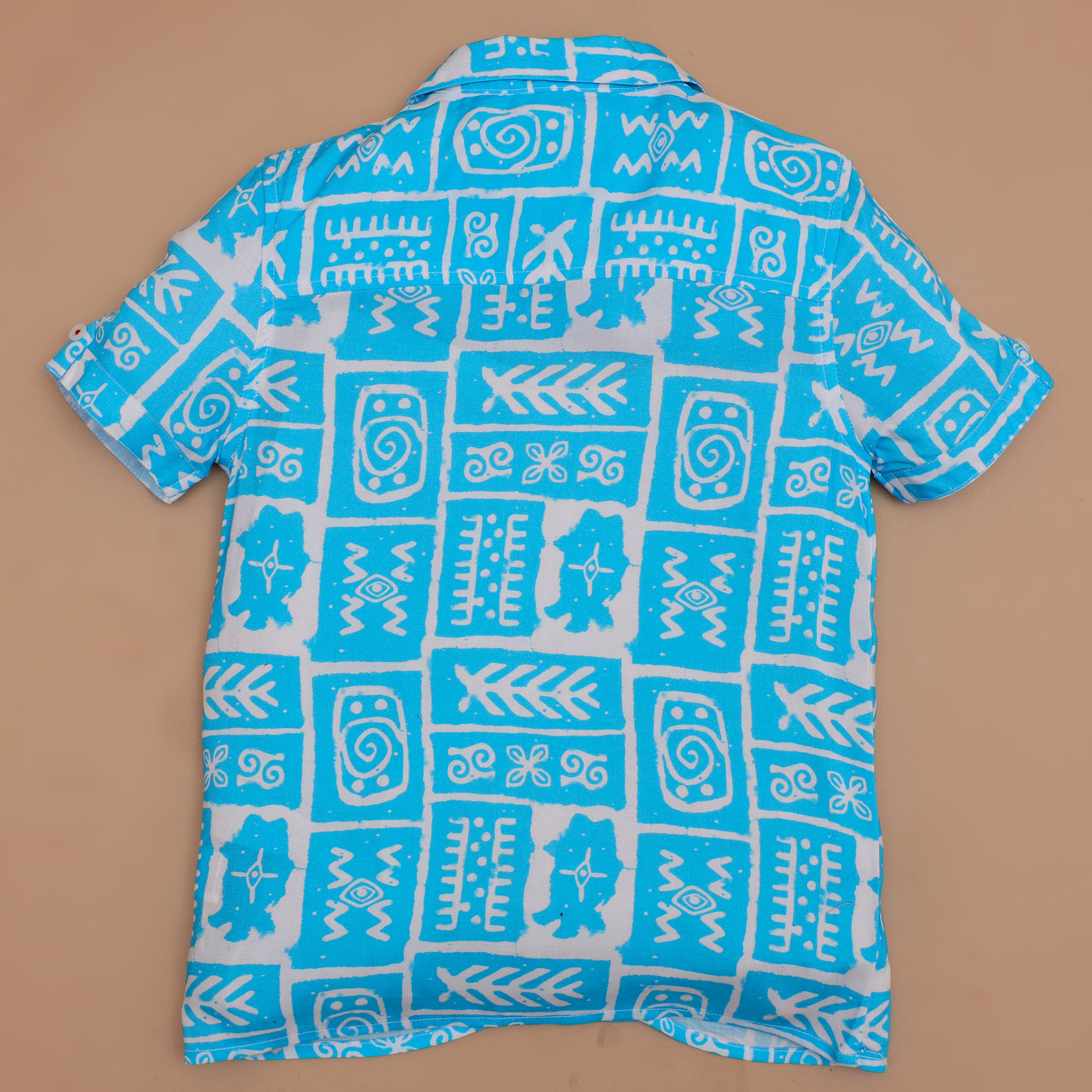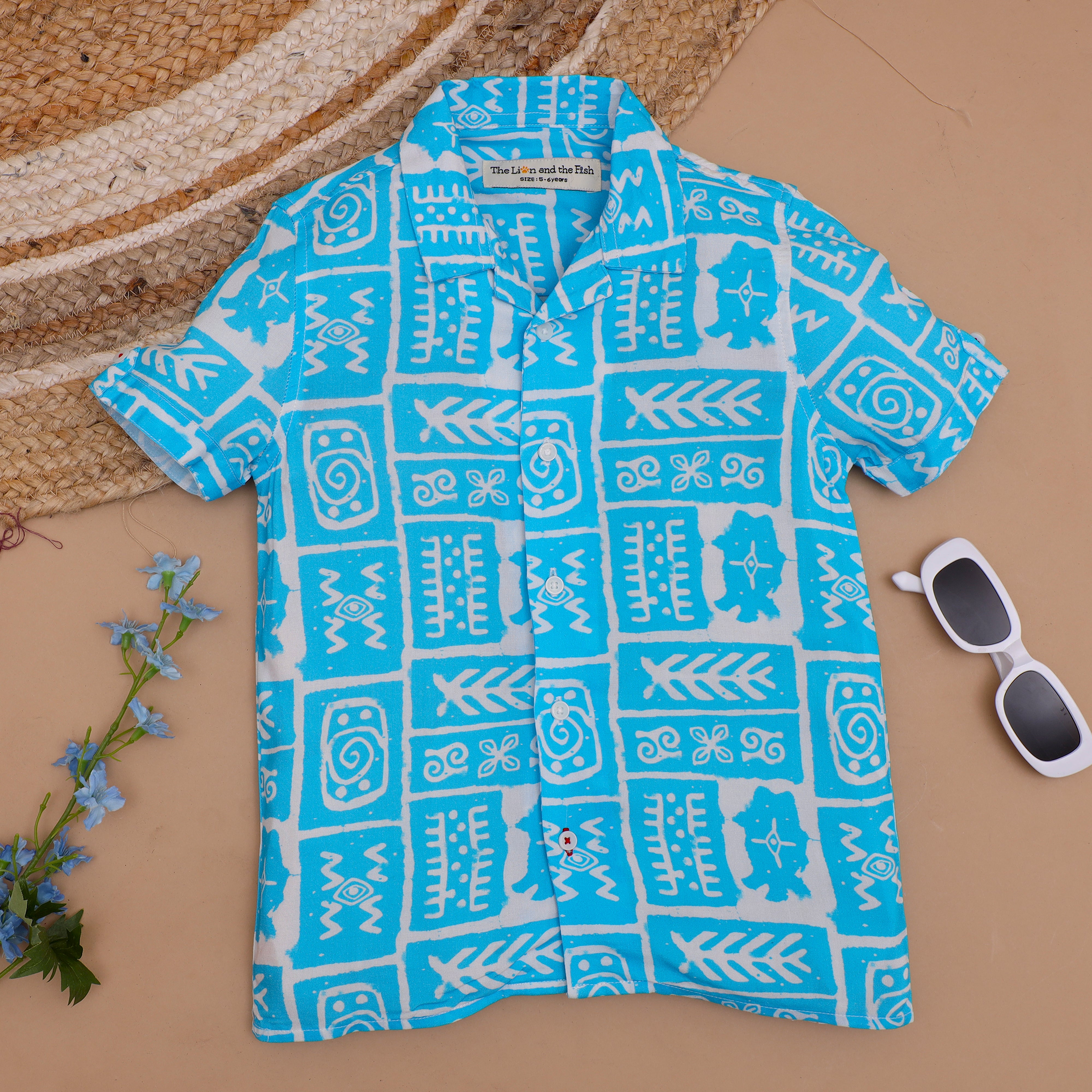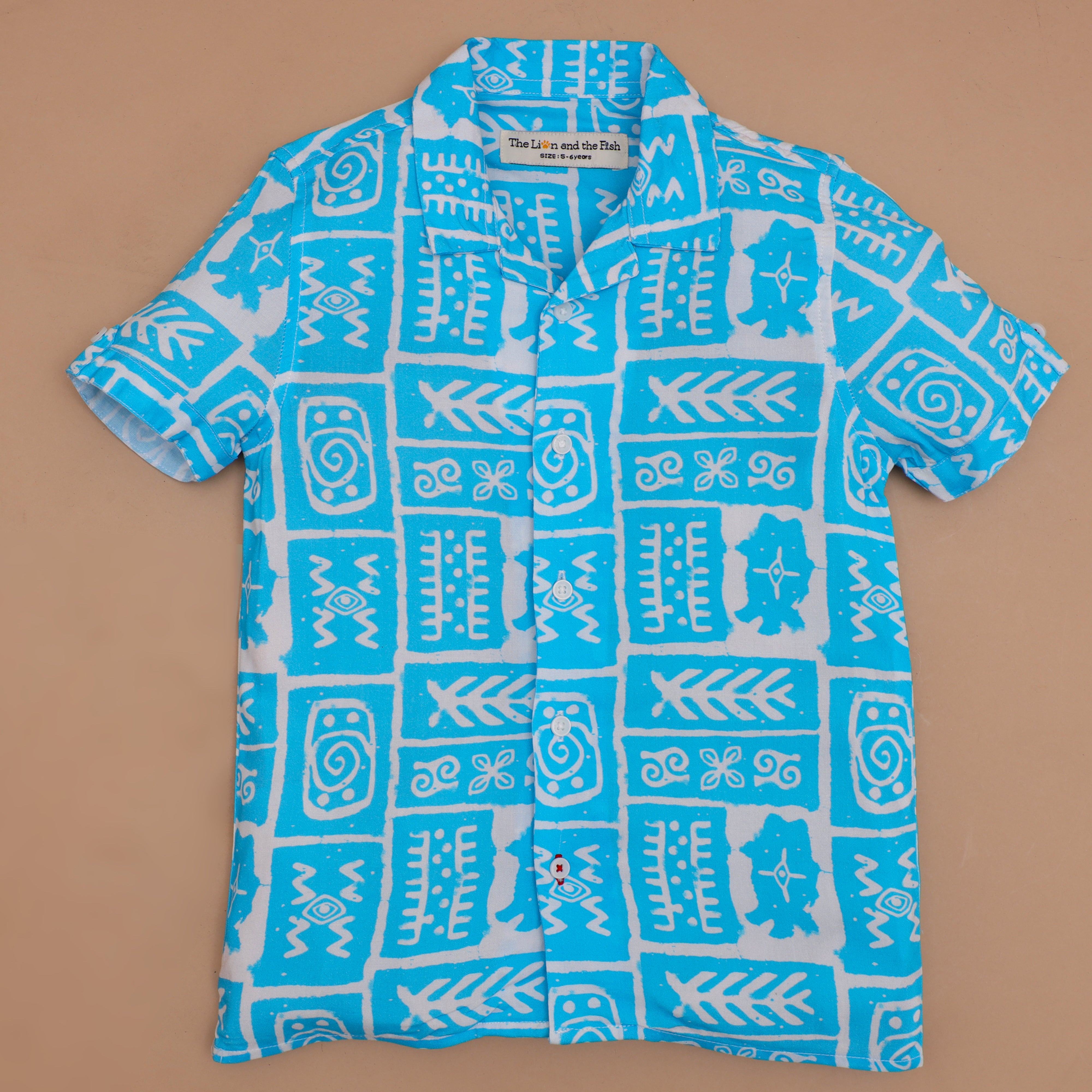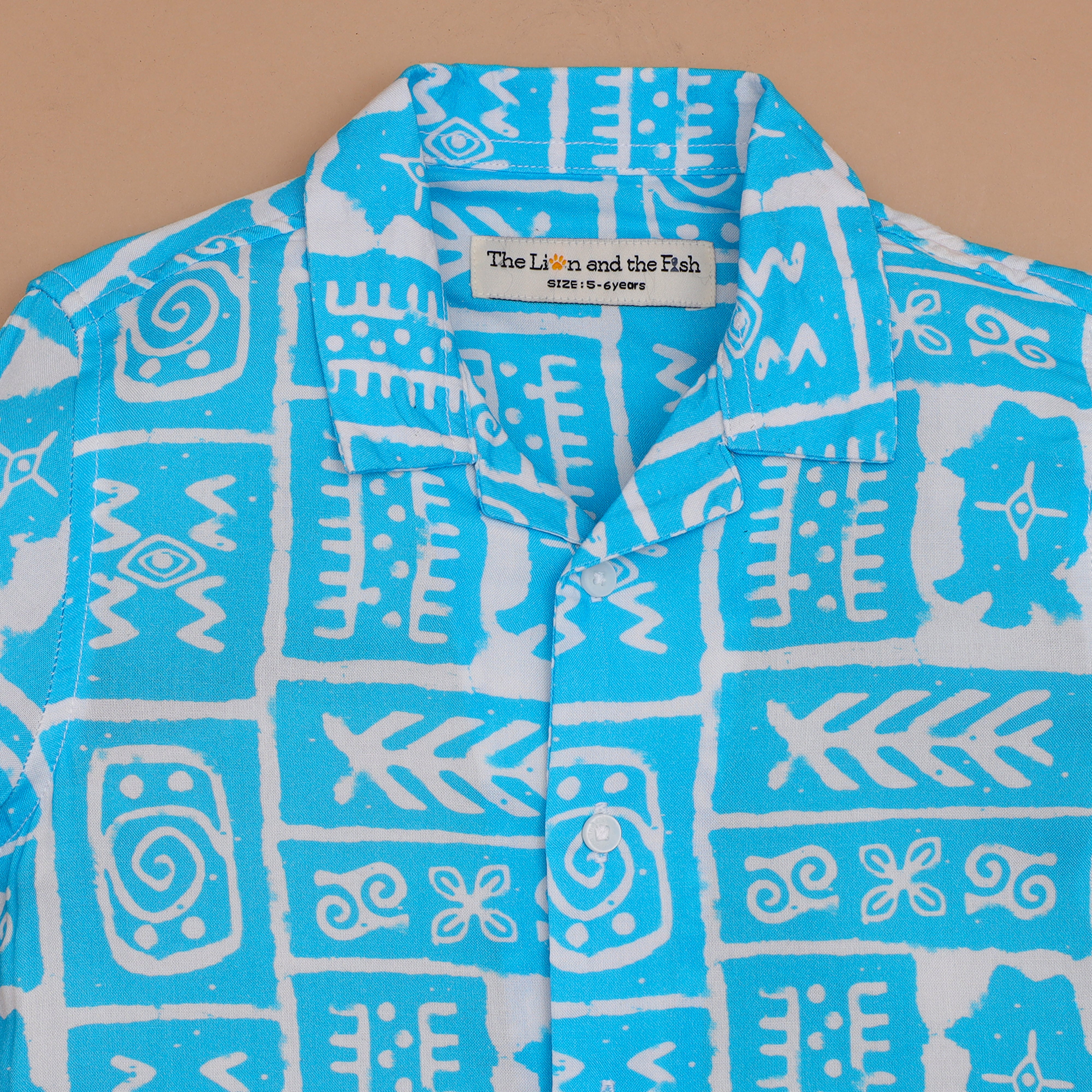 Boys Aztec Printed Shirt & Short Co-Ord Set Cornflower Blue