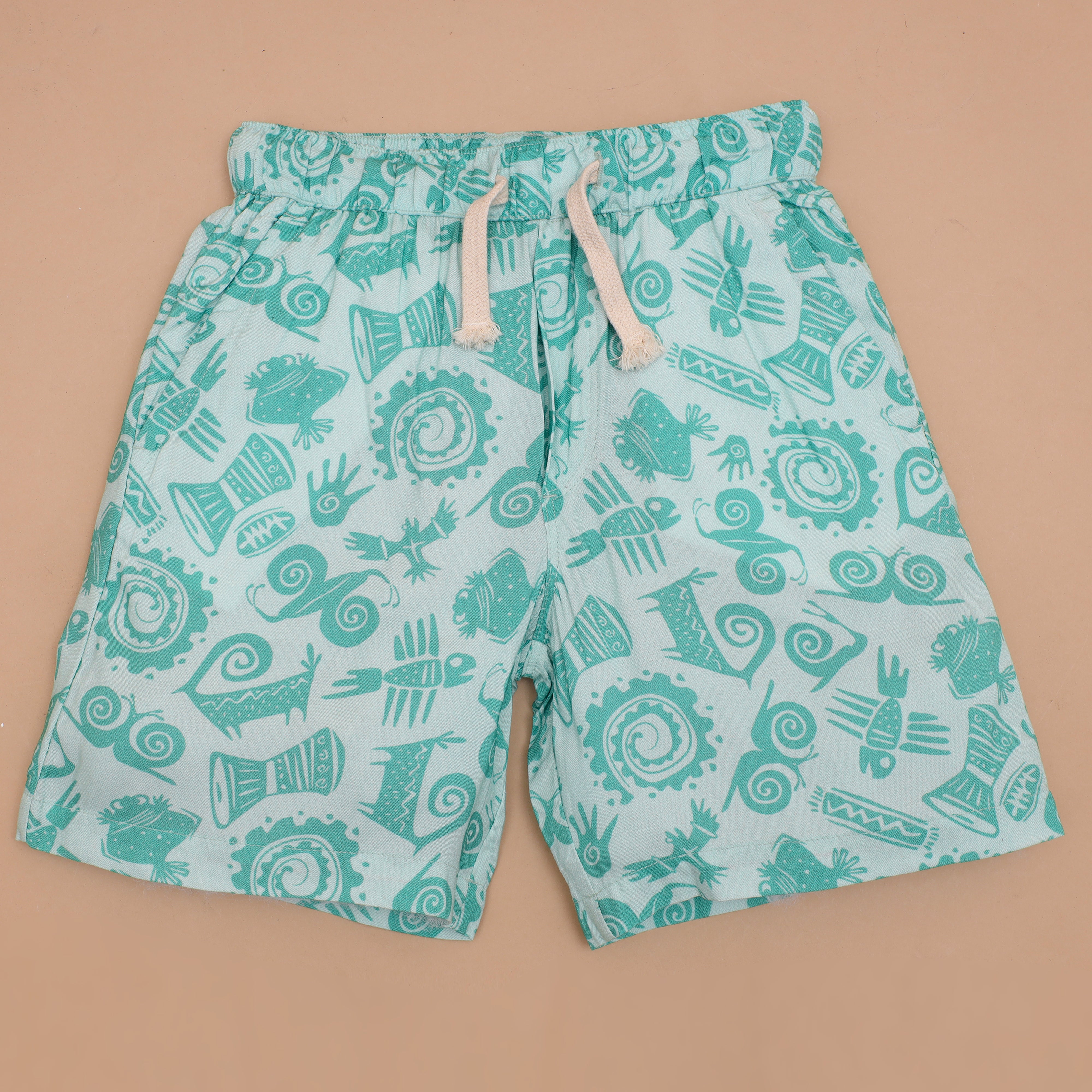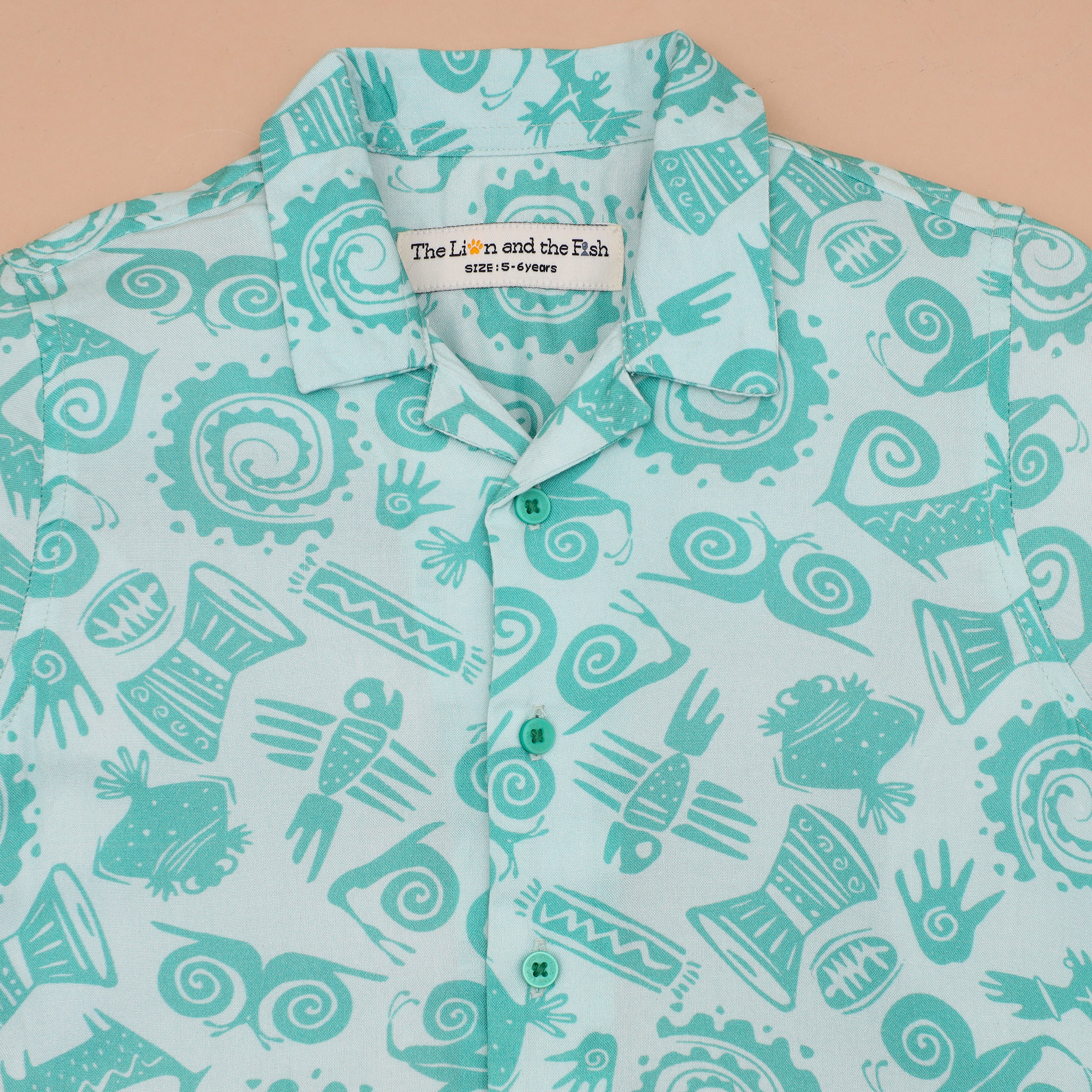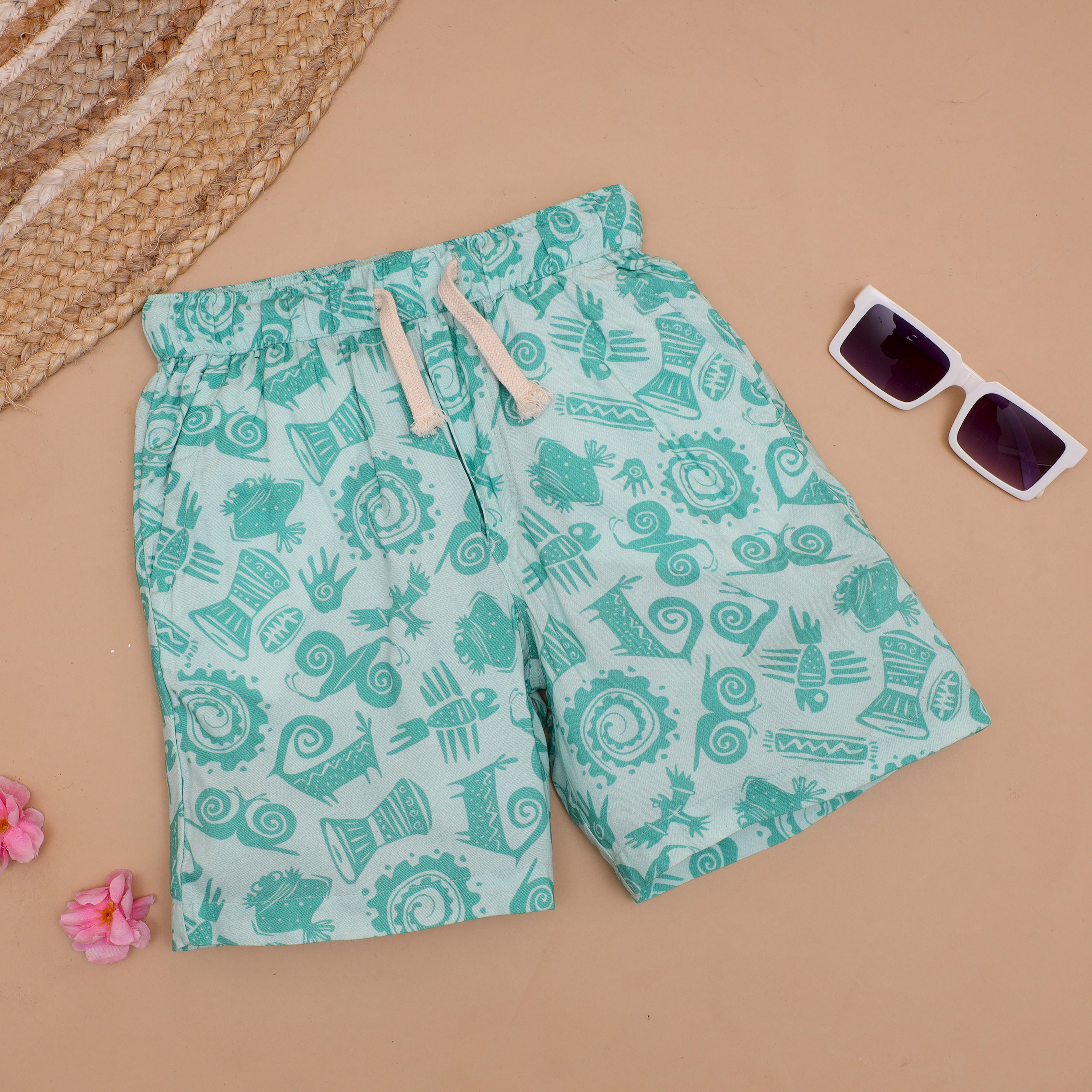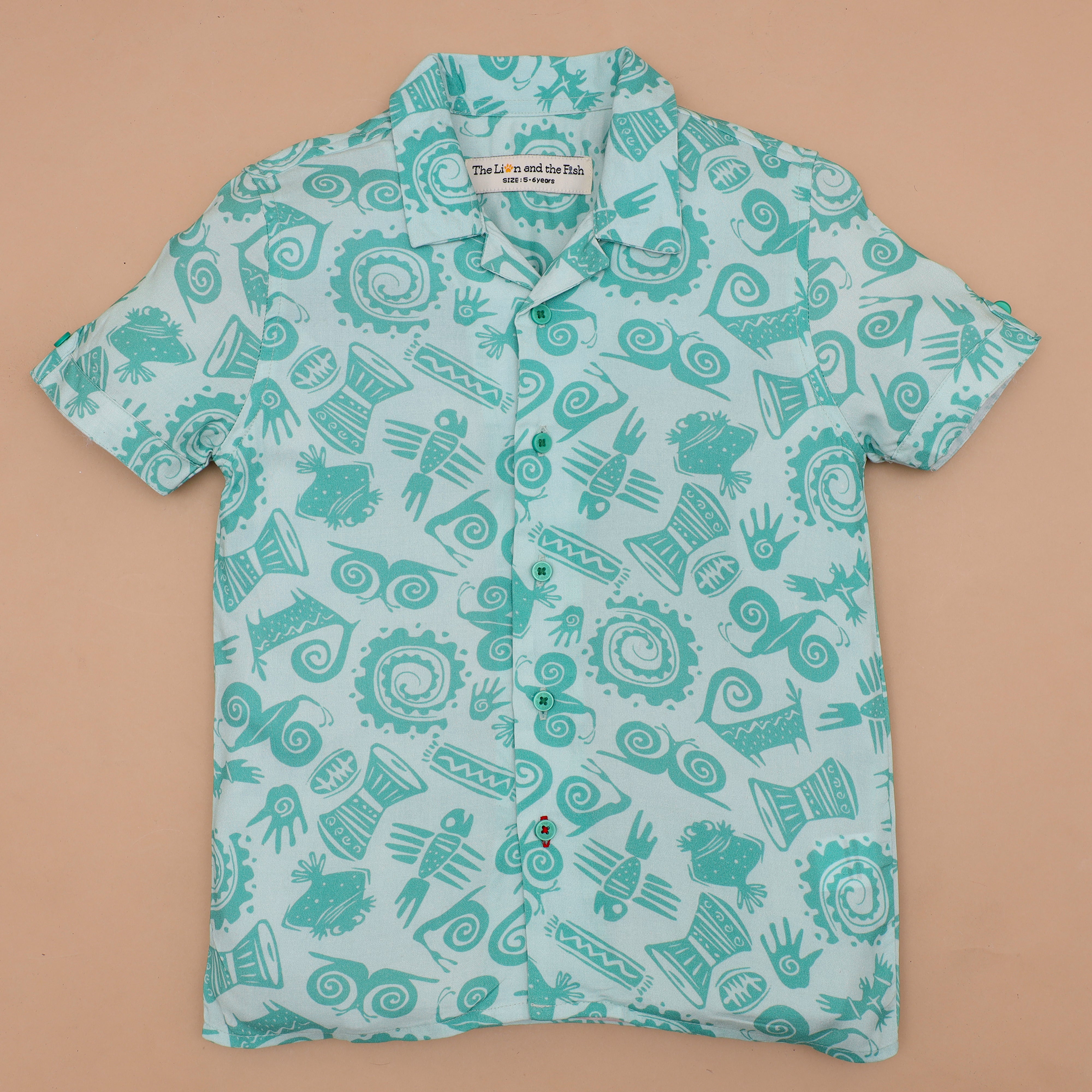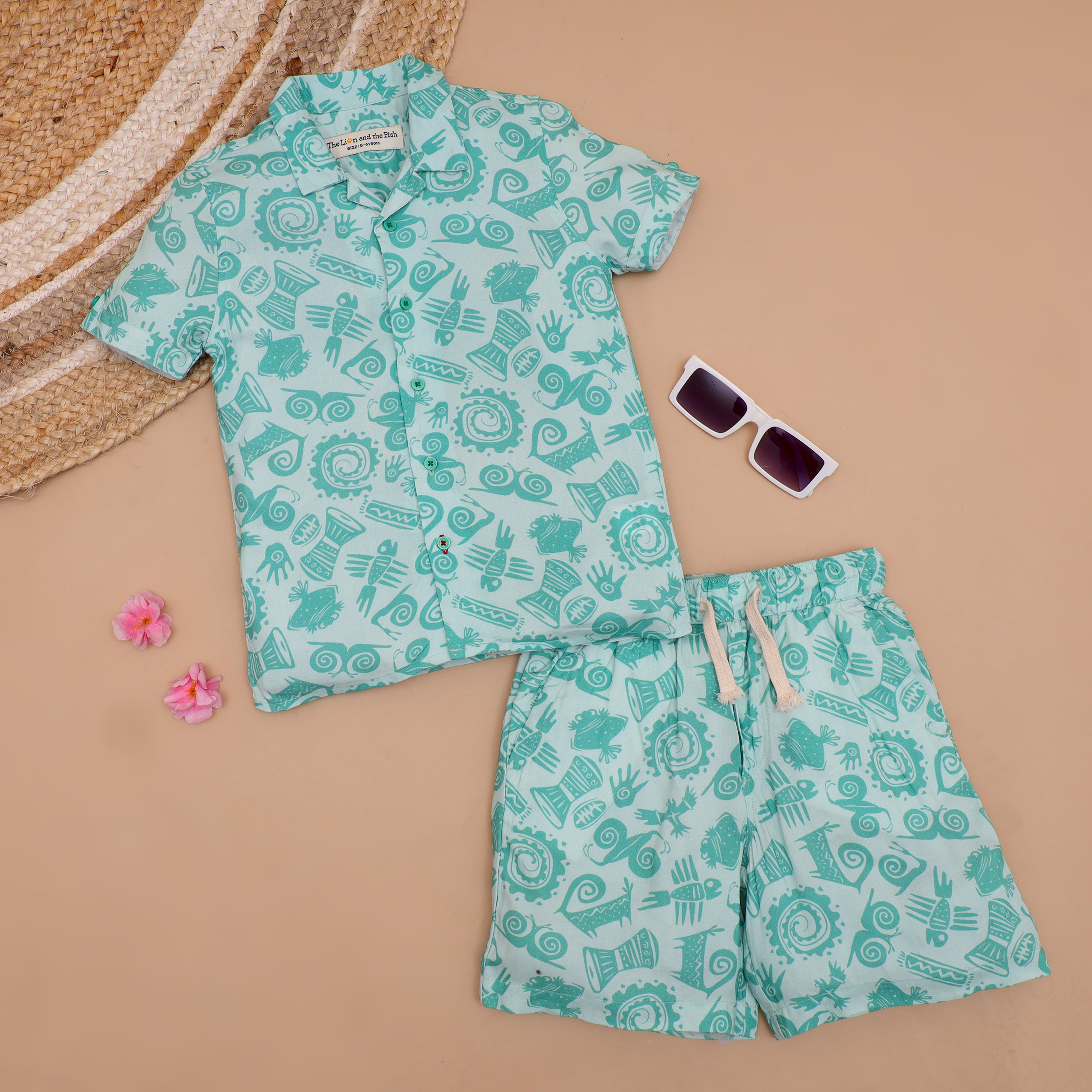 Boys African Printed Shirt & Short Co-Ord Set Jade Green