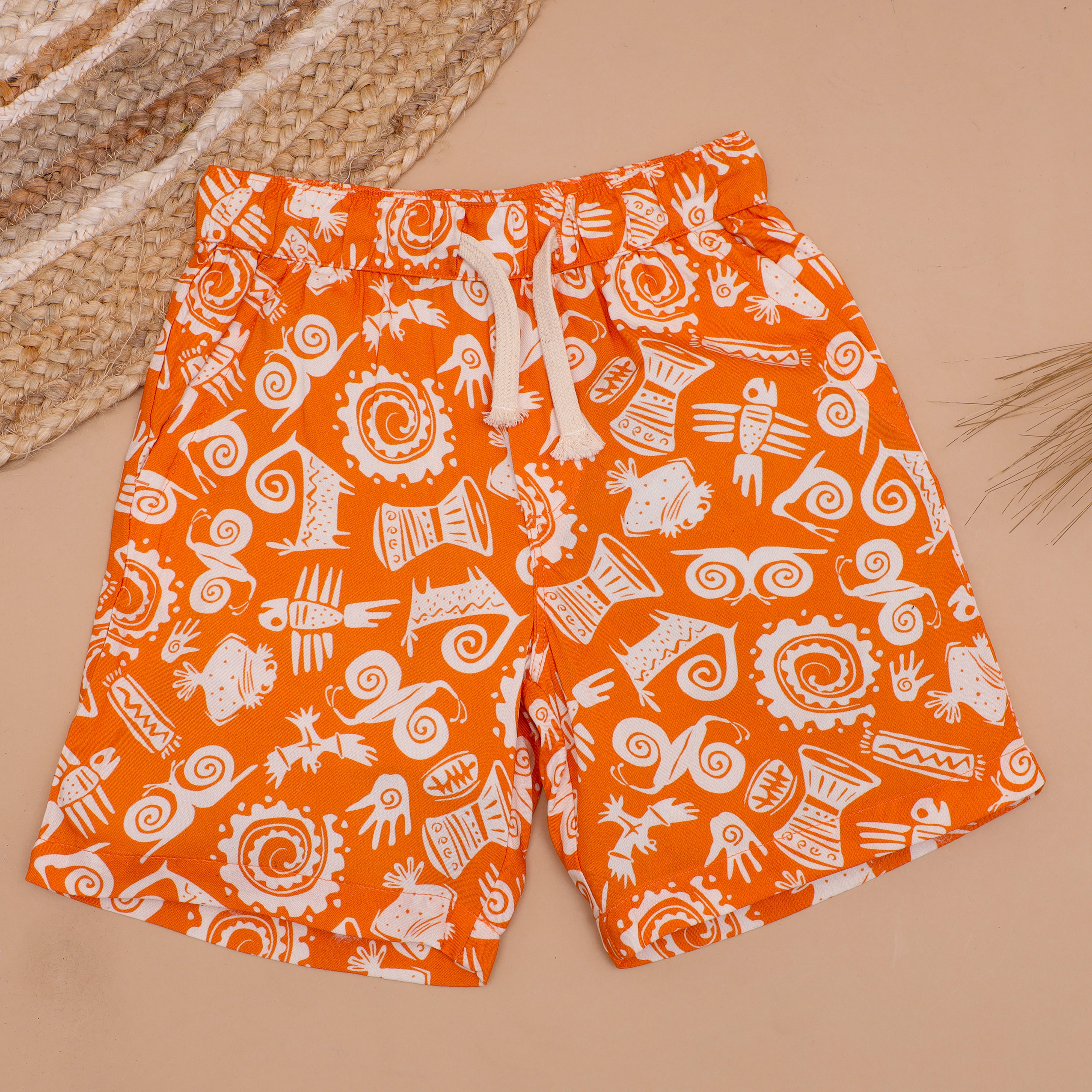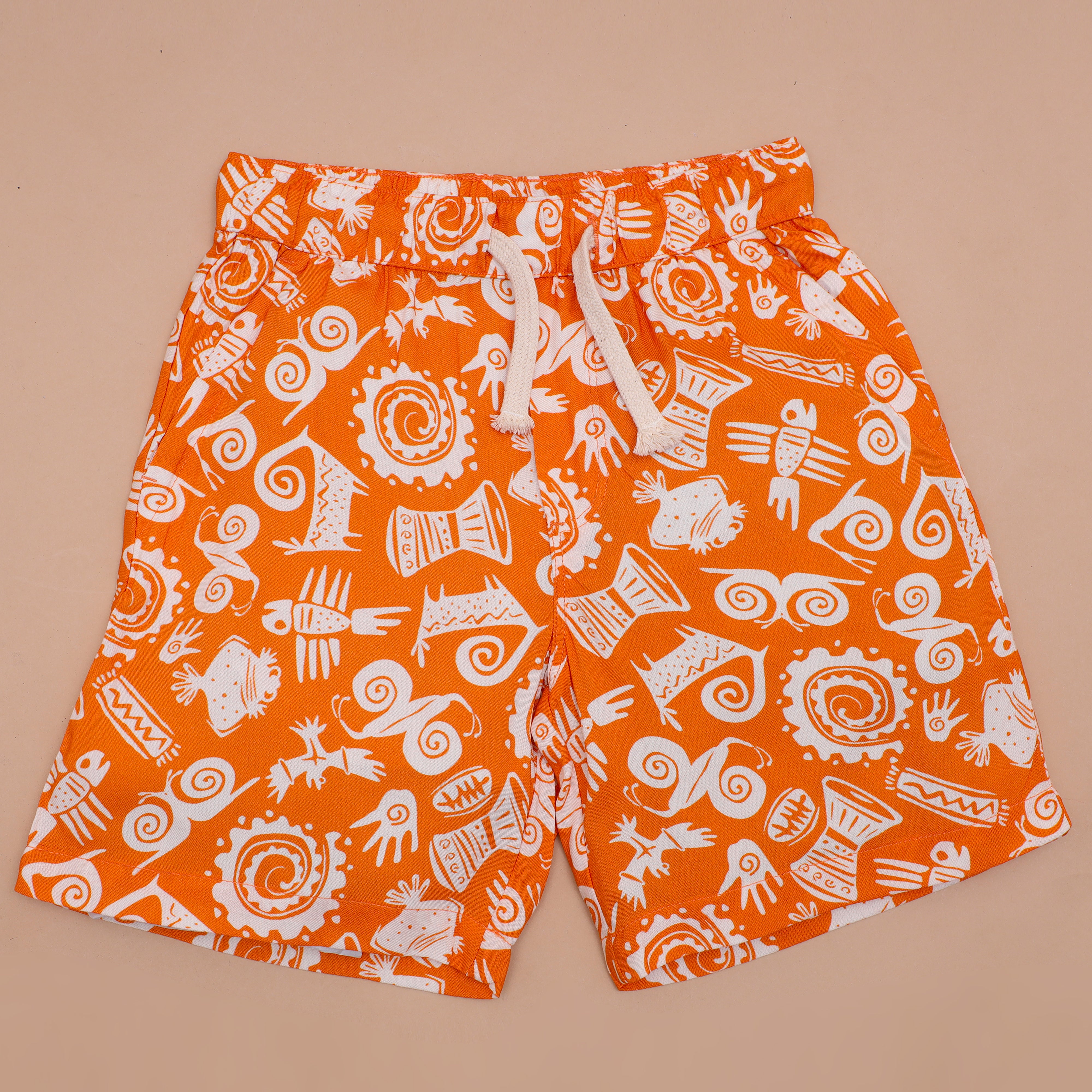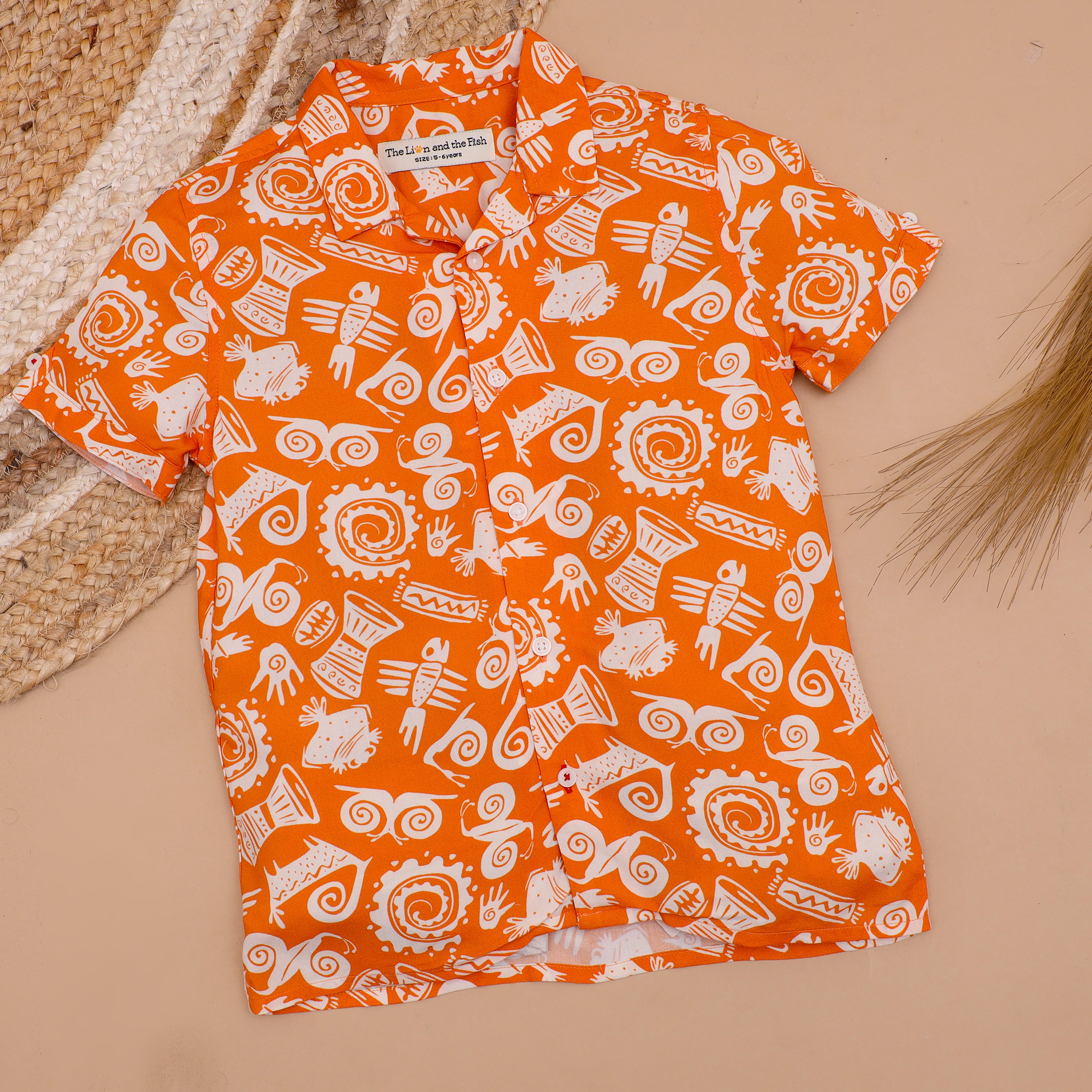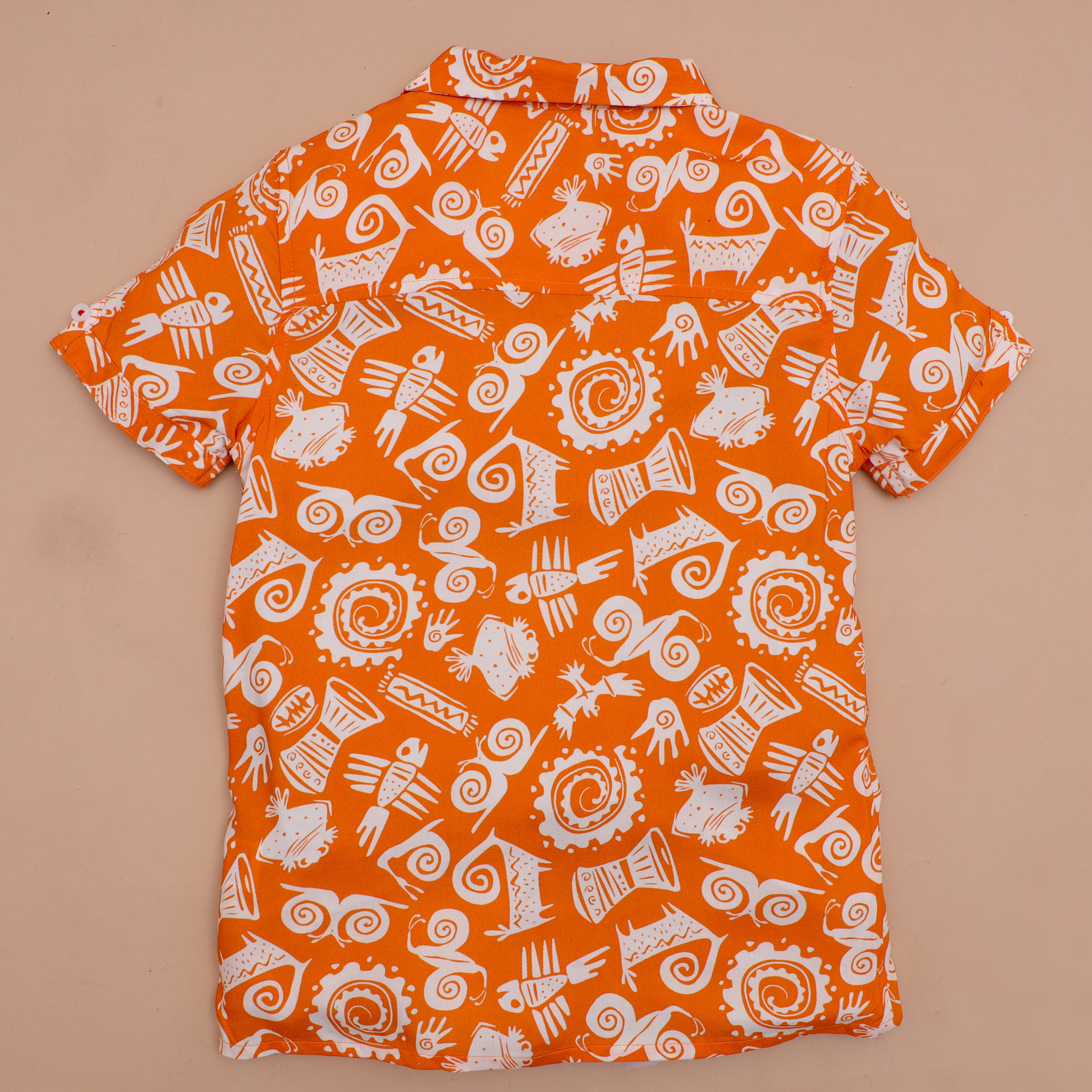 Boys African Printed Shirt & Short Co-Ord Set Princeton Orange