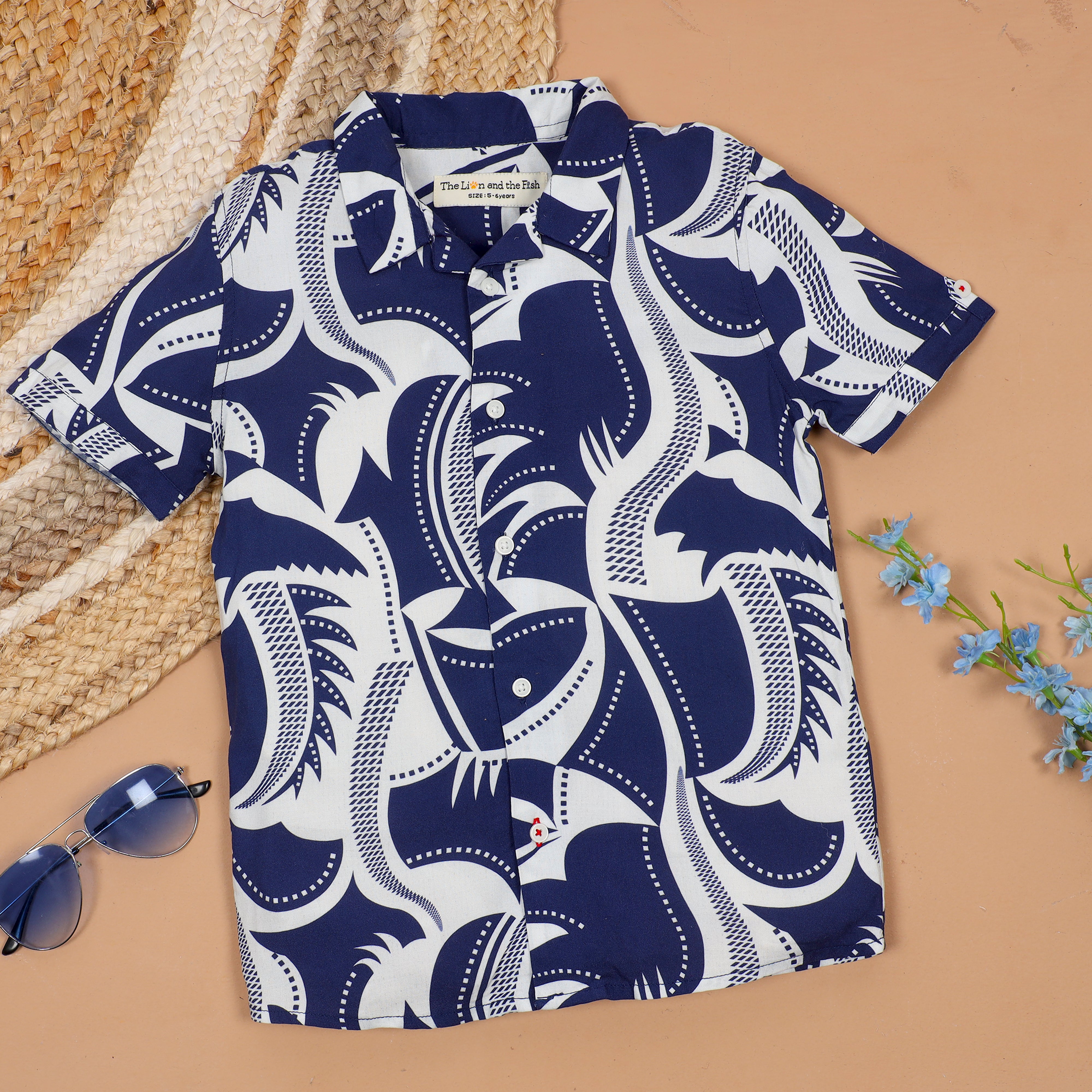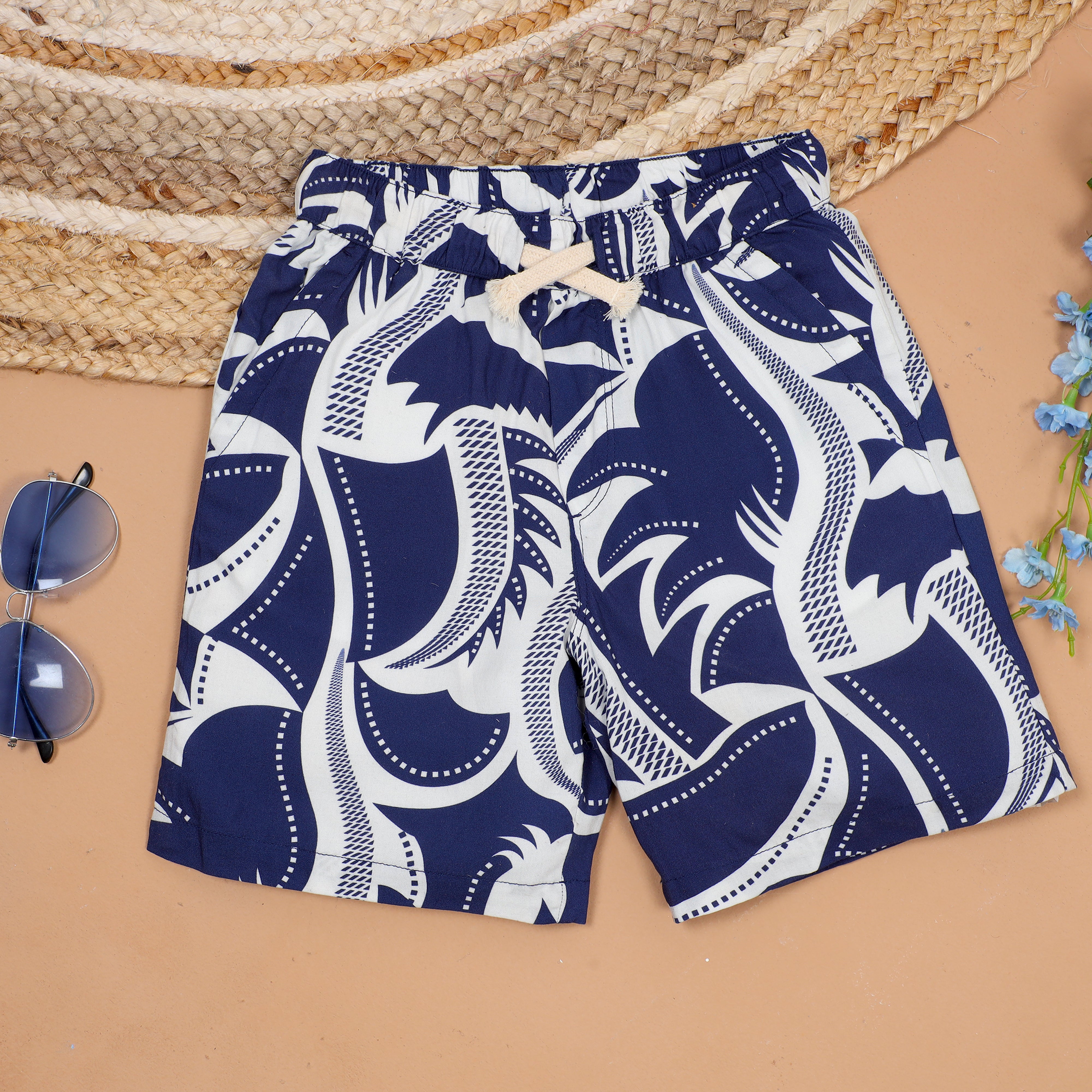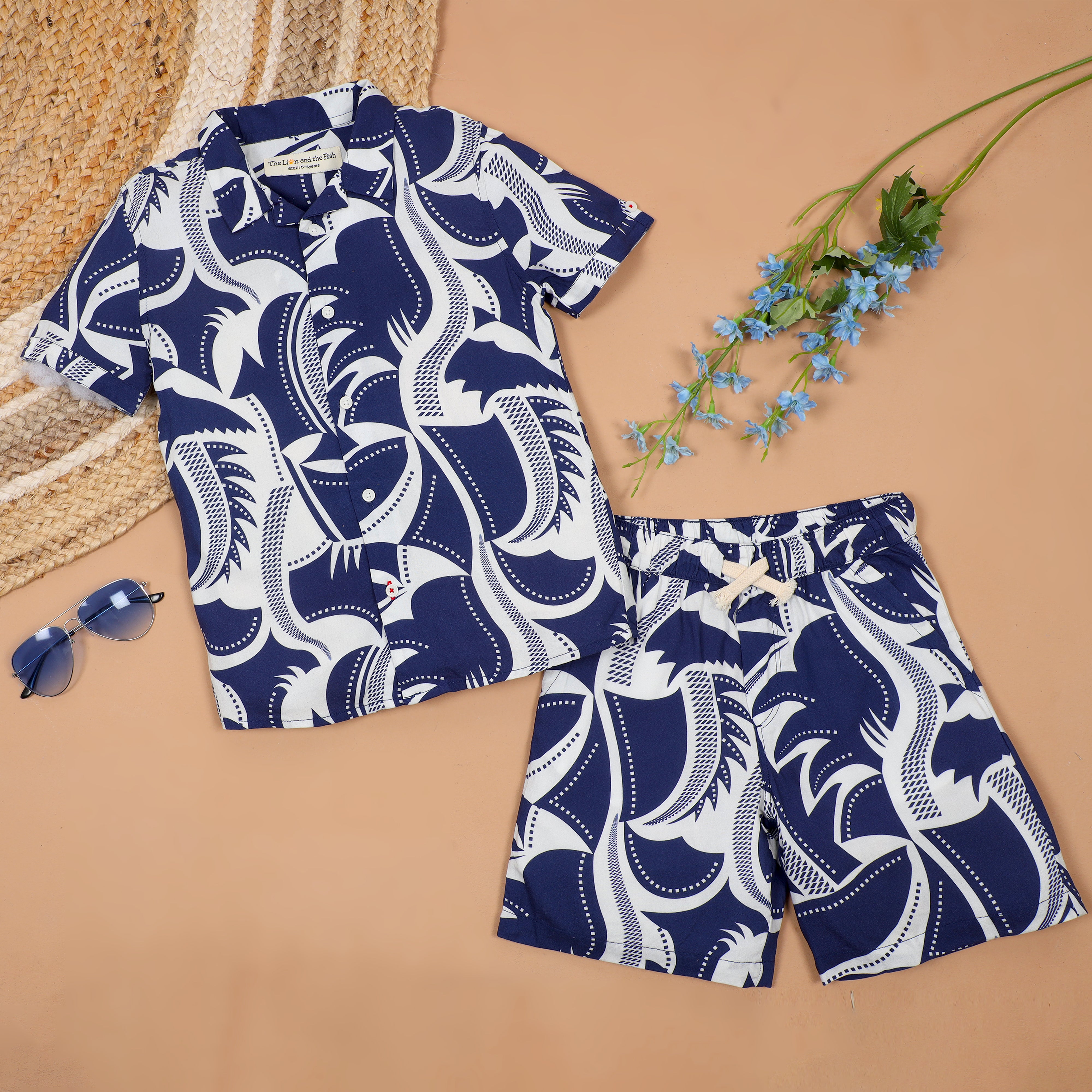 Boys Japanese Printed Shirt & Short Co-Ord Set Royal Blue