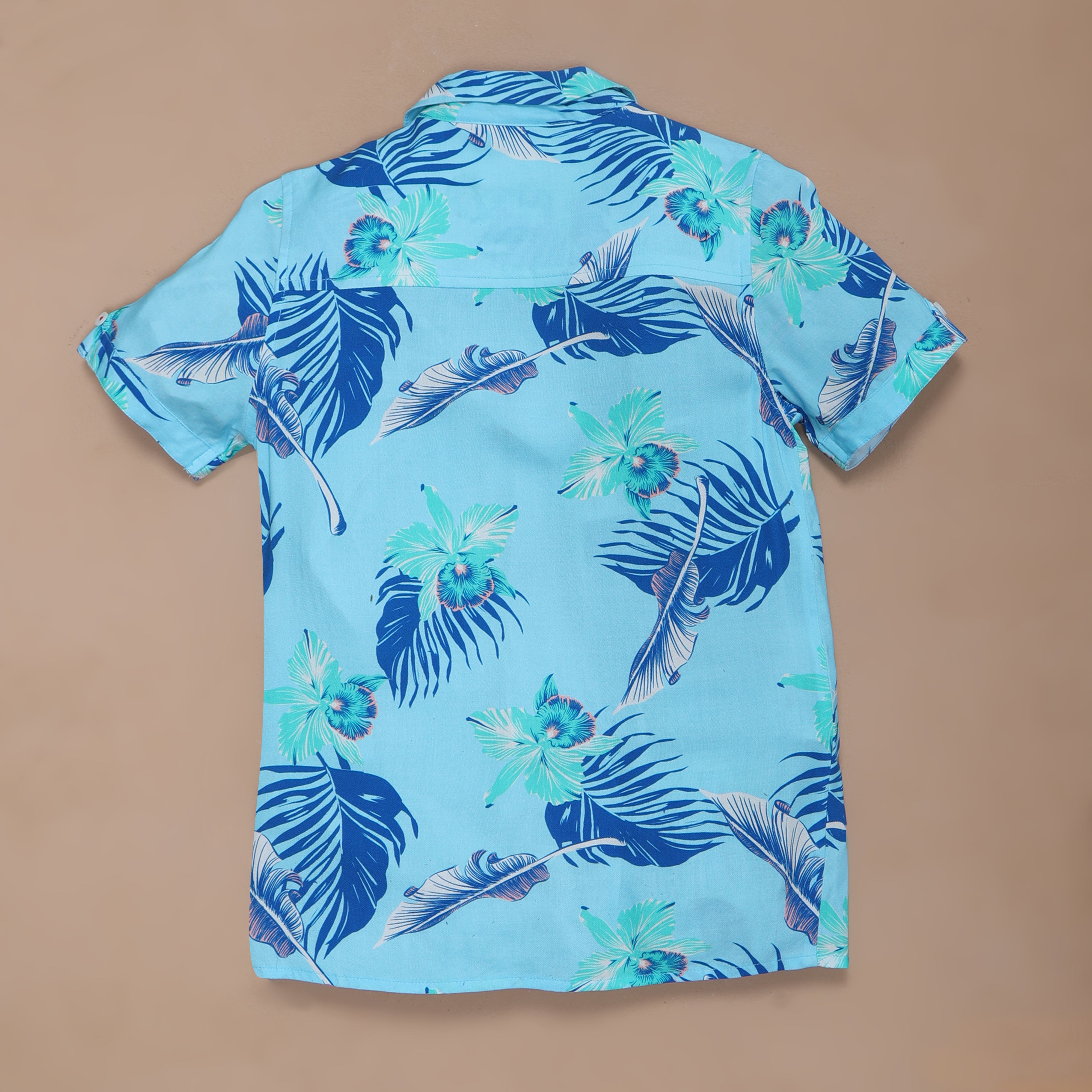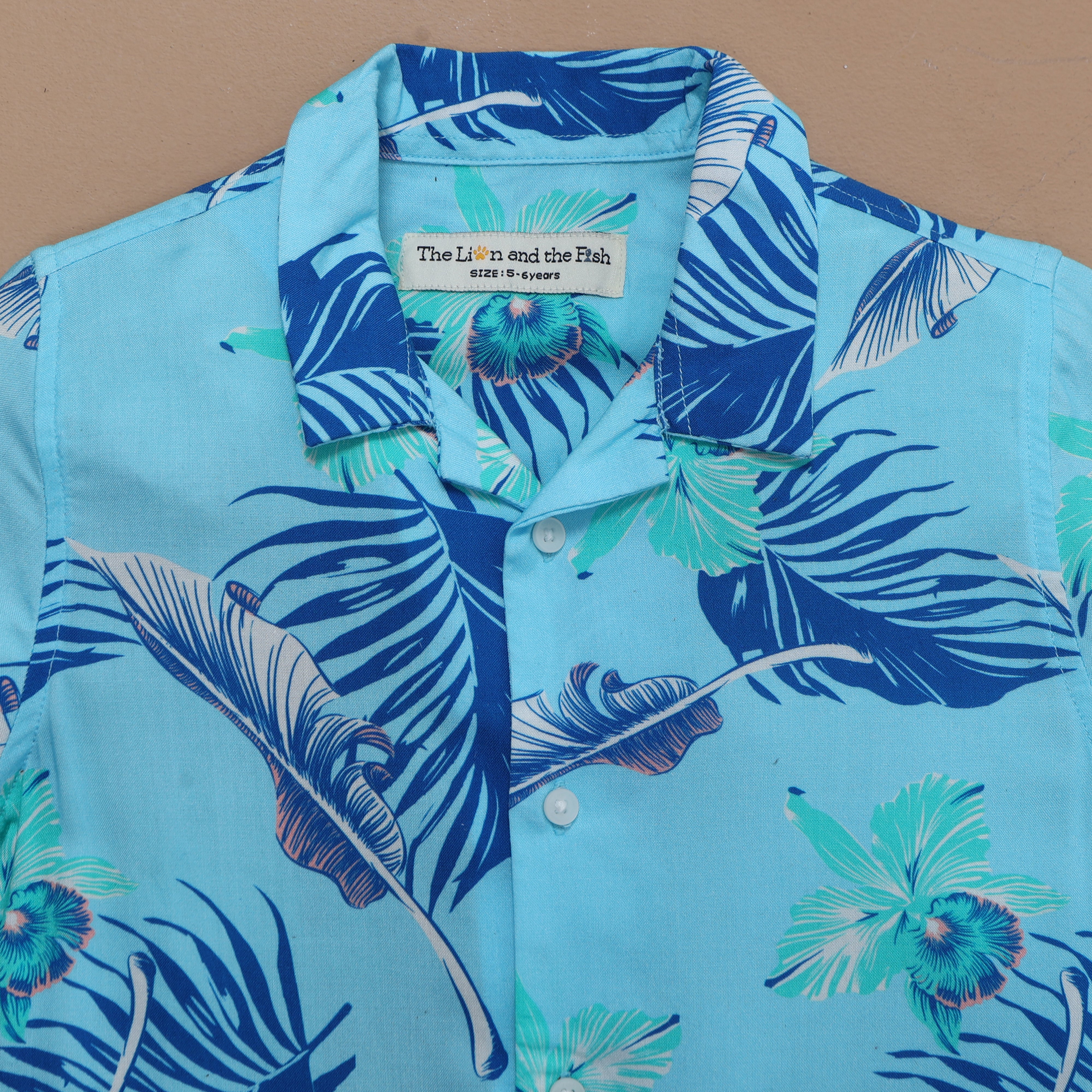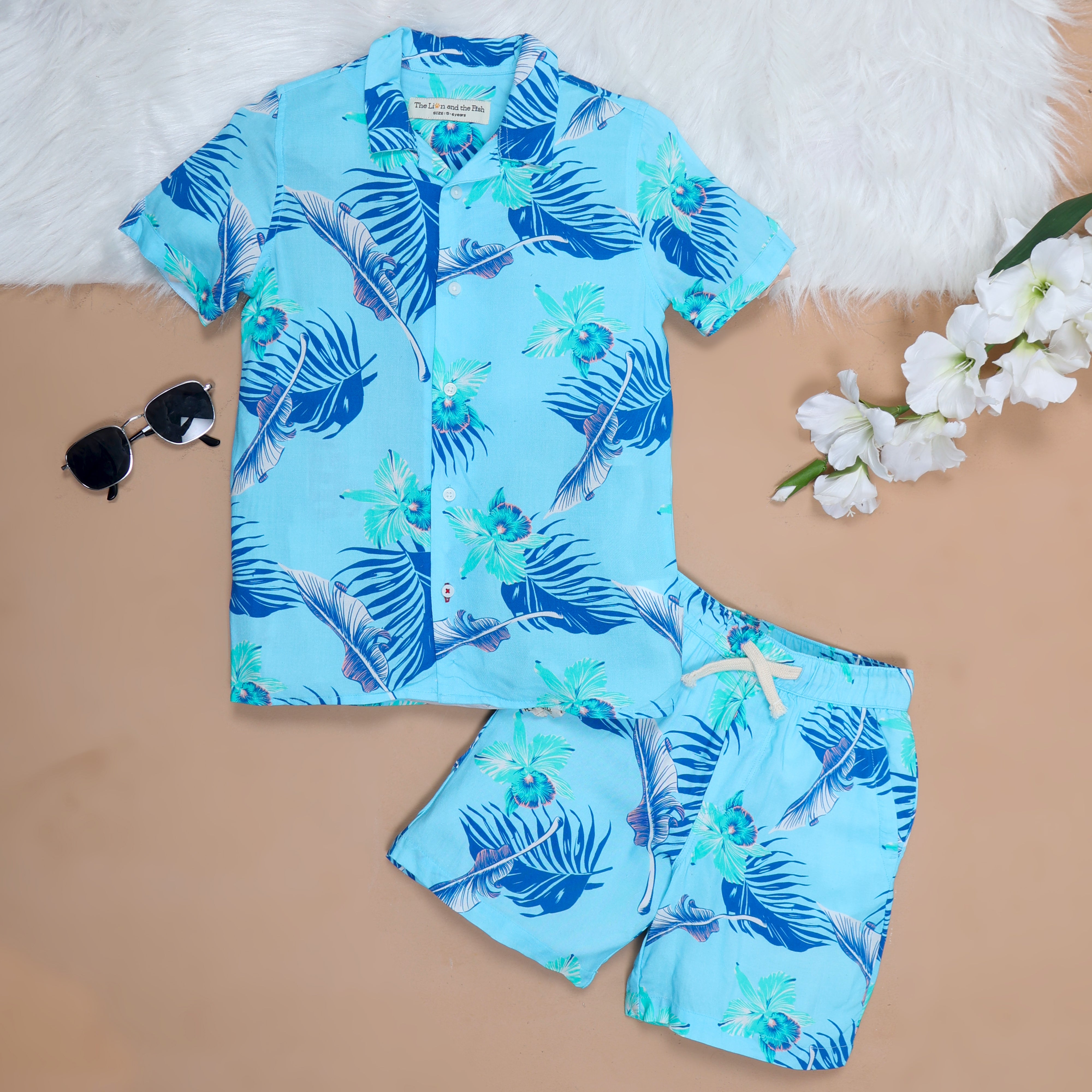 Boys Tropical Flower Printed Shirt & Short Co-Ord Set Sky Blue