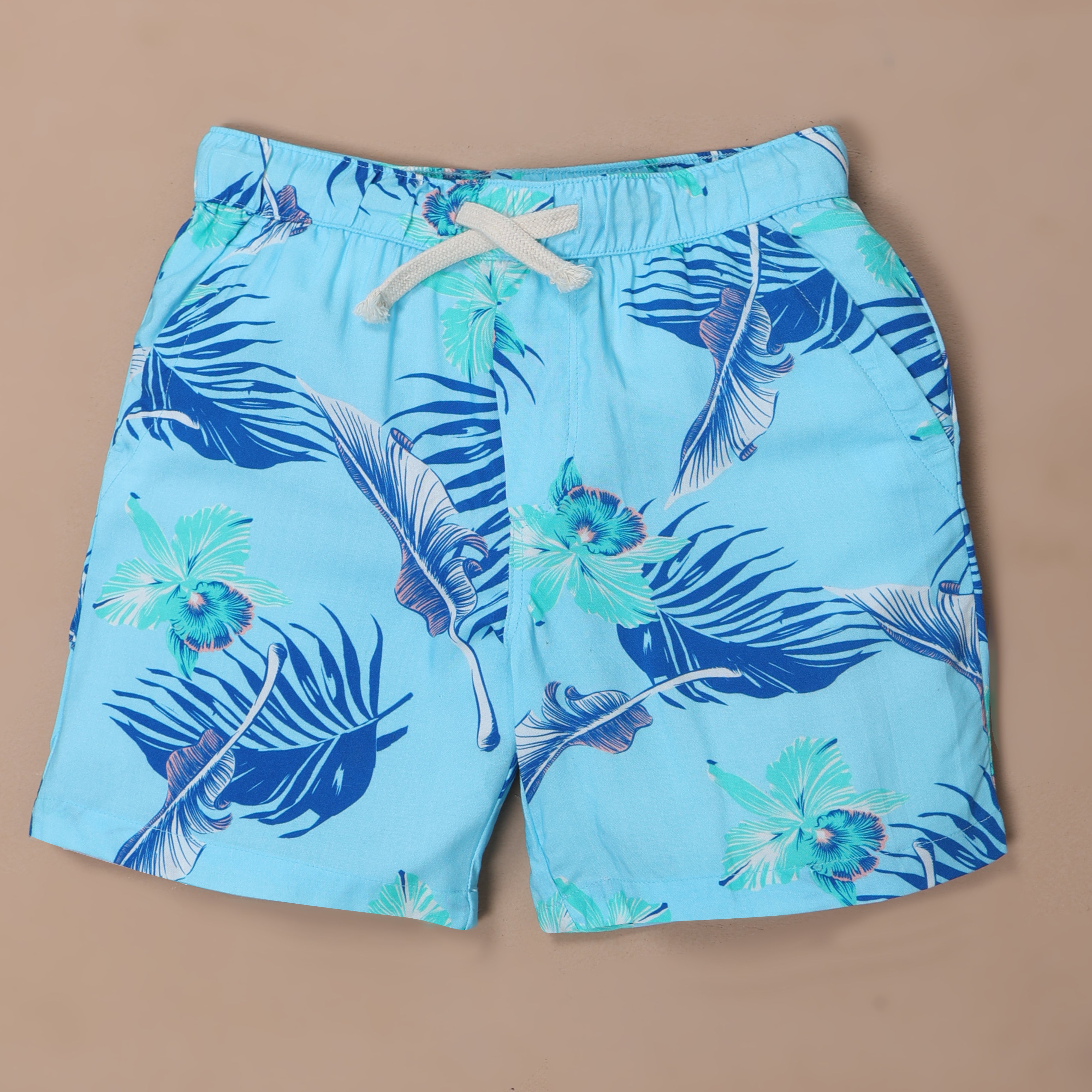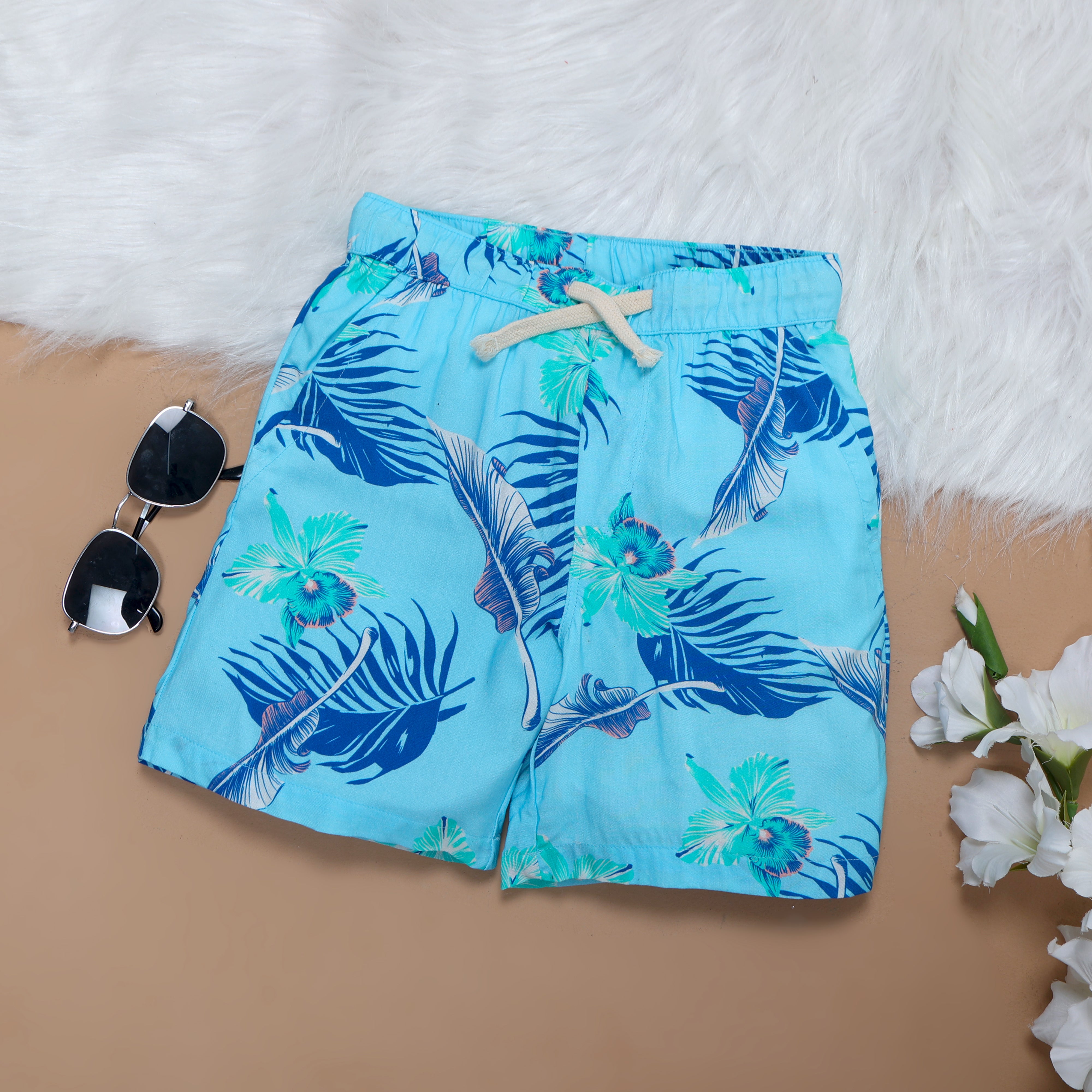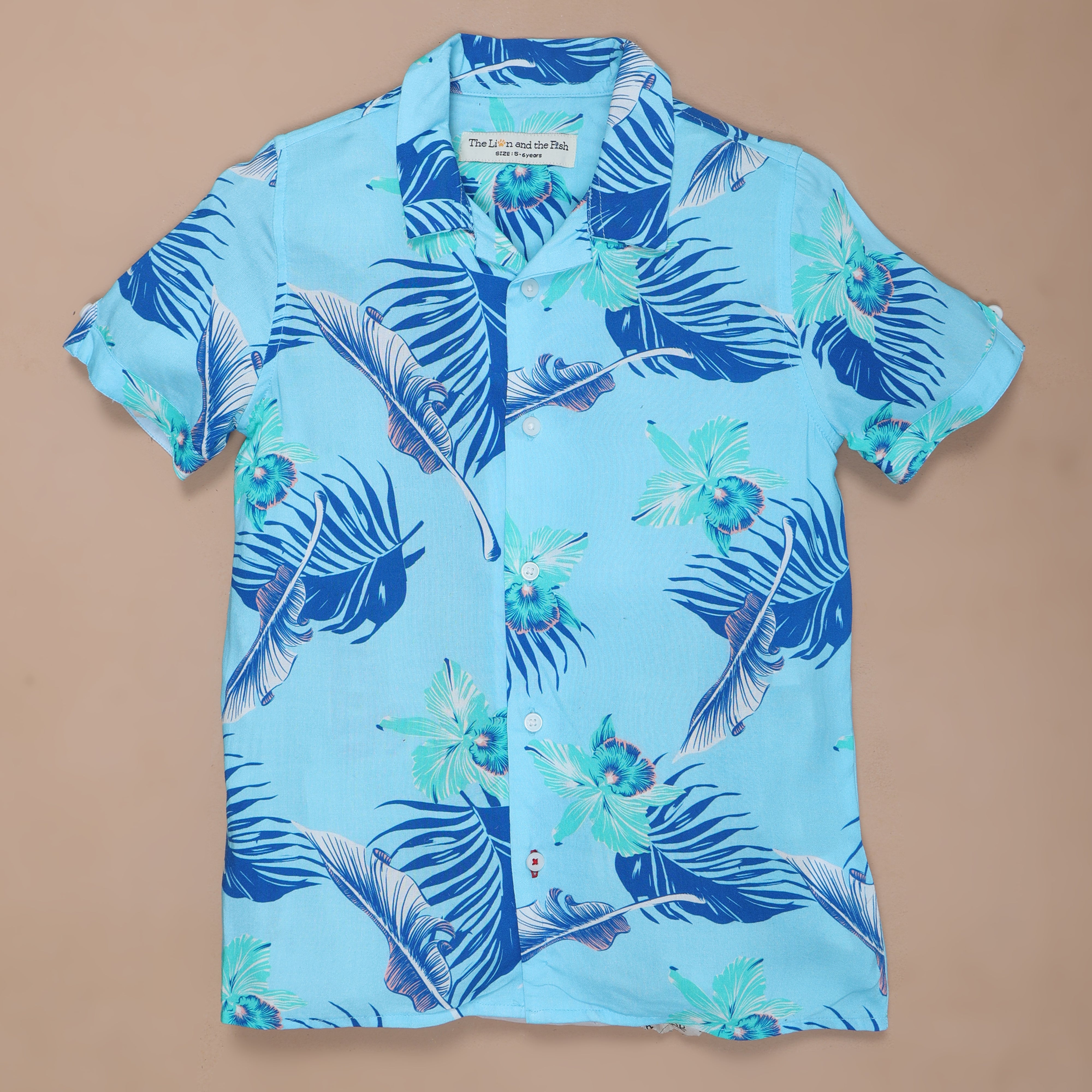 Boys Tropical Flower Printed Shirt & Short Co-Ord Set Sky Blue