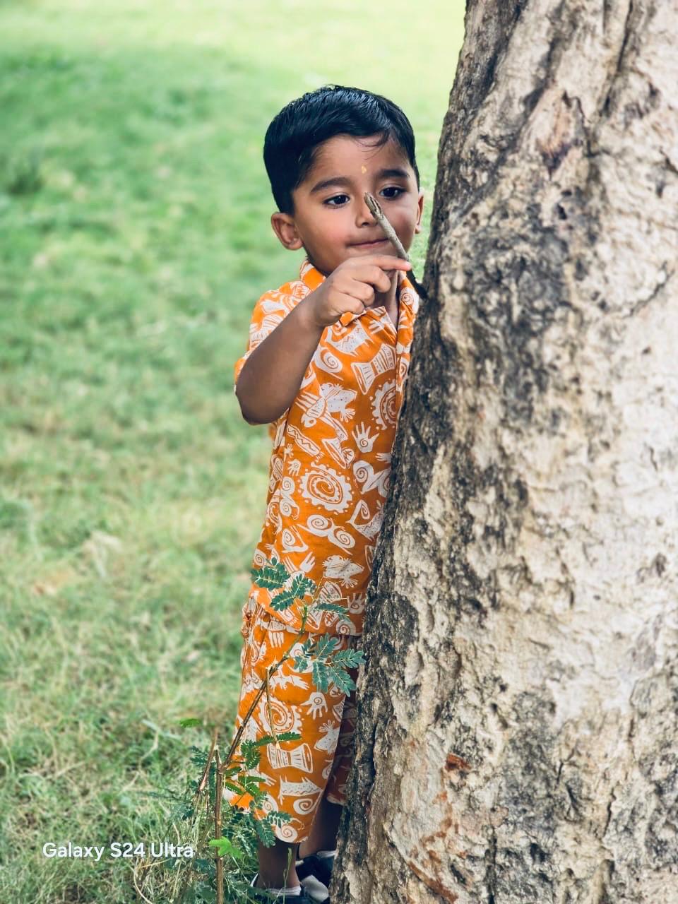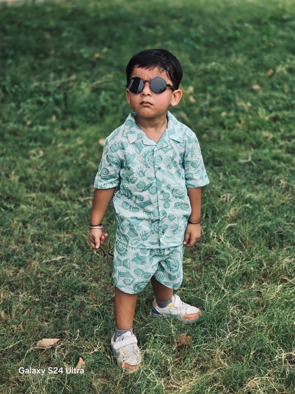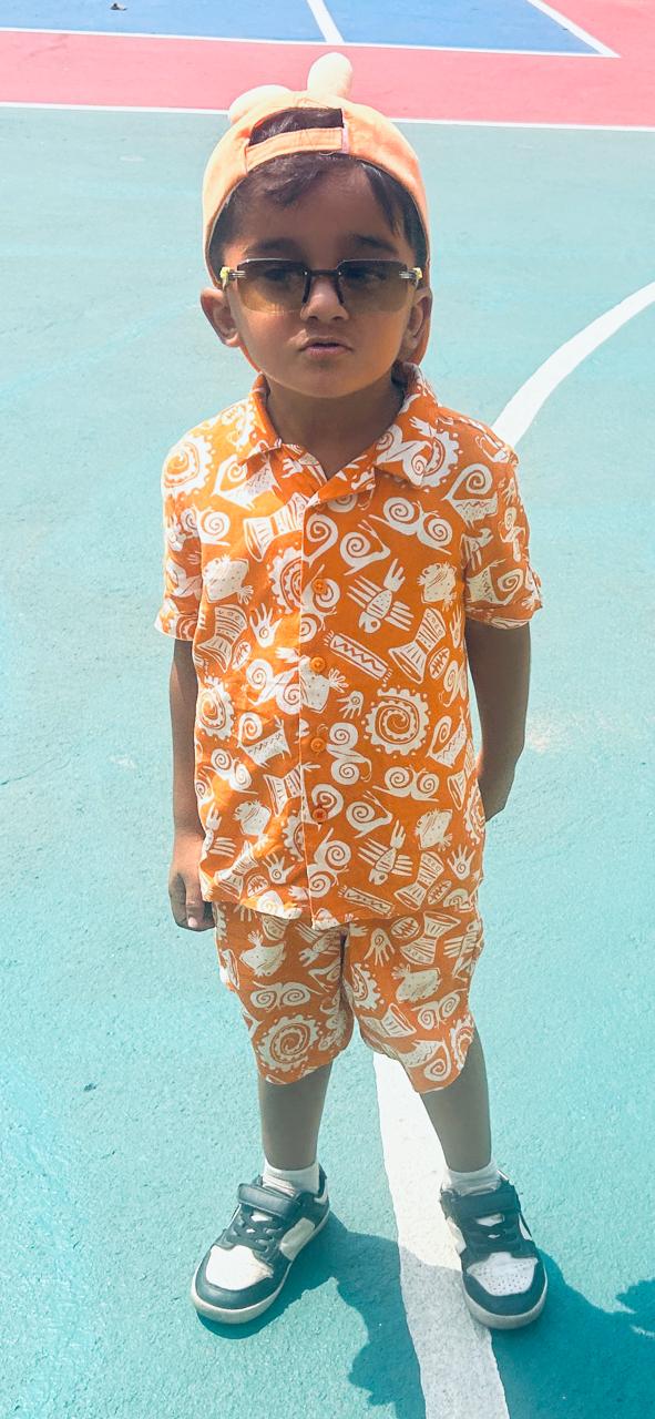 Boys Tropical Flower Printed Shirt Bright Yellow
